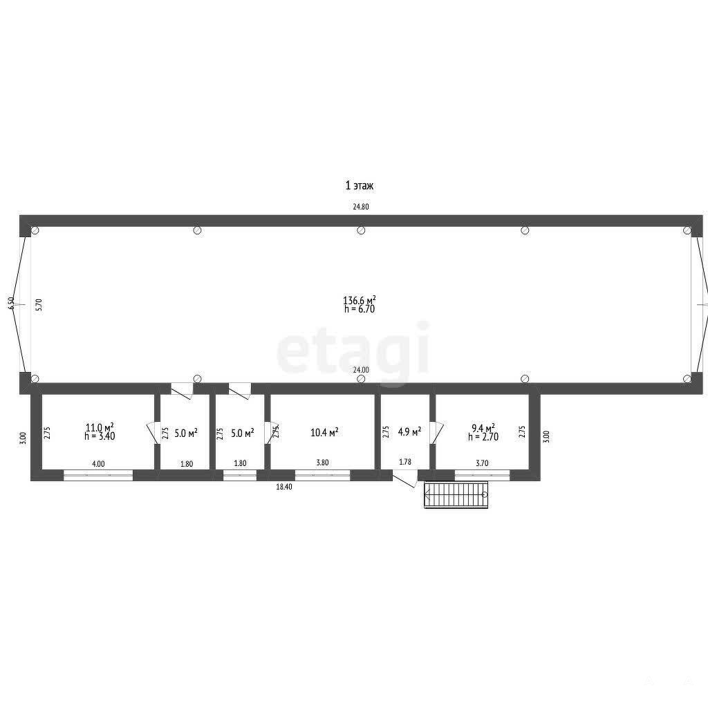 Возможно переформатирование данного помещения под другие задачи (склад, автосервис)