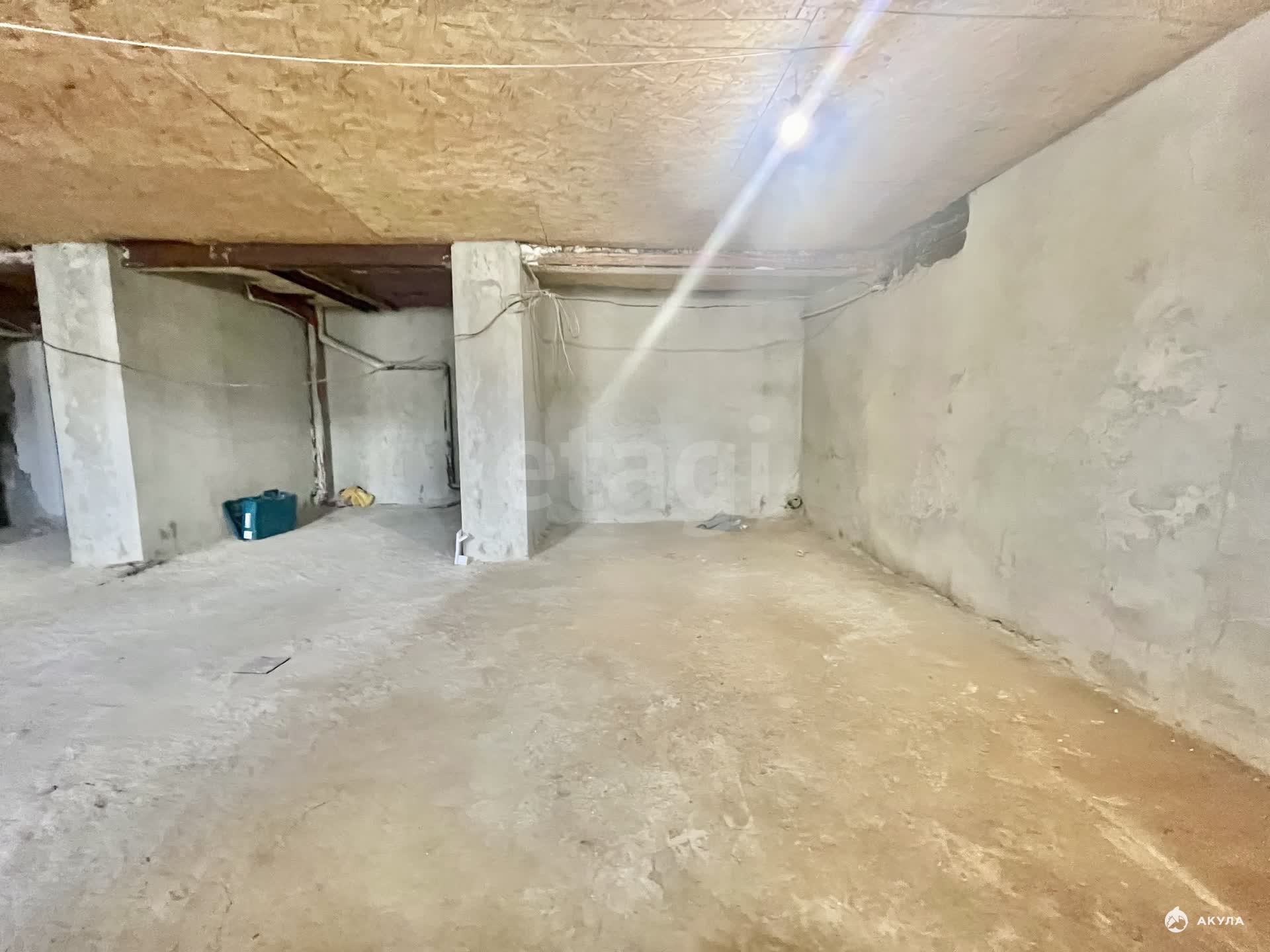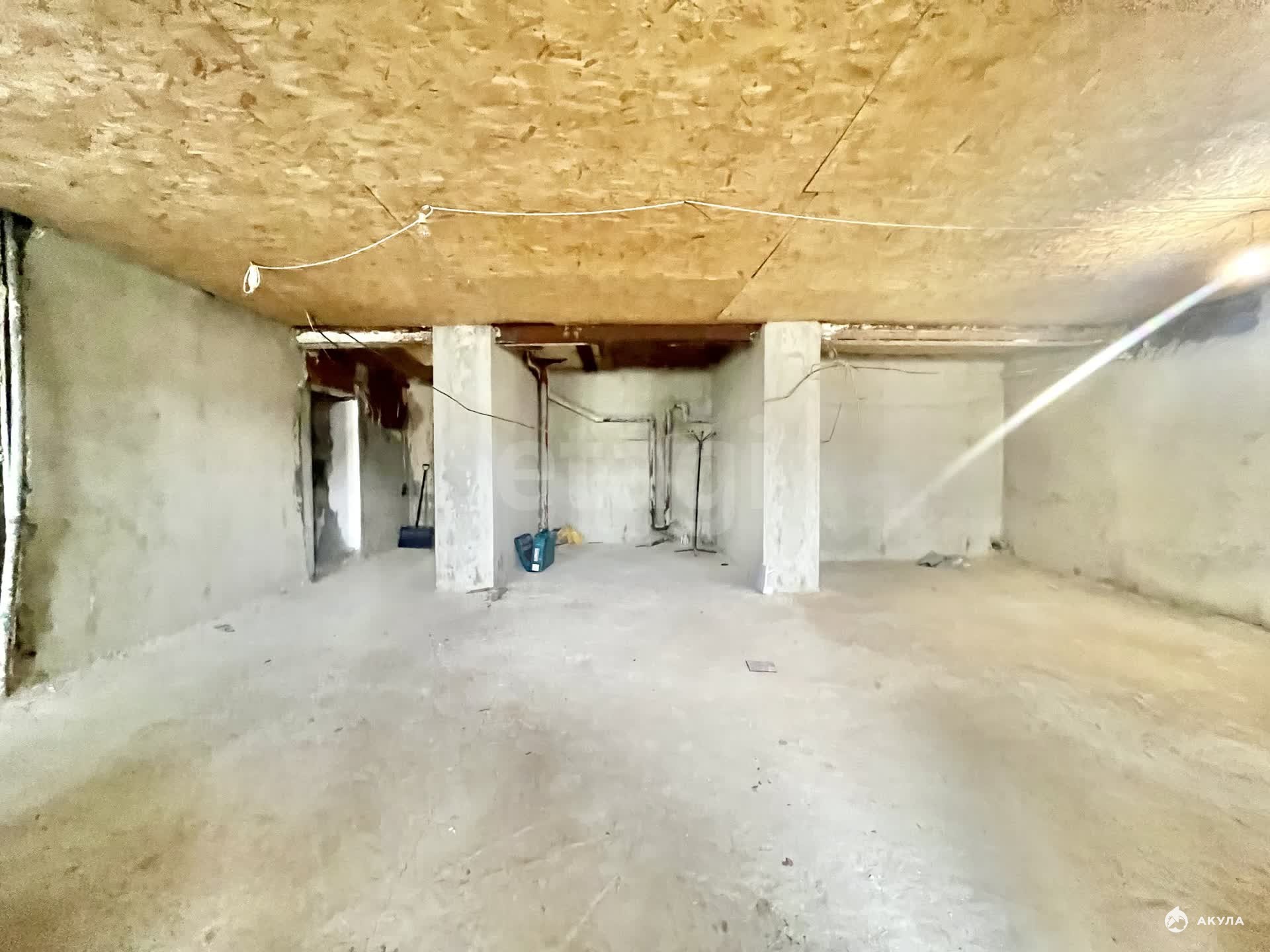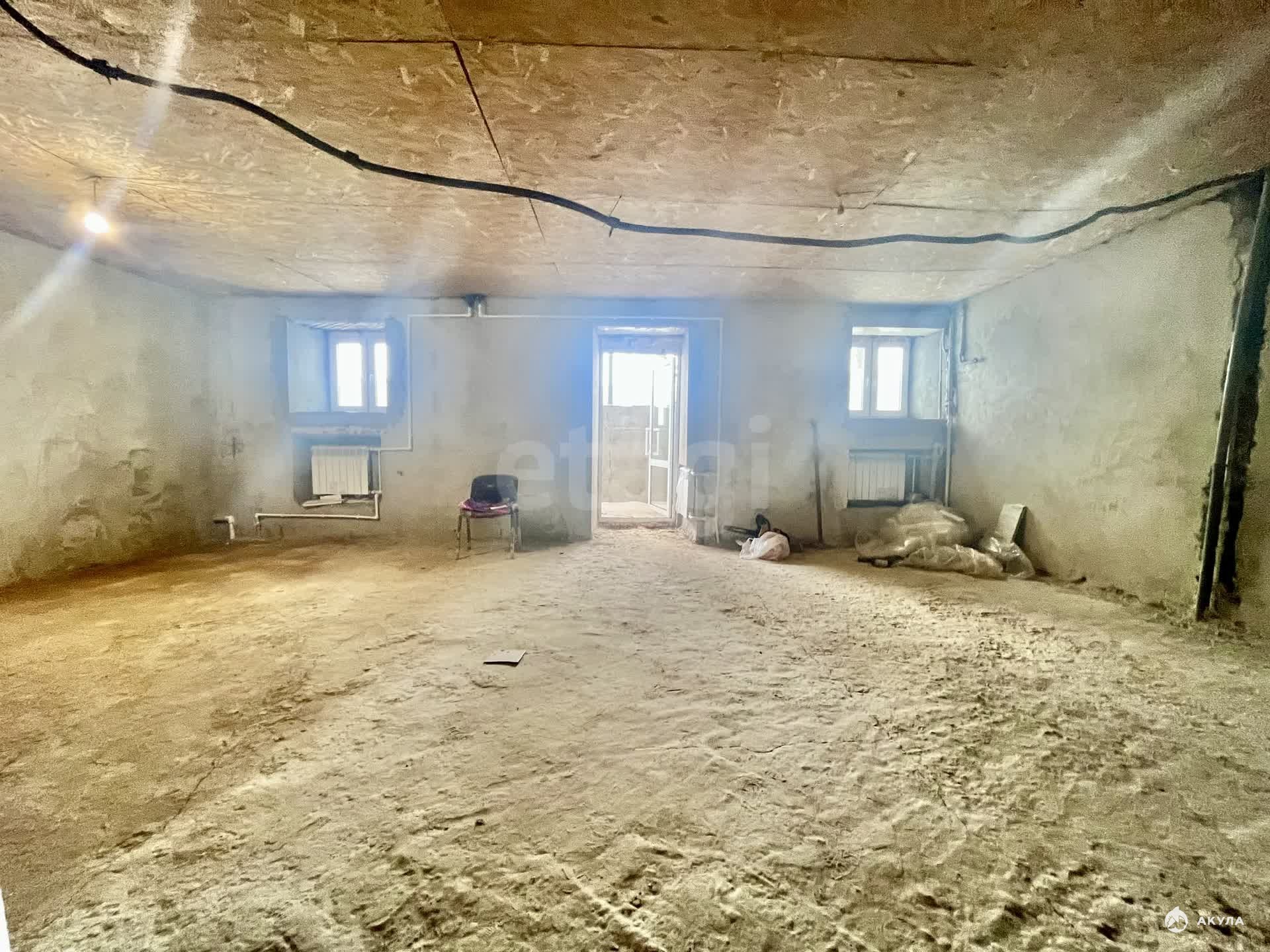 Помещение с черновой отделкой: стены оштукатурены, на полу черновая стяжка, установлены пластиковые окна.