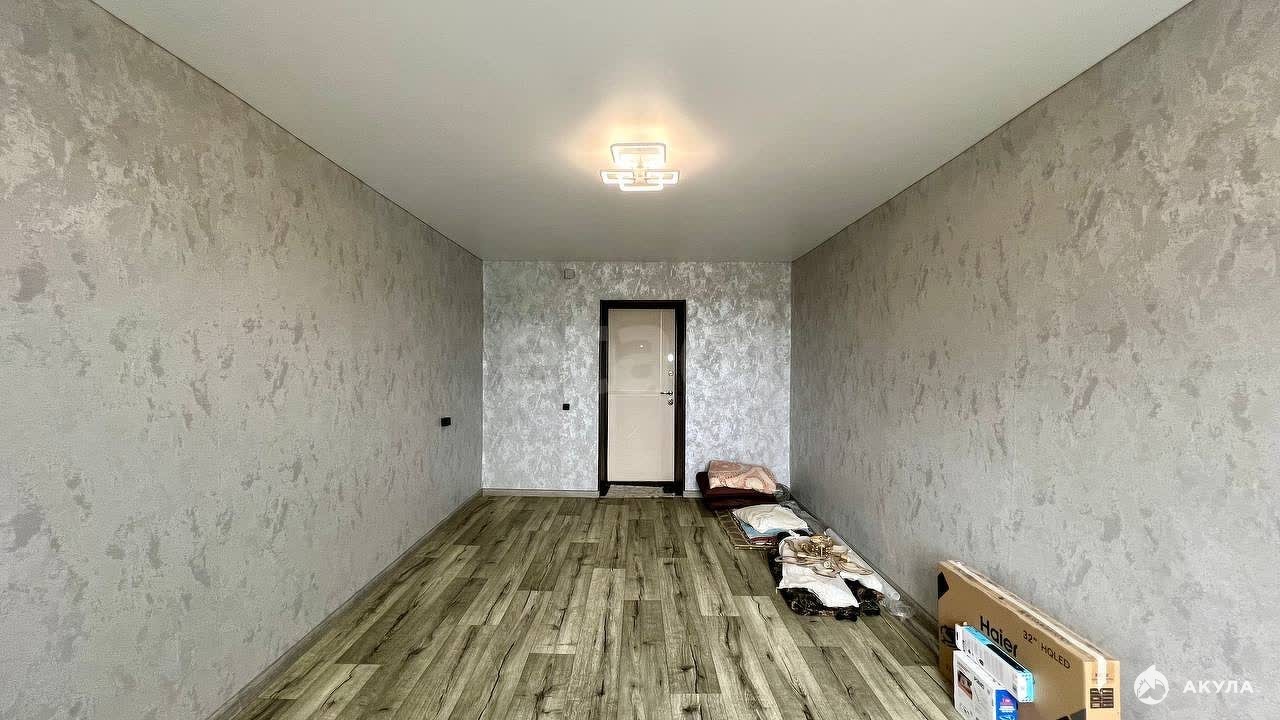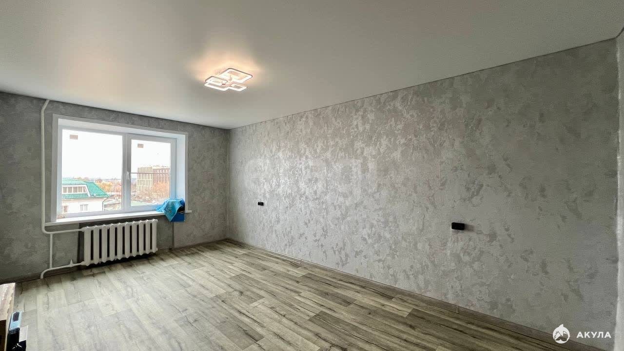 Помещение выполнено в косметическом ремонте: светлые обои и напольное покрытие из линолеума создают чистую и аккуратную среду. Окно заменено на современный стеклопакет, что обеспечивает хорошую тепло- и шумоизоляцию, а входная металлическая дверь гарантирует дополнительную безопасность.