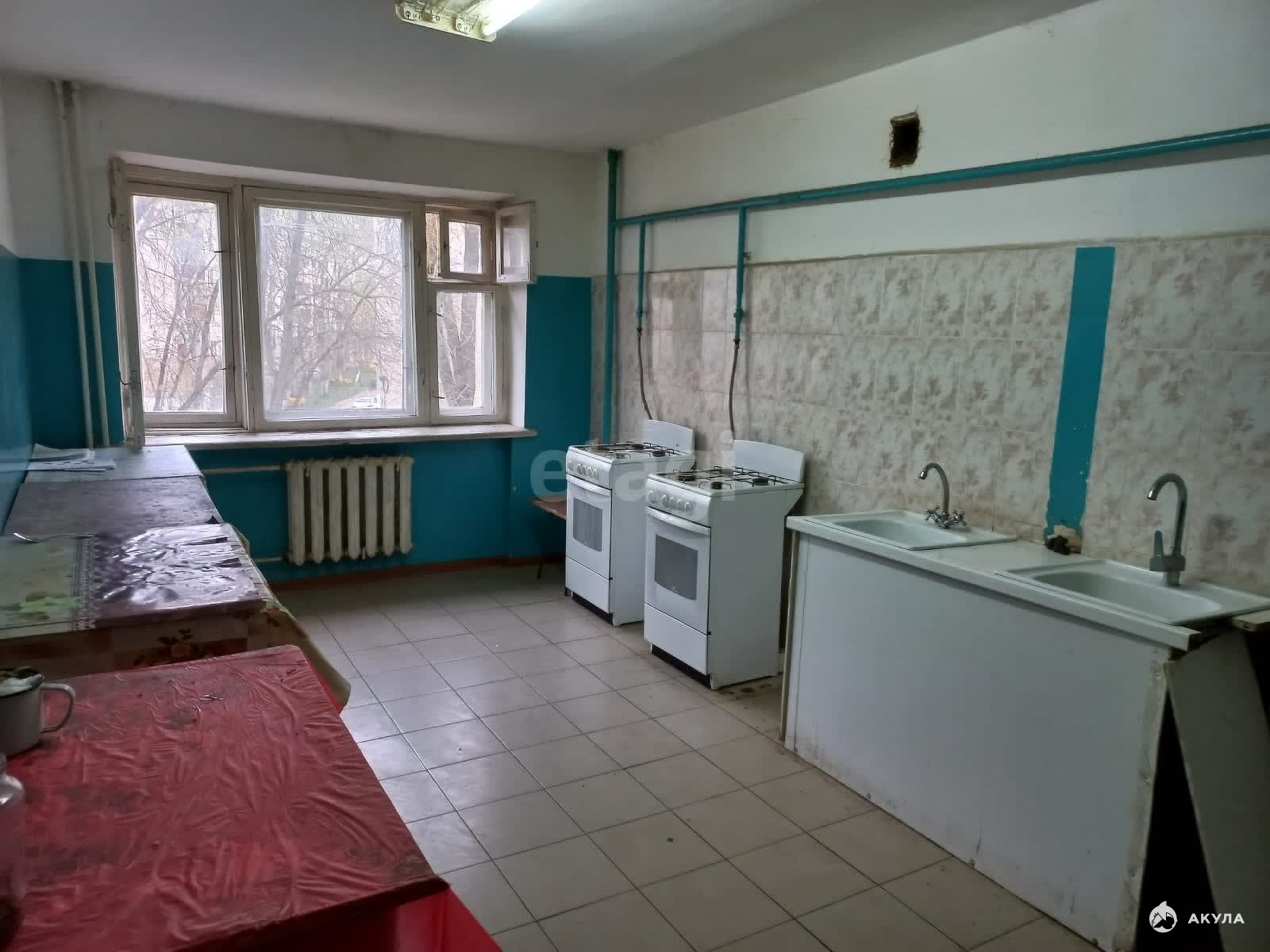 В комнате косметический ремонт, окно деревянное, железная дверь. На этаже общая кухня, два туалета, сушилка, две комнаты умывания, душевые комнаты на первом этаже.