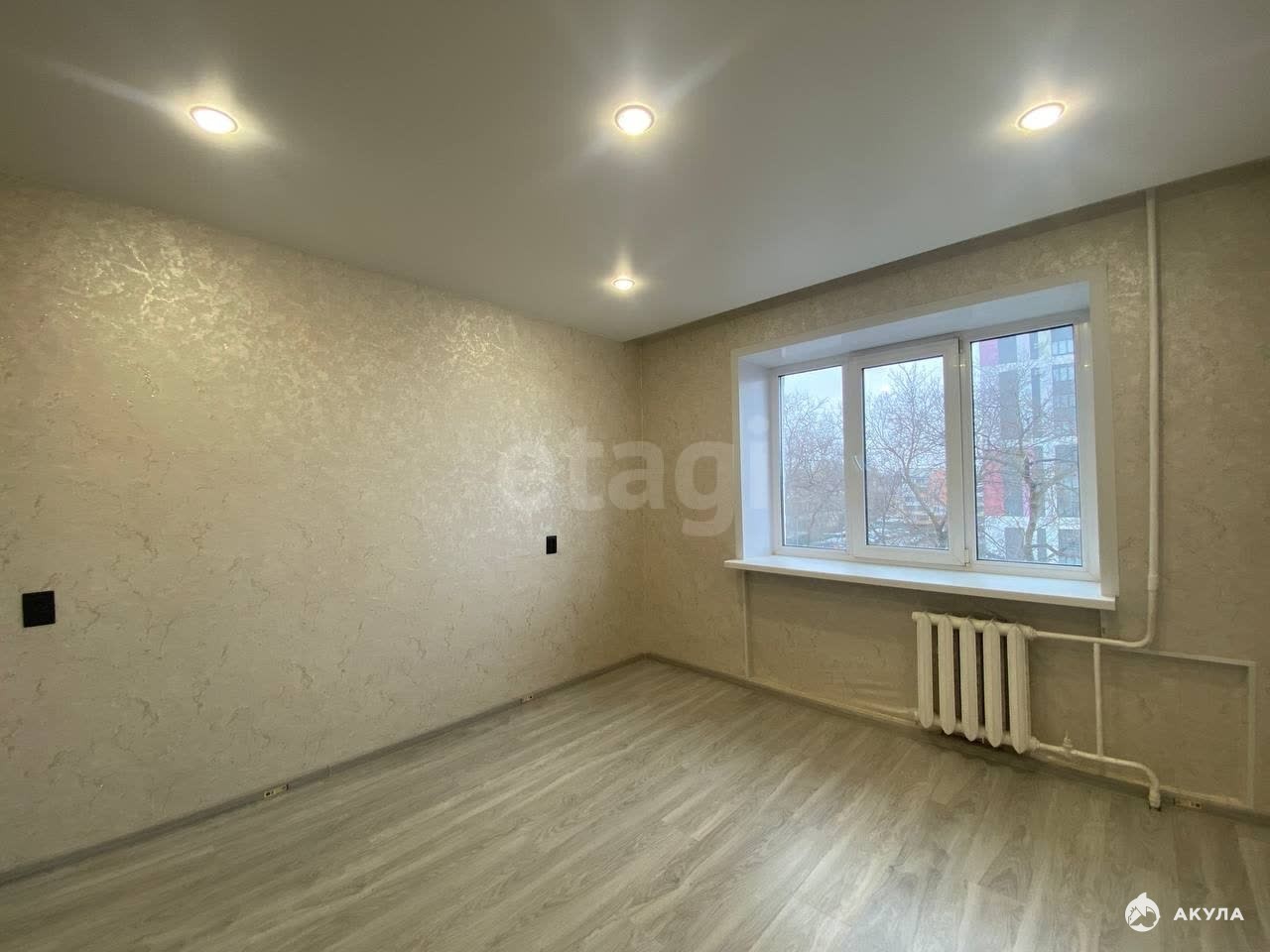 В комнате выполнен качественный современный ремонт: заменена электрическая проводка, произведена стяжка пола, уложен новый линолеум, стены выровнены, новые обои, установлены натяжные потолки. Входная металлическая новая дверь.
