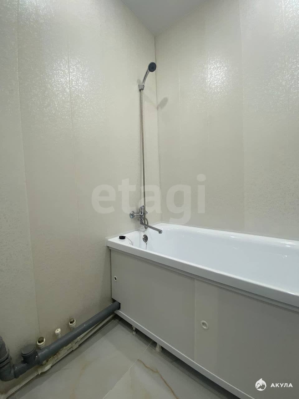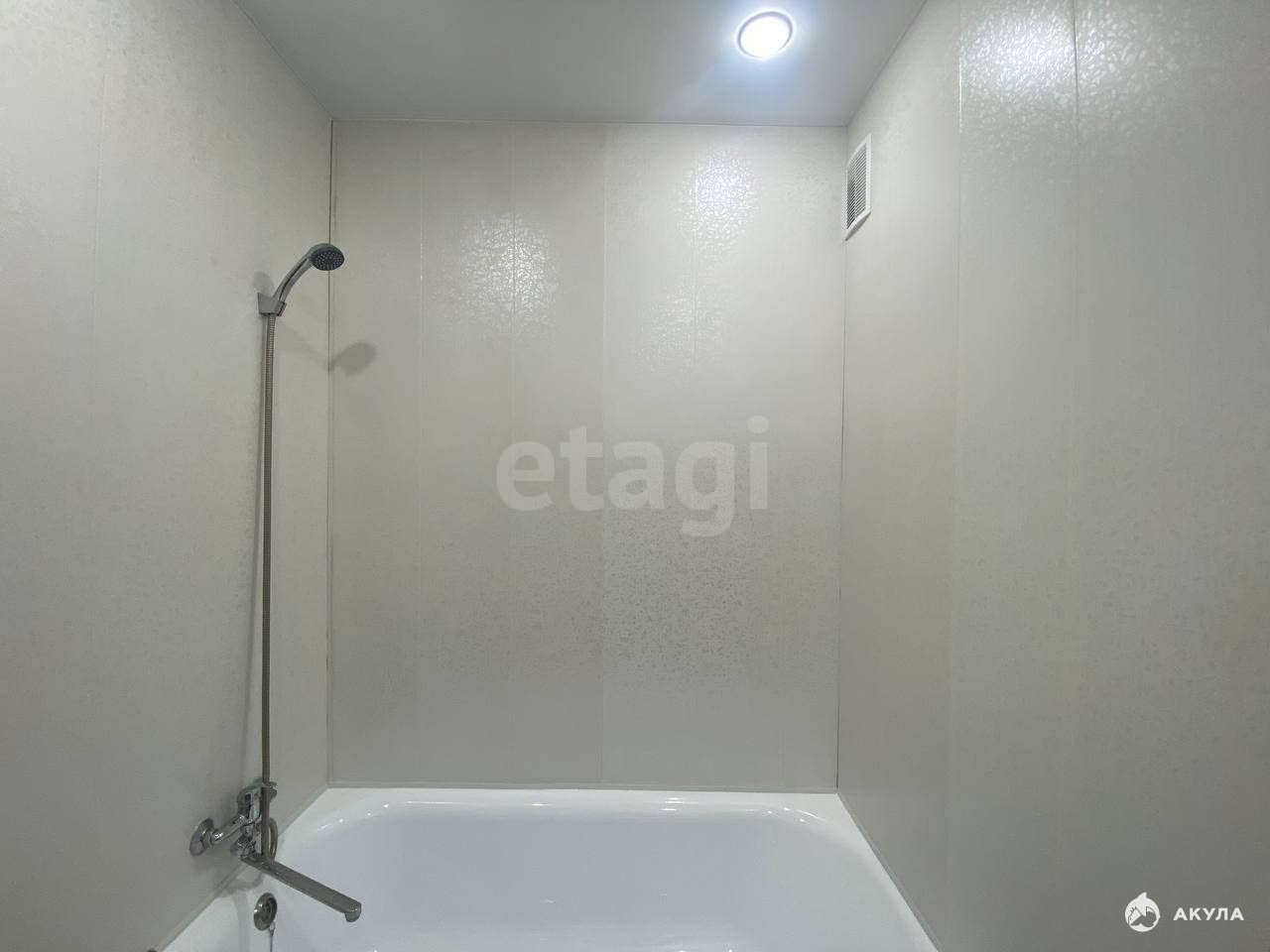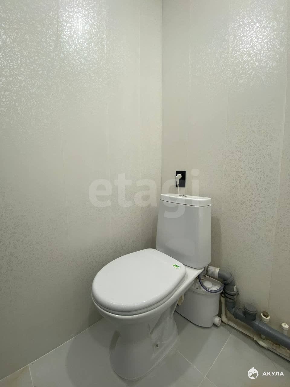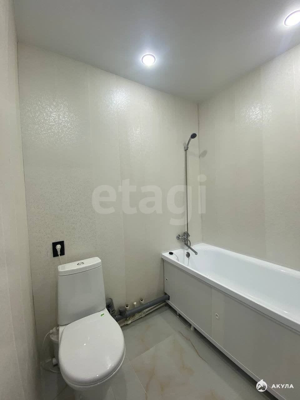 Совмещенный санузел, на полу плитка, стены — ПВХ панели, установлена новая сантехника. Комната располагается в отдельной секции, сосед — культурный пожилой мужчина.