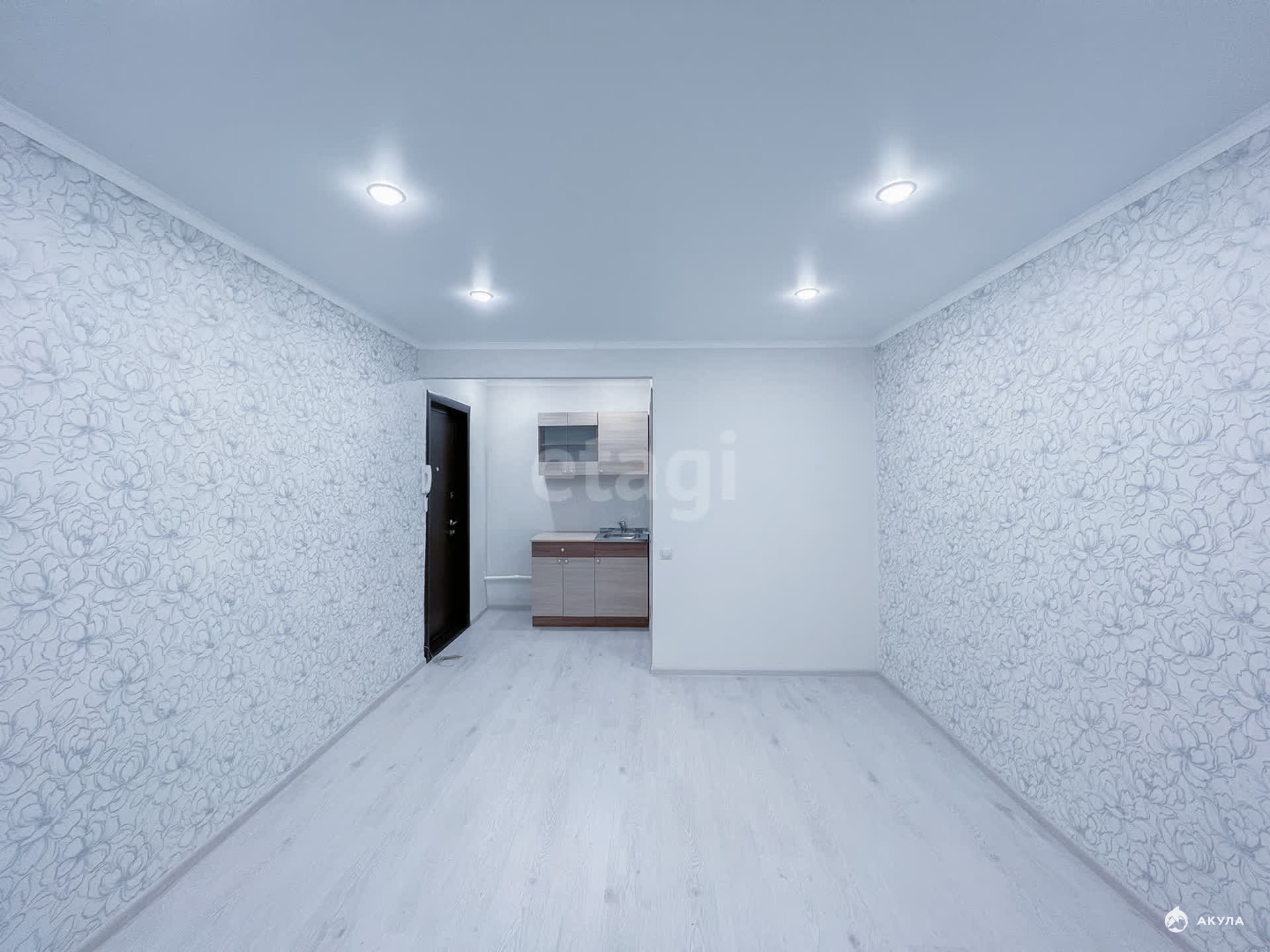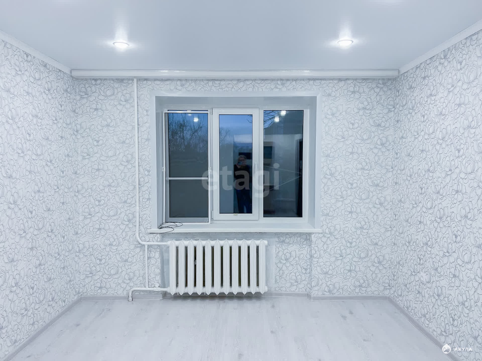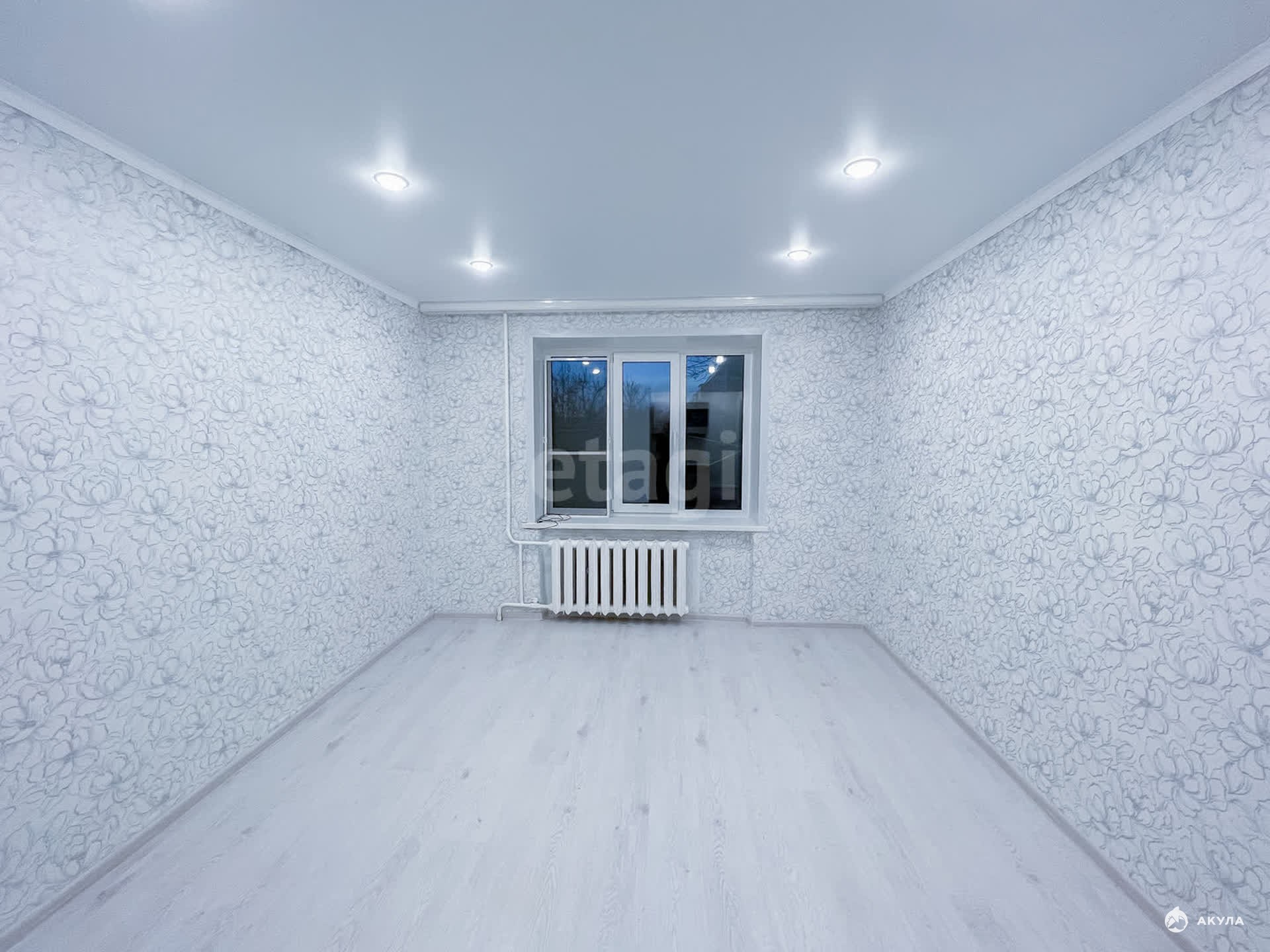 Общая площадь — 18 кв. м. В комнате сделан современный ремонт: натяжные потолки, на полу ламинат, пластиковое окно. Дверь также новая и металлическая. Третий этаж, окна выходят во двор. Внутри комнаты находится санузел, который полностью отделан панелями с новой ванной и унитазом.