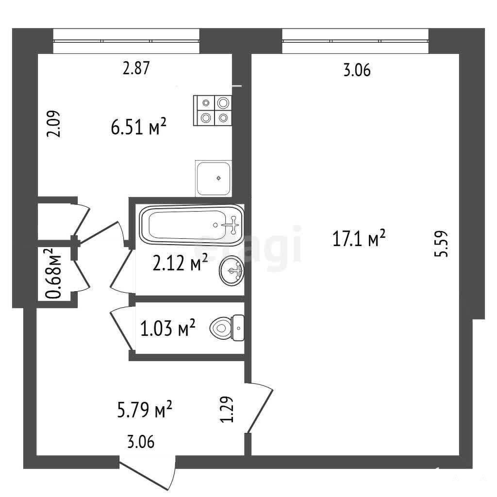 Общая площадь 33, 2 м2.