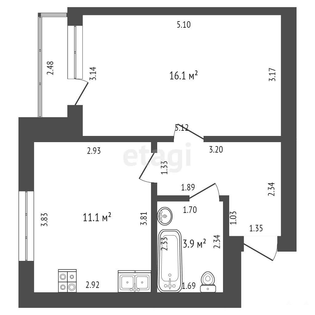 Продается 1-комнатная квартира, расположенная на 2-ом этаже 3-этажного кирпичного дома 2016 года постройки. 4 квартиры на лестничной площадке. Отопление индивидуальное, в квартире установлен двухконтурный газовый котел, который отвечает за тепло и горячую воду. Квартира не угловая. Окна смотрят на запад. Общая площадь без учета балкона — 37 кв. м. Кухня — 11, 1 кв. м.; комната — 16, 1 кв. м. Санузел совмещенный. Трубы водоснабжения и канализации пластиковые. Установлены счетчики на газ и воду. Балкон застеклен (алюминиевая рама) с выходом из комнаты.