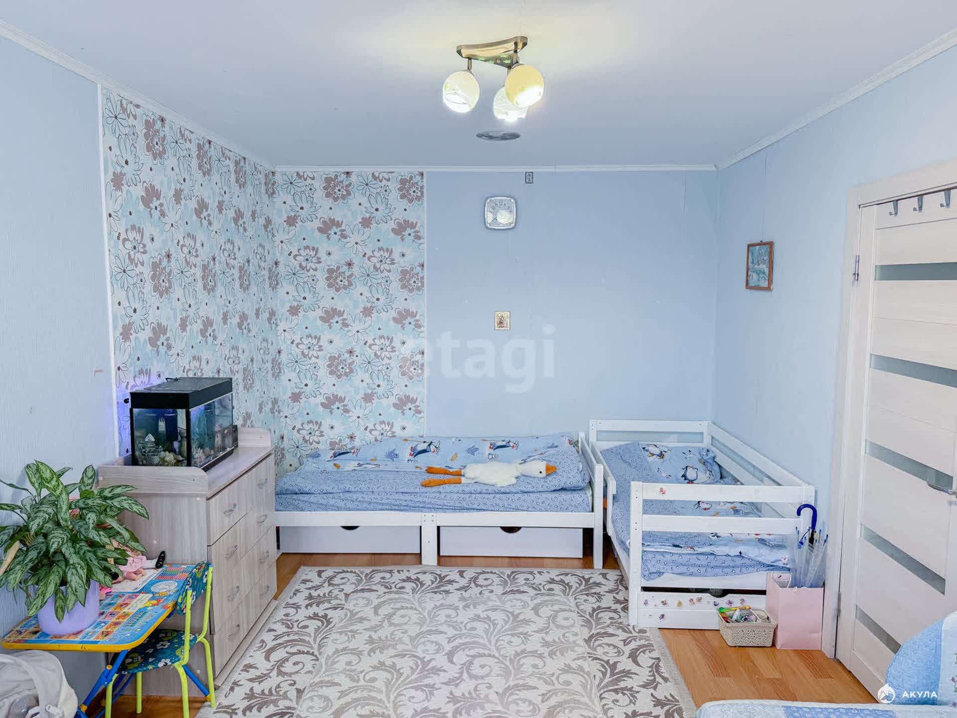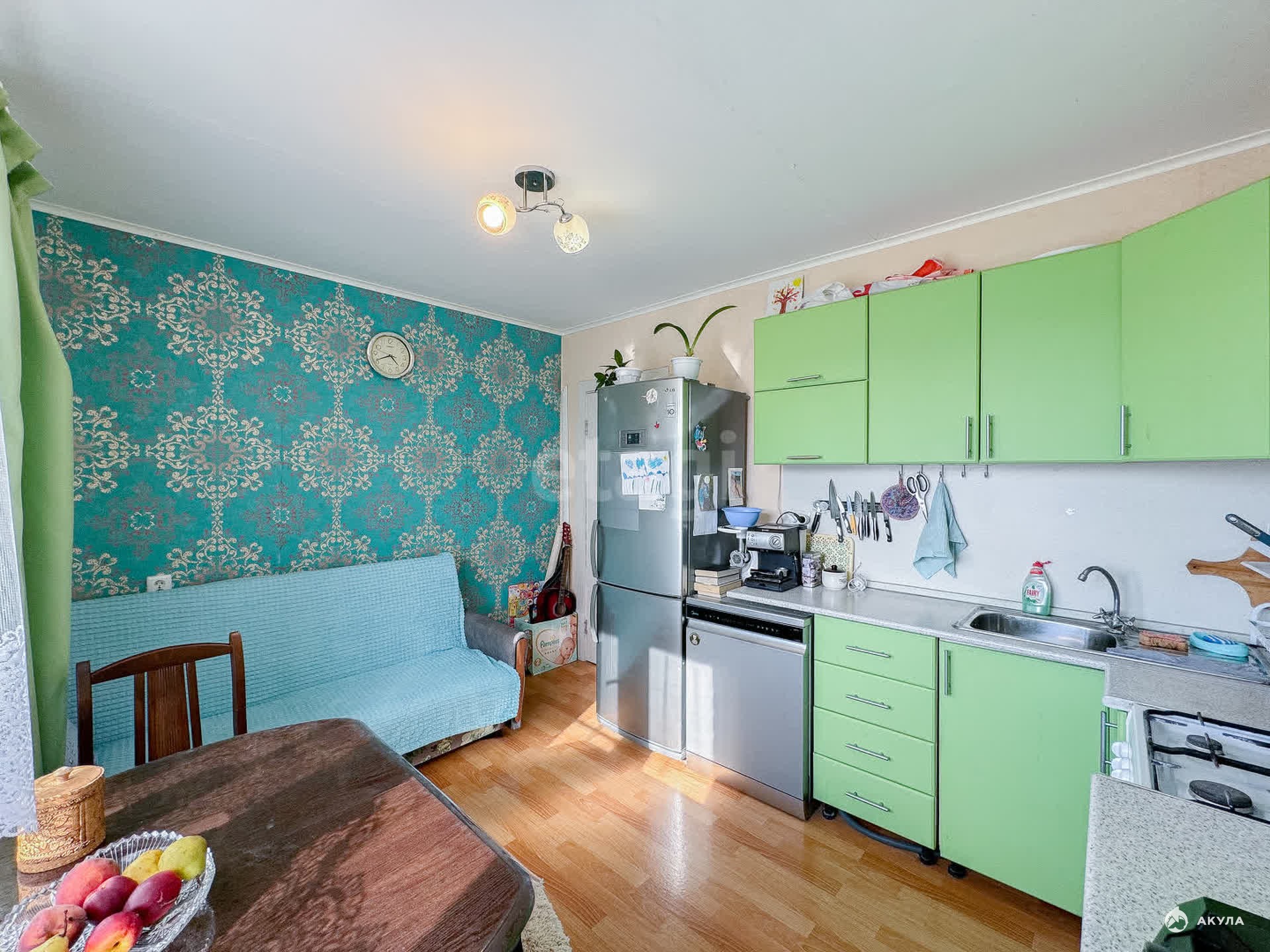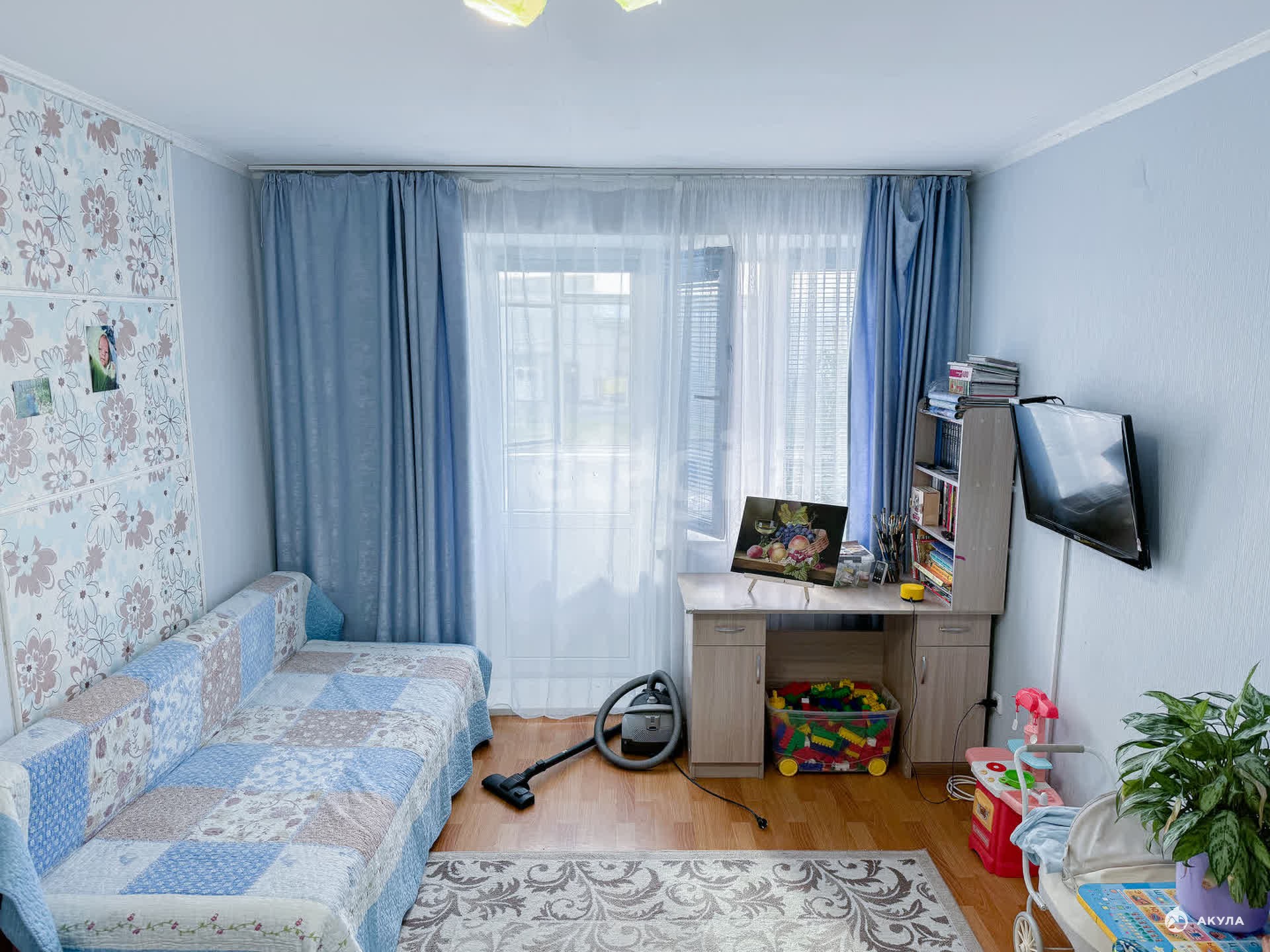 Металлическая входная дверь. Окна пластиковые. Напольное покрытие — линолеум. Потолки побелены. Стены в санузле отделаны пластиковыми панелями. Вместе с продажей останется кухонный гарнитур.