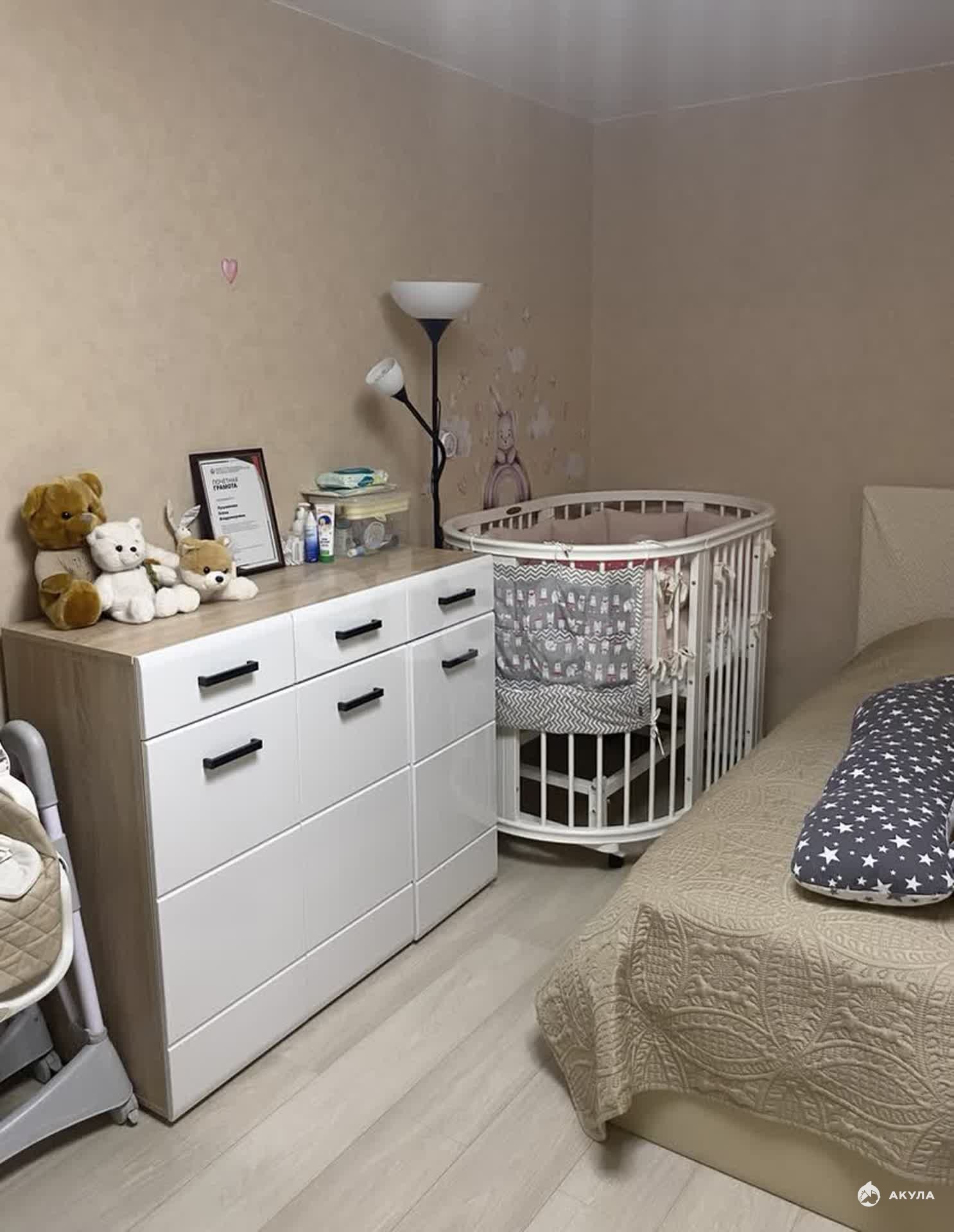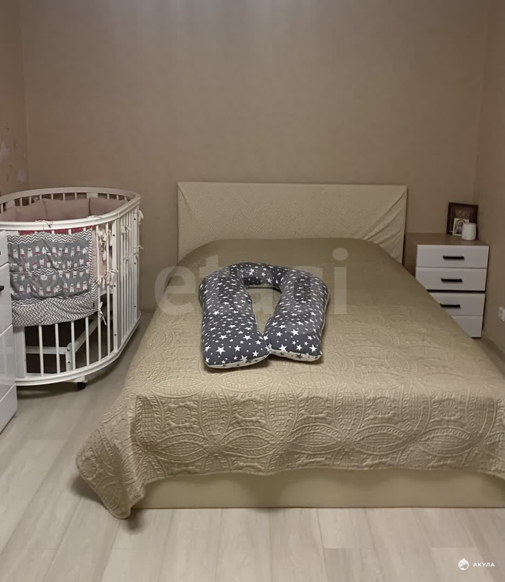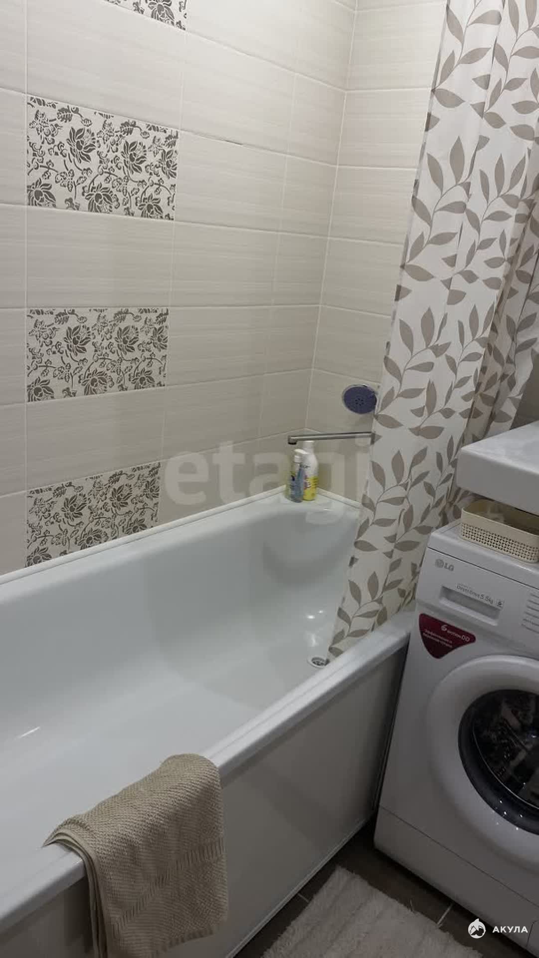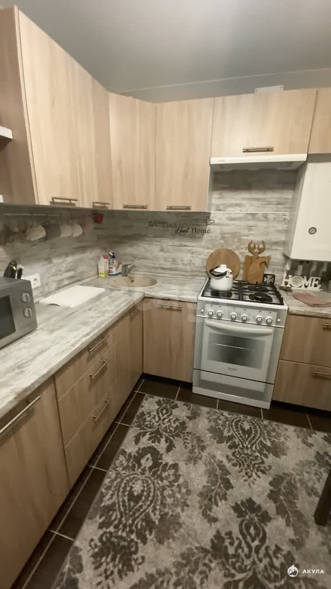В квартире сделан хороший ремонт, стены ровные. На полу — ламинат в спальне и керамогранит на кухне и в прихожей. Из мебели остается кухонный гарнитур и шкаф в прихожей.