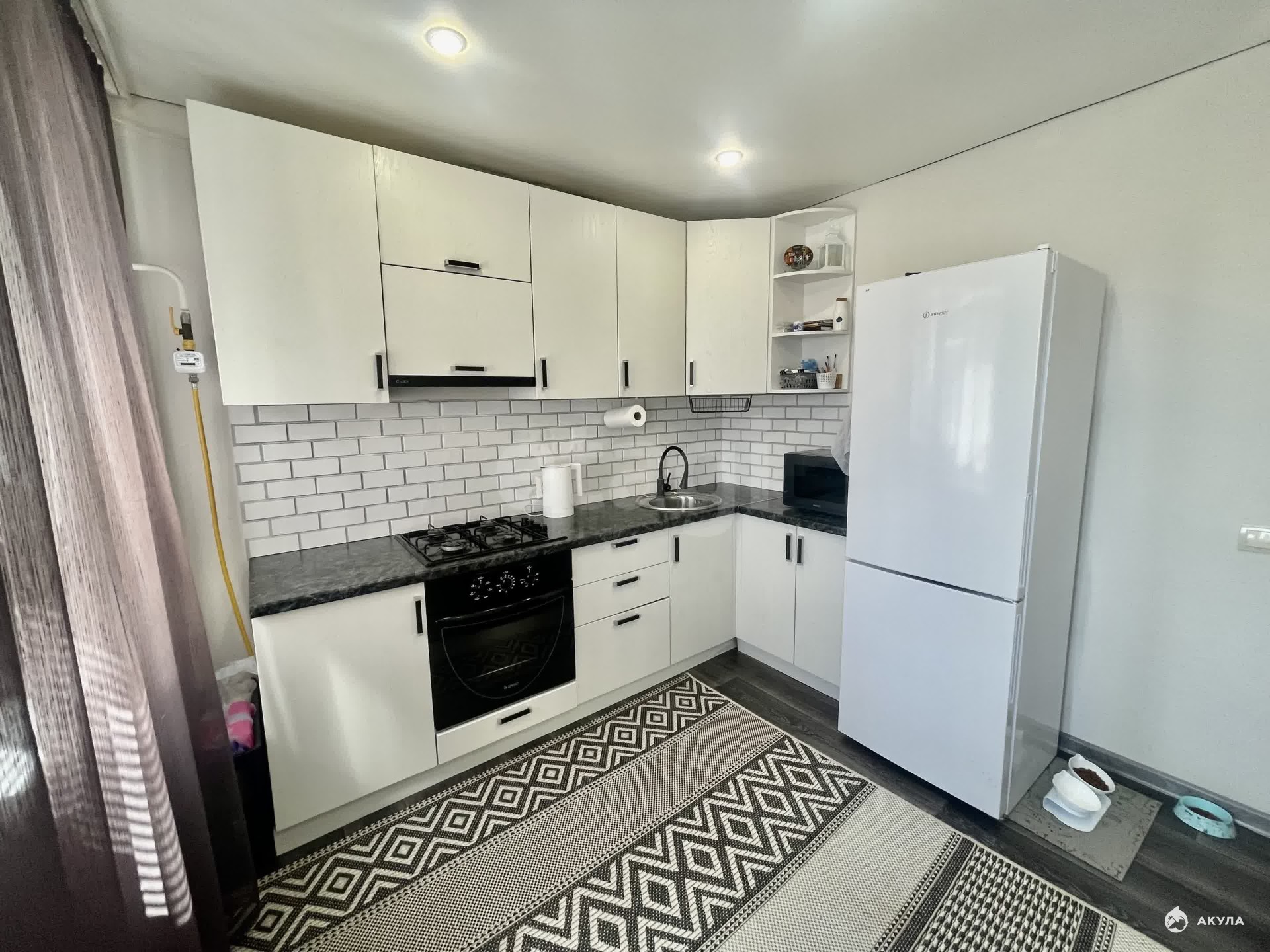 Новым собственникам останется кухонный гарнитур, диван в комнате, комод.