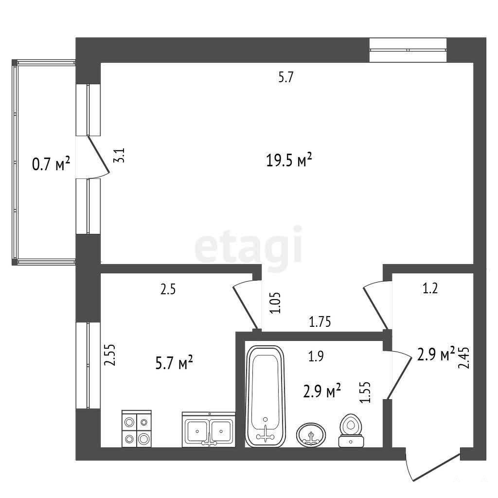 - 5.7 м²