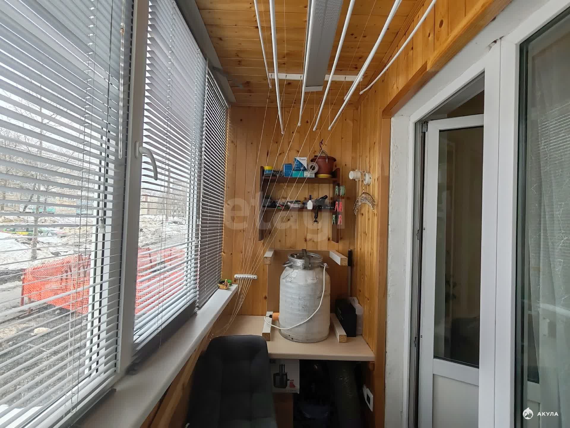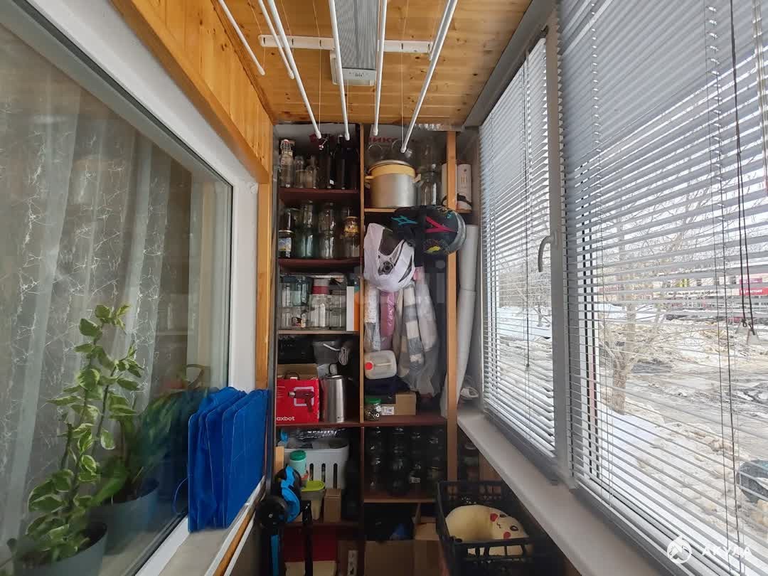 Лоджия: застеклена пластиковым окном, стены обшиты деревянной вагонкой для уюта. Имеется теплый пол, проведено освещение. Есть вместительный шкаф для хранения вещей и заготовок. Обустроено рабочее место.