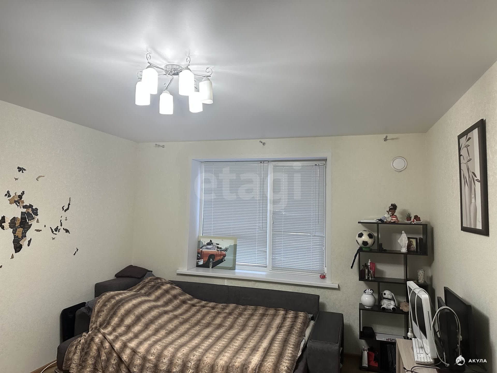 Выполнен косметический ремонт, совмещенный санузел. Напольное покрытие — линолеум. Также имеется балкон.
