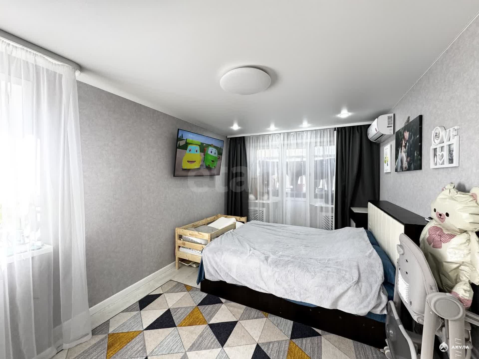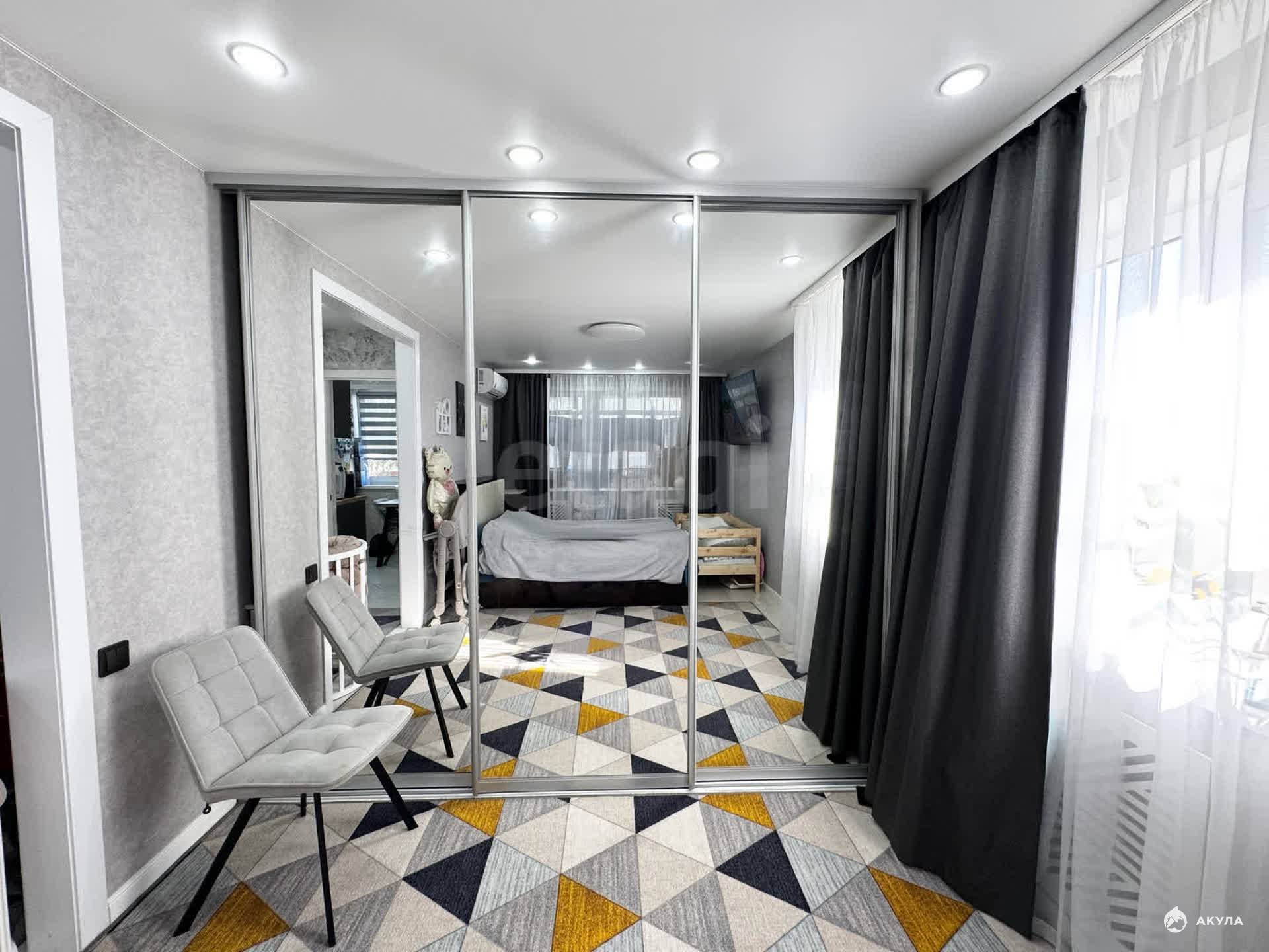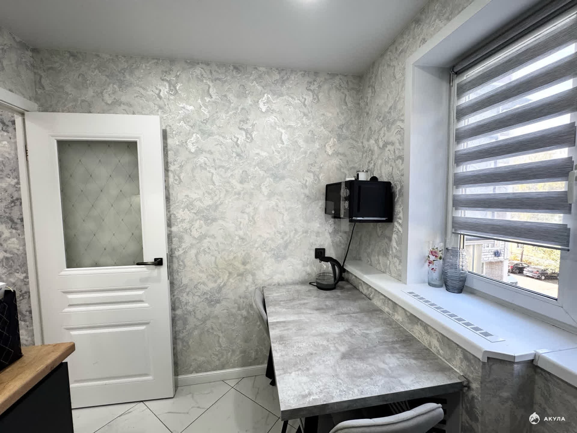 Квартира с современным ремонтом, установлены пластиковые окна, натяжные потолки, в комнате на полу ламинат, в коридоре и кухне керамогранит, установлены теплые полы. Санузел совмещен, обложен кафелем, входная дверь железная.