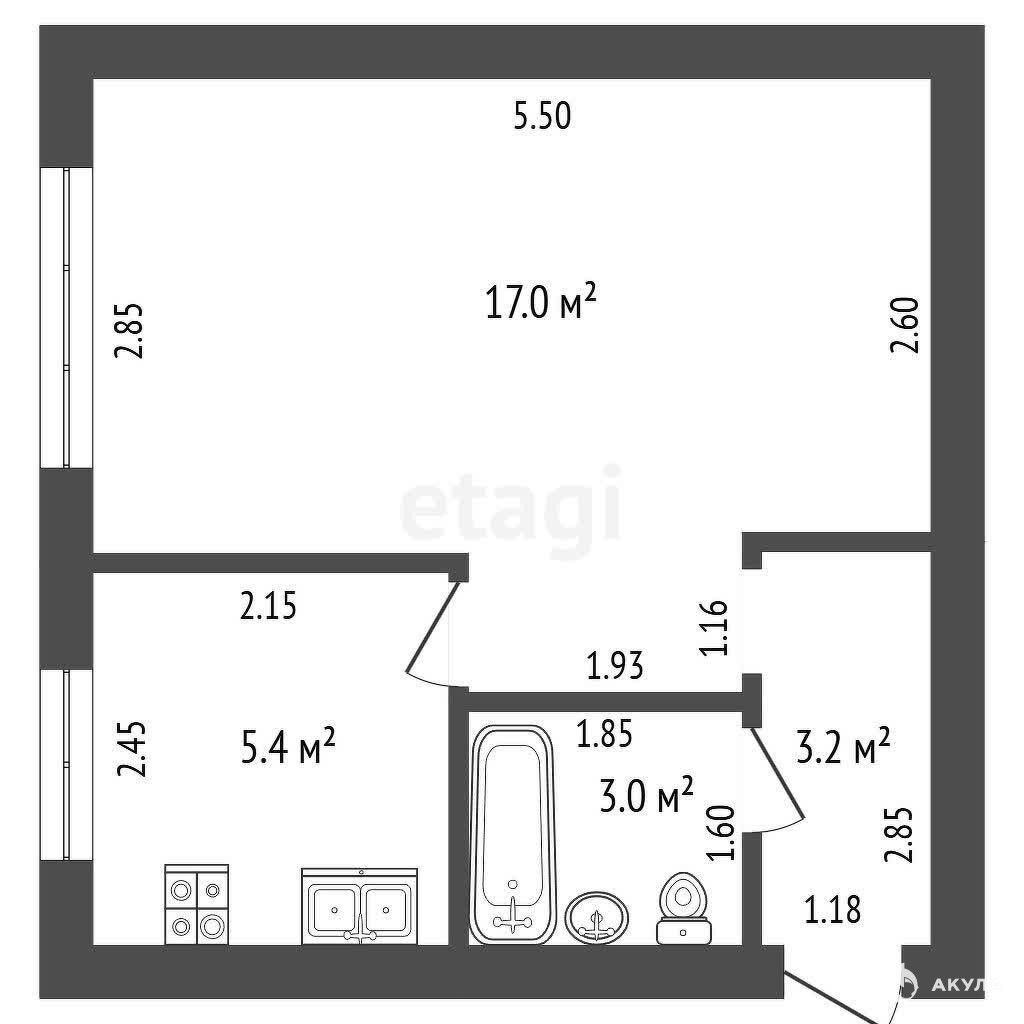 - 5.4 м²