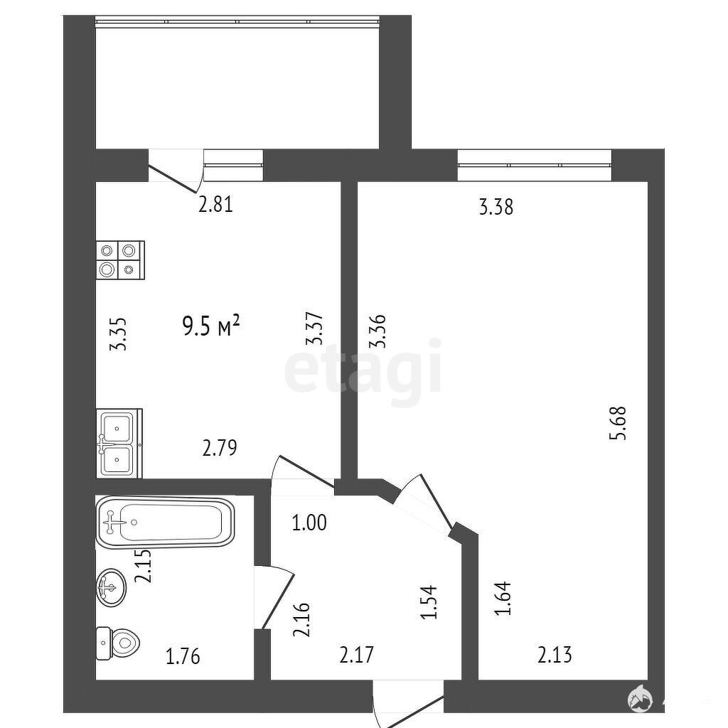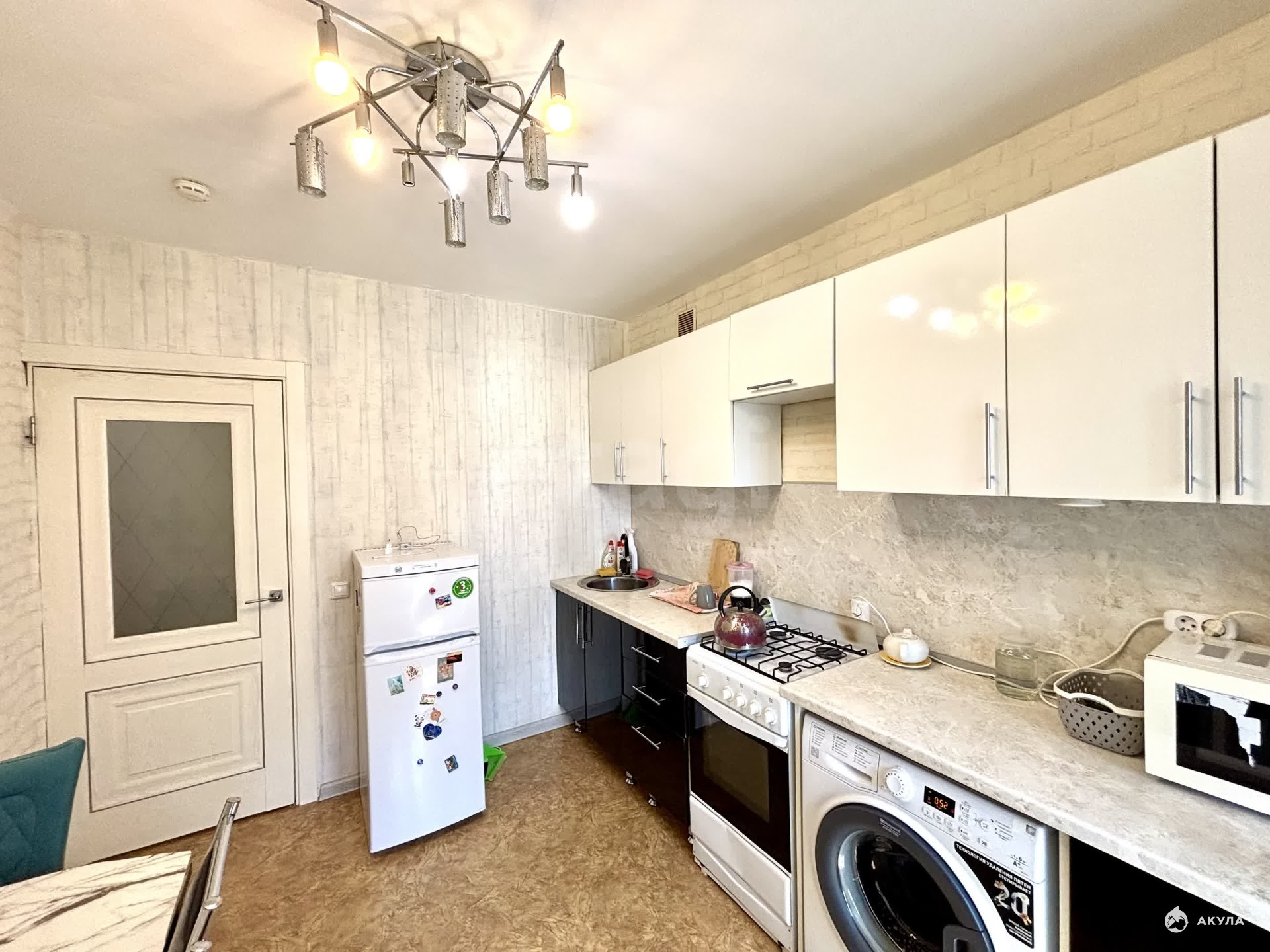 Общая площадь 34 кв. м без учета лоджии. Кухня 9, 4 кв. м с выходом на застекленную лоджию.