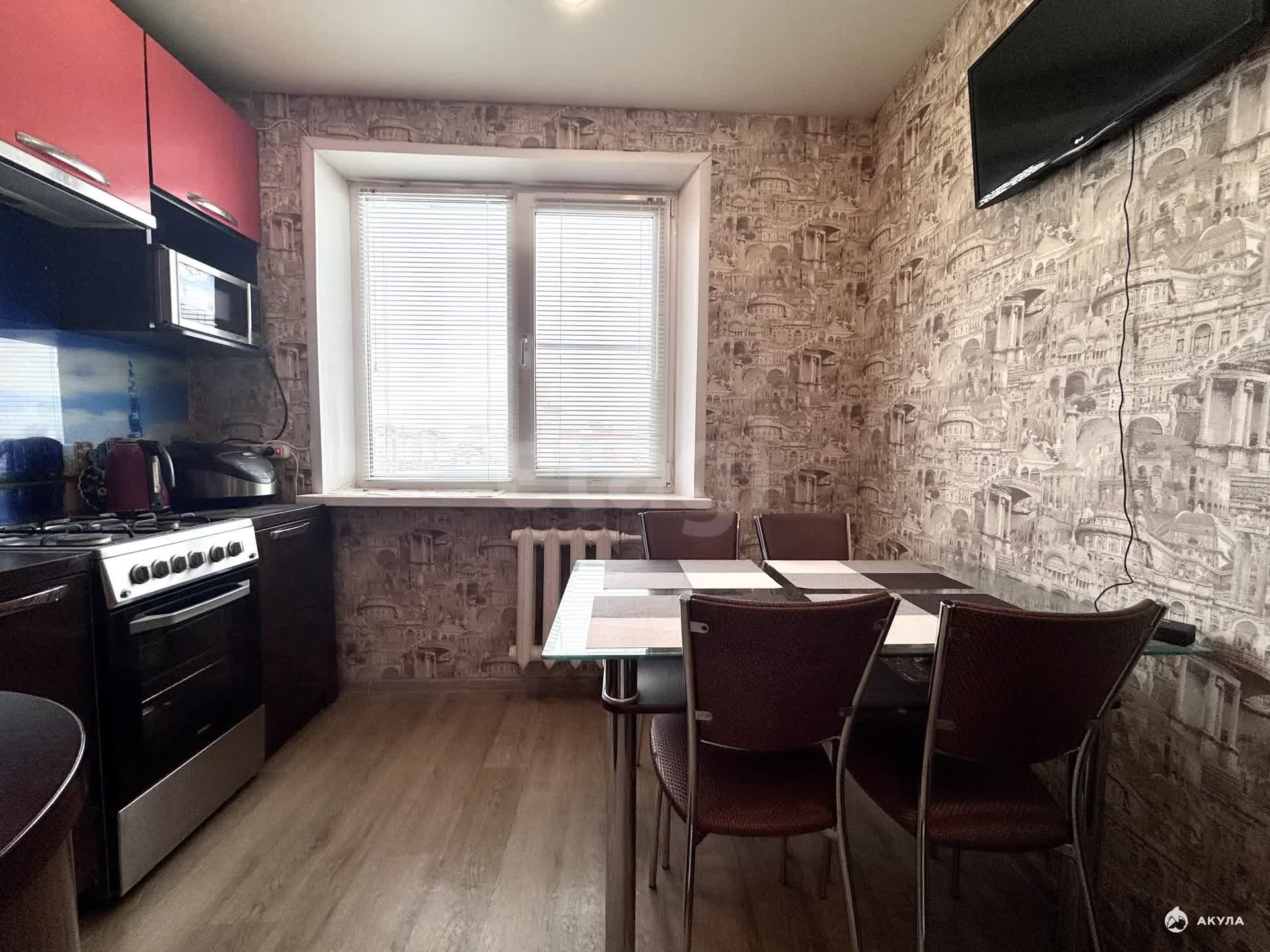 Объект в хорошем состоянии — установлены пластиковые окна, натяжные потолки со светодиодным освещением. На полу в комнате уложен качественный ламинат, на кухне и в прихожей — линолеум. Санузел совмещенный, выложен плиткой.