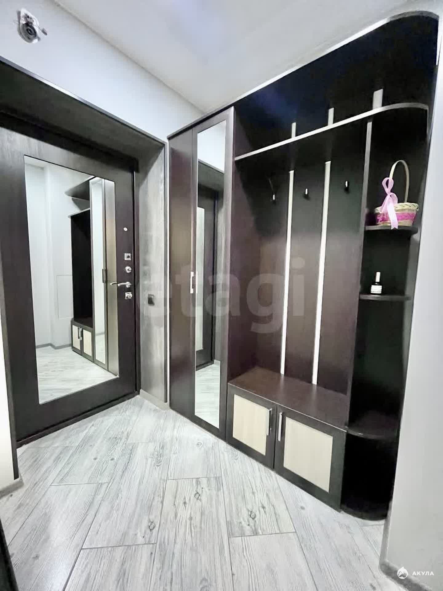 В квартире сделан дизайнерский ремонт, постелен ламинат. В ванной комнате стены выложены кафелем. Балкон отделан деревом и застеклен пластиковыми окнами. Входная металлическая дверь с внутренней стороны облицована зеркалом. В прихожей удобный современный шкаф.