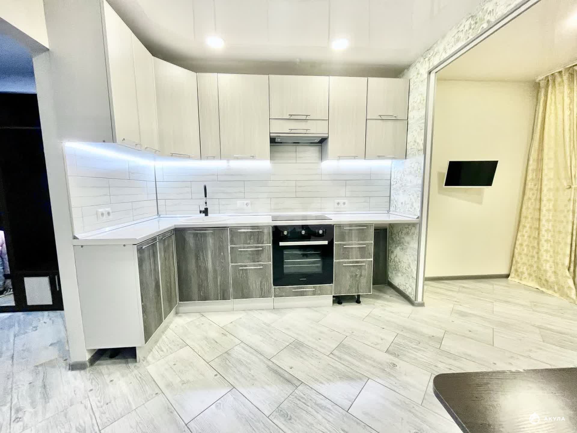 Межкомнатные откатные двери на направляющих позволяют экономить пространство квартиры. Приятным подарком для покупателя будет вся мебель и техника, которую можно увидеть на фотографиях.