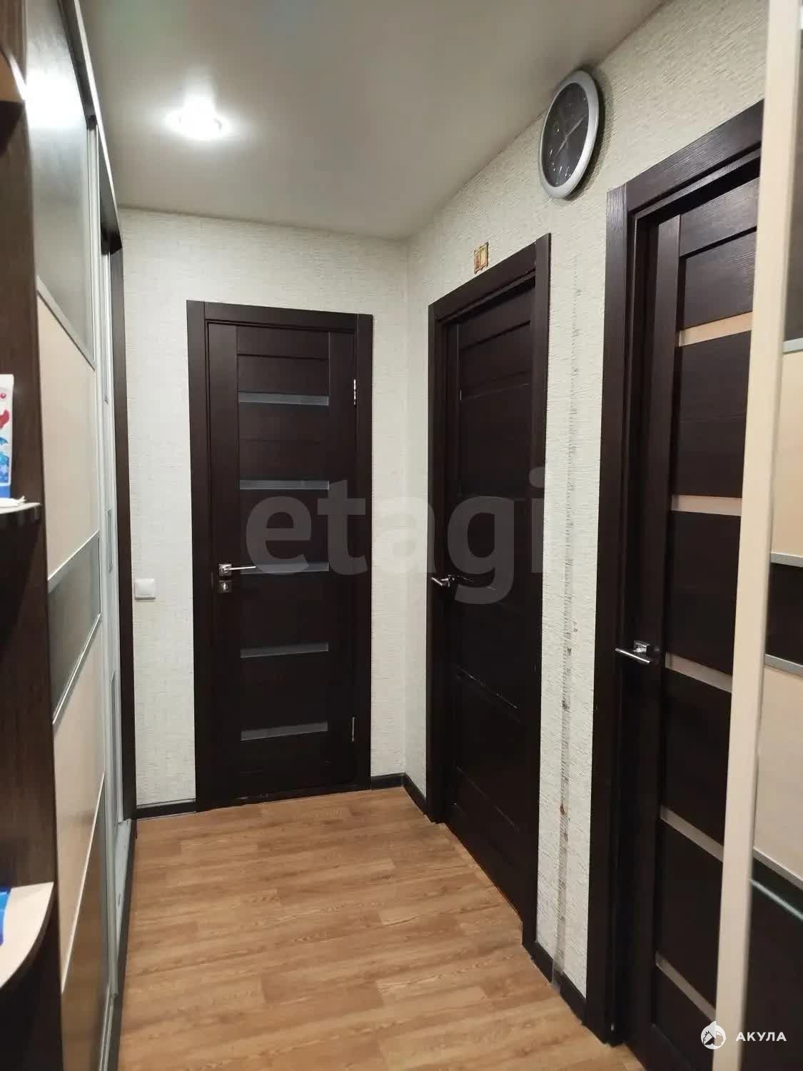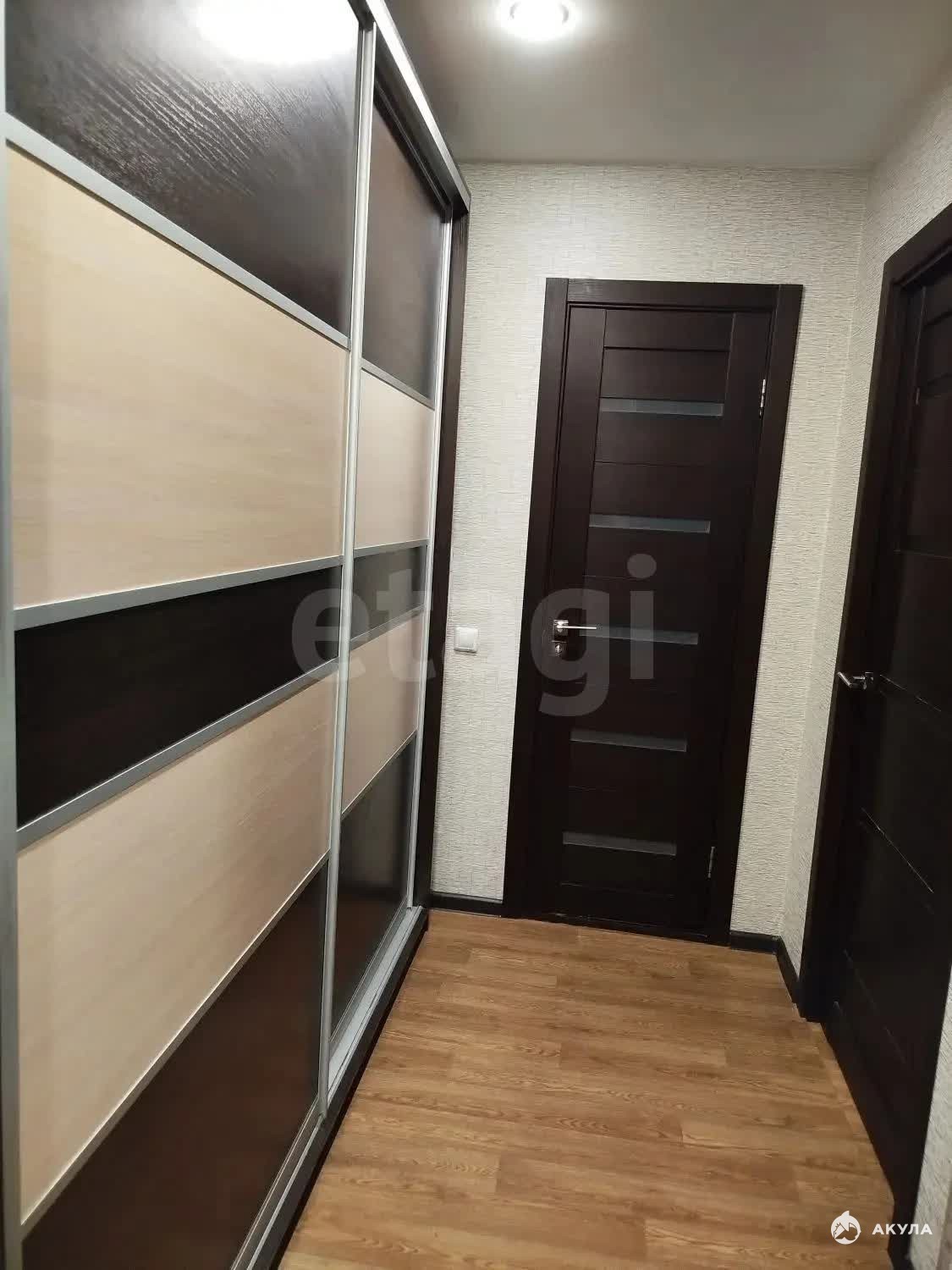 В квартире выполнен косметический ремонт - пол постелен линолеумом, стены оклеены светлыми обоями, установлены натяжные потолки, на окнах пластиковый стеклопакет.