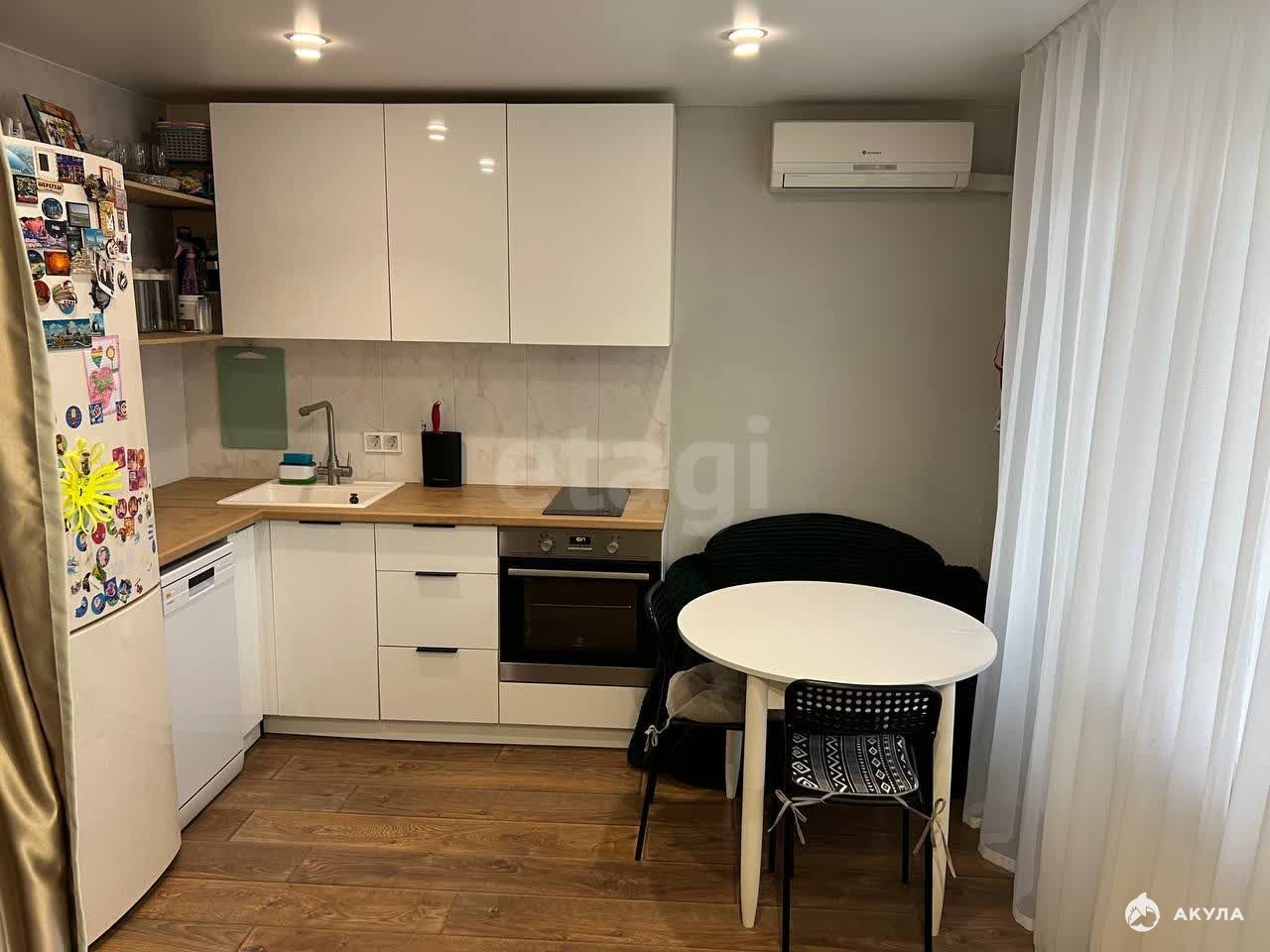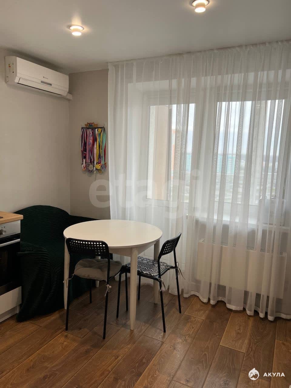 При ремонте использовались качественные материалы: натяжные потолки, ламинат «Таркет», новые межкомнатные двери, дорогая входная железная дверь, санузел совмещенный в кафеле, кондиционер. Лоджия 6.8 кв. м с выходом из кухни и панорамными окнами открывают прекрасный вид на город.