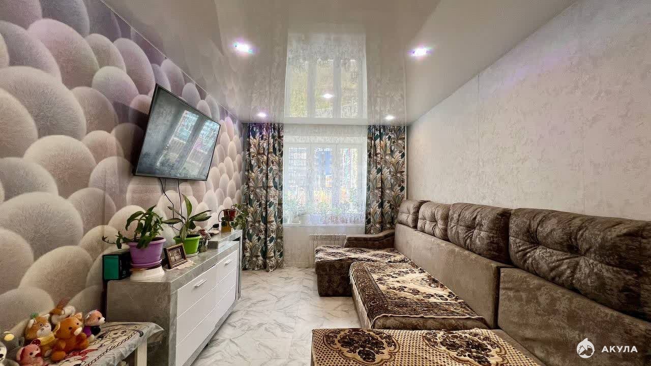 Квартира в хорошем состоянии - установлены пластиковые окна, натяжные потолки с точечными светильниками и люстрами. Санузел совмещен, на стенах панели, на полу плитка. Установлены все необходимые счетчики на воду. Железная дверь обеспечивает безопасность и комфорт.