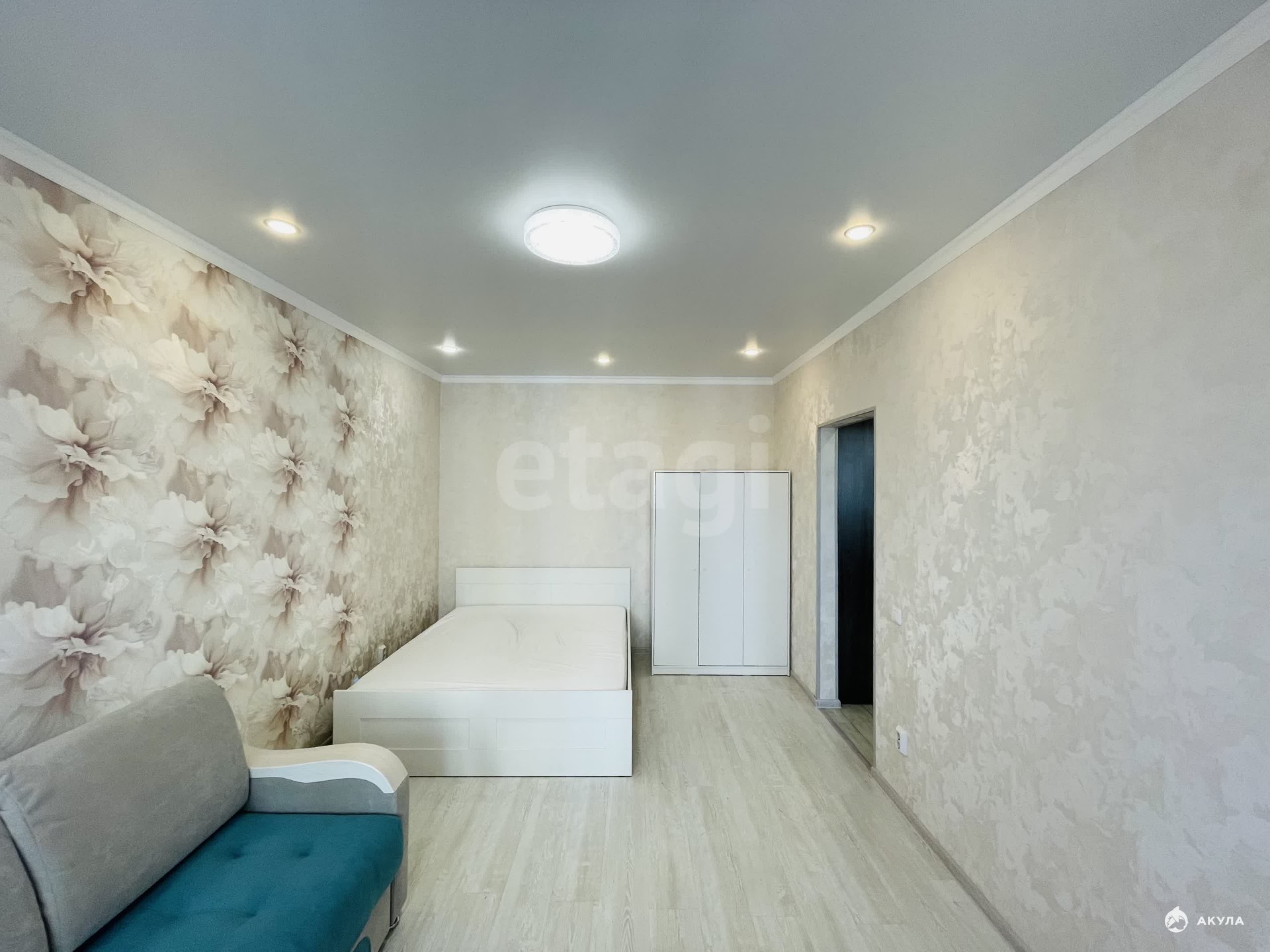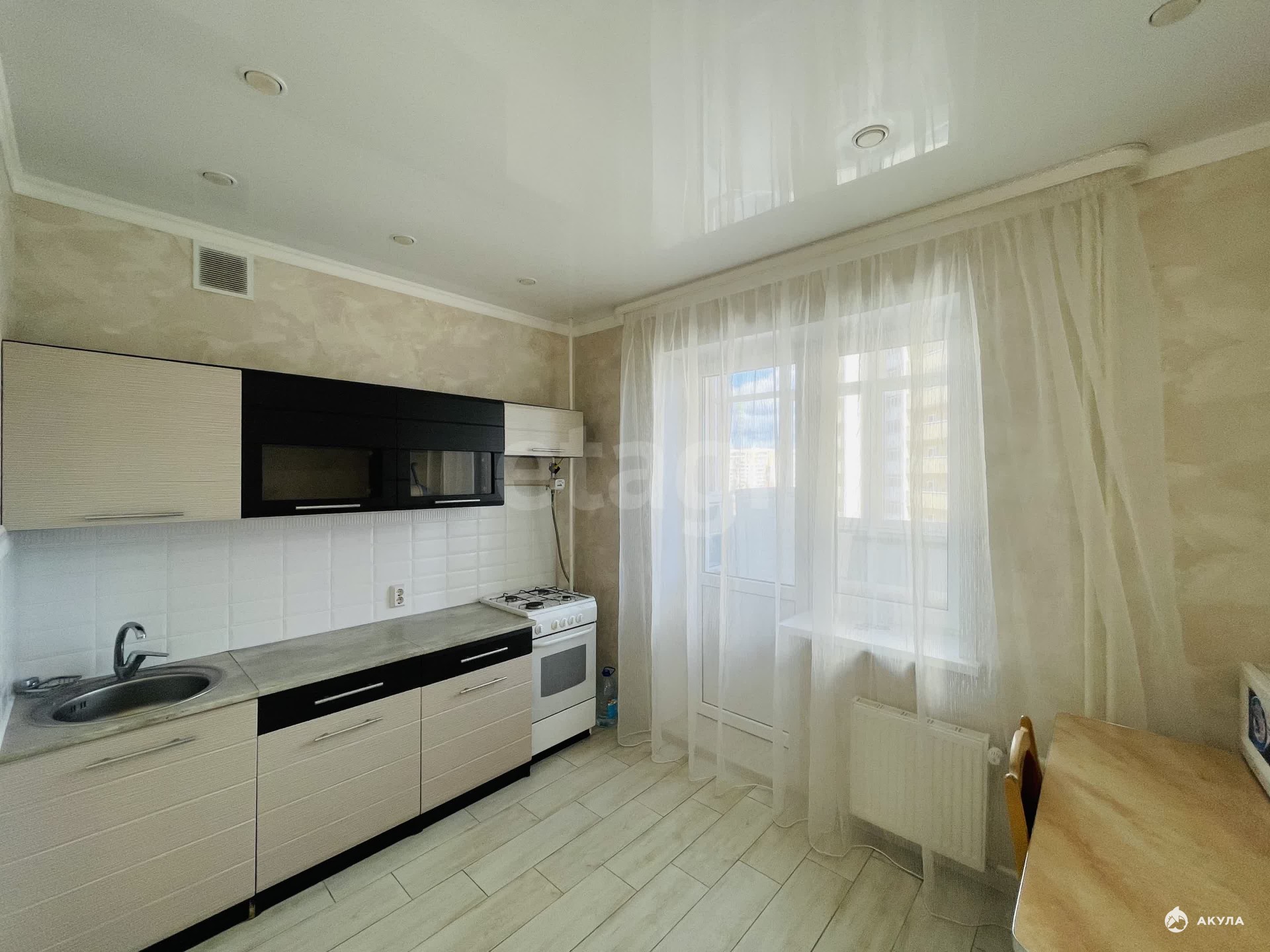 В квартире выполнен современный ремонт, на полу в коридоре, санузле и кухне плитка, в комнате ламинат, потолки натяжные, окна пластиковые.