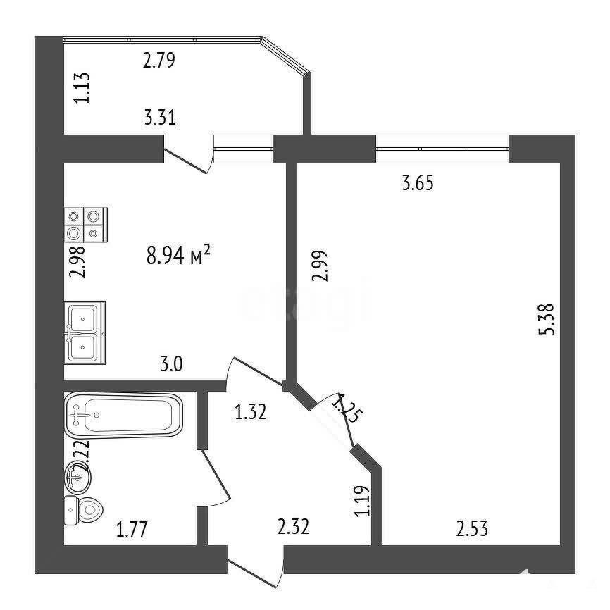 Отличная планировка. Просторная комната 17, 8 кв. м, функциональная кухня 9 кв. м с выходом на балкон.