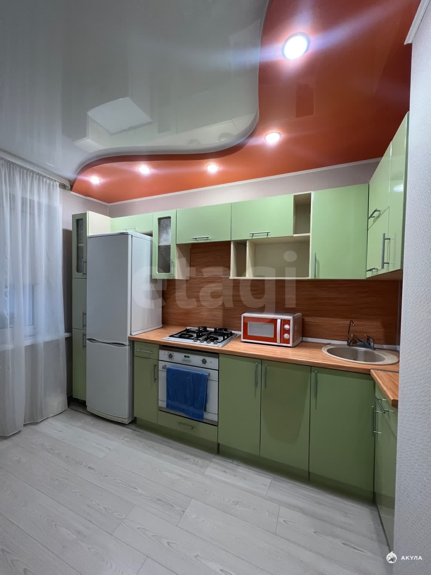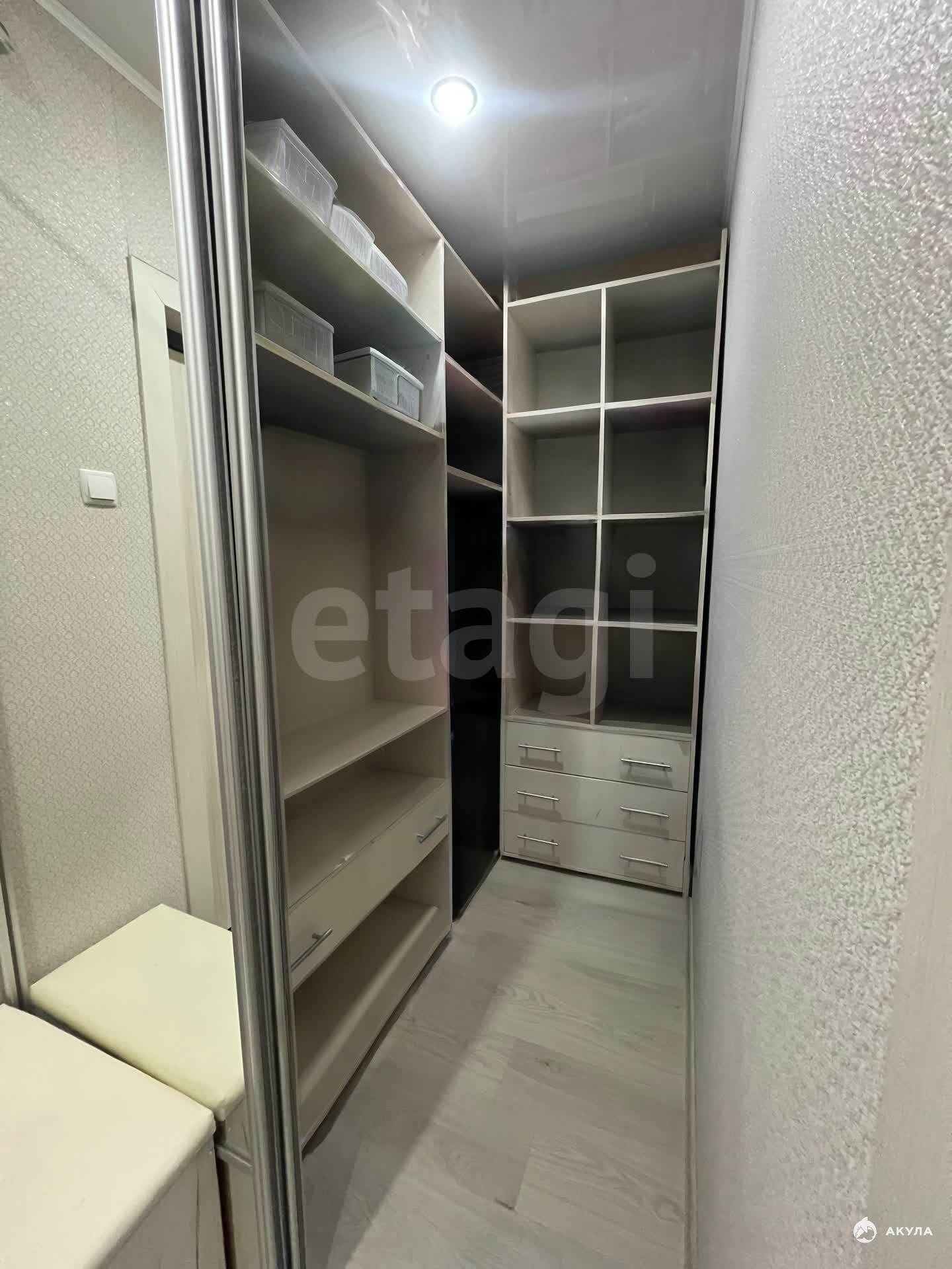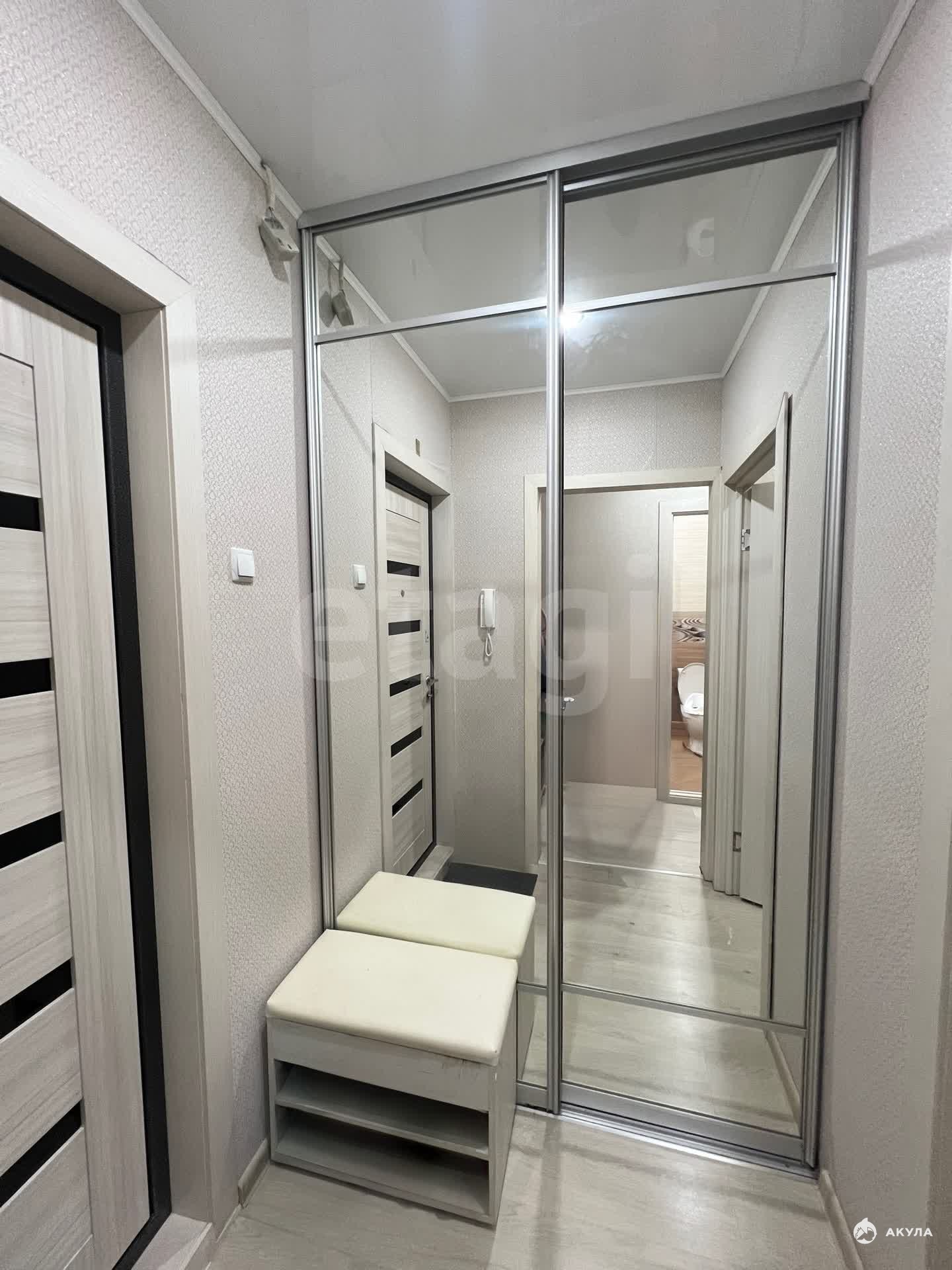 Квартира полностью готова к проживанию благодаря качественному ремонту. Помещения оформлены в светлых тонах, установлены натяжные потолки, в спальне потолок из гипсокартона. Санузел совмещен, отделан практичной плиткой. В комнате и на кухне установлены современные пластиковые окна. Балкон застеклен и отделан вагонкой, что создает дополнительное утепленное пространство. Для нового владельца останутся кухонный гарнитур, диван с креслом и функциональная гардеробная система.