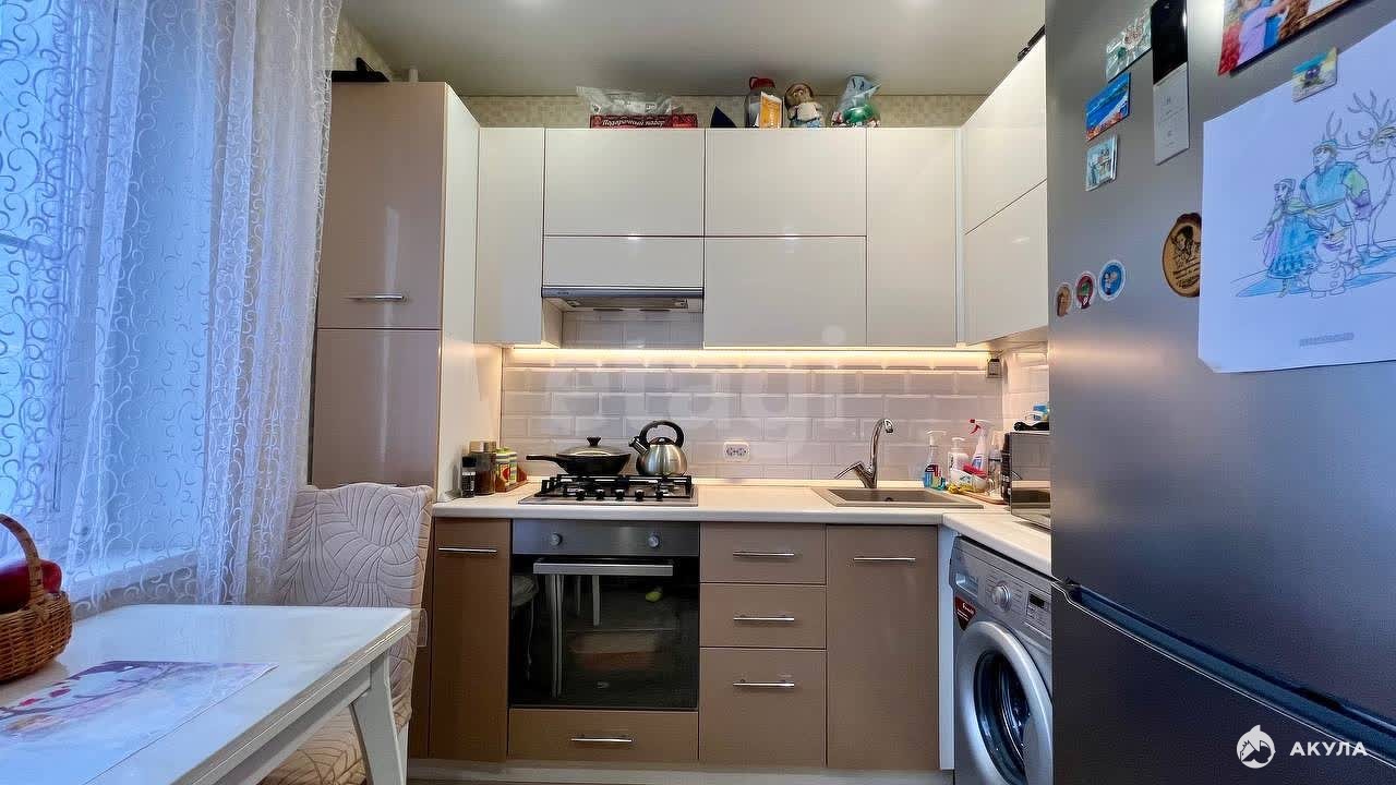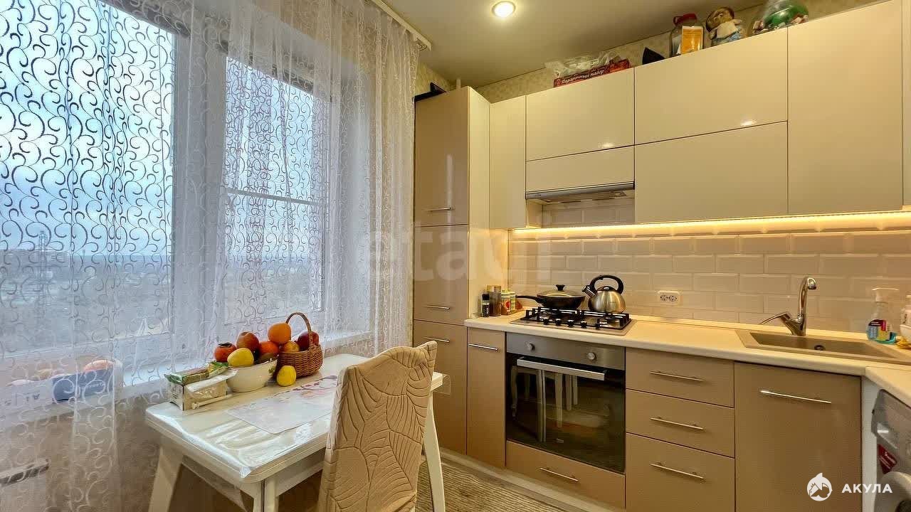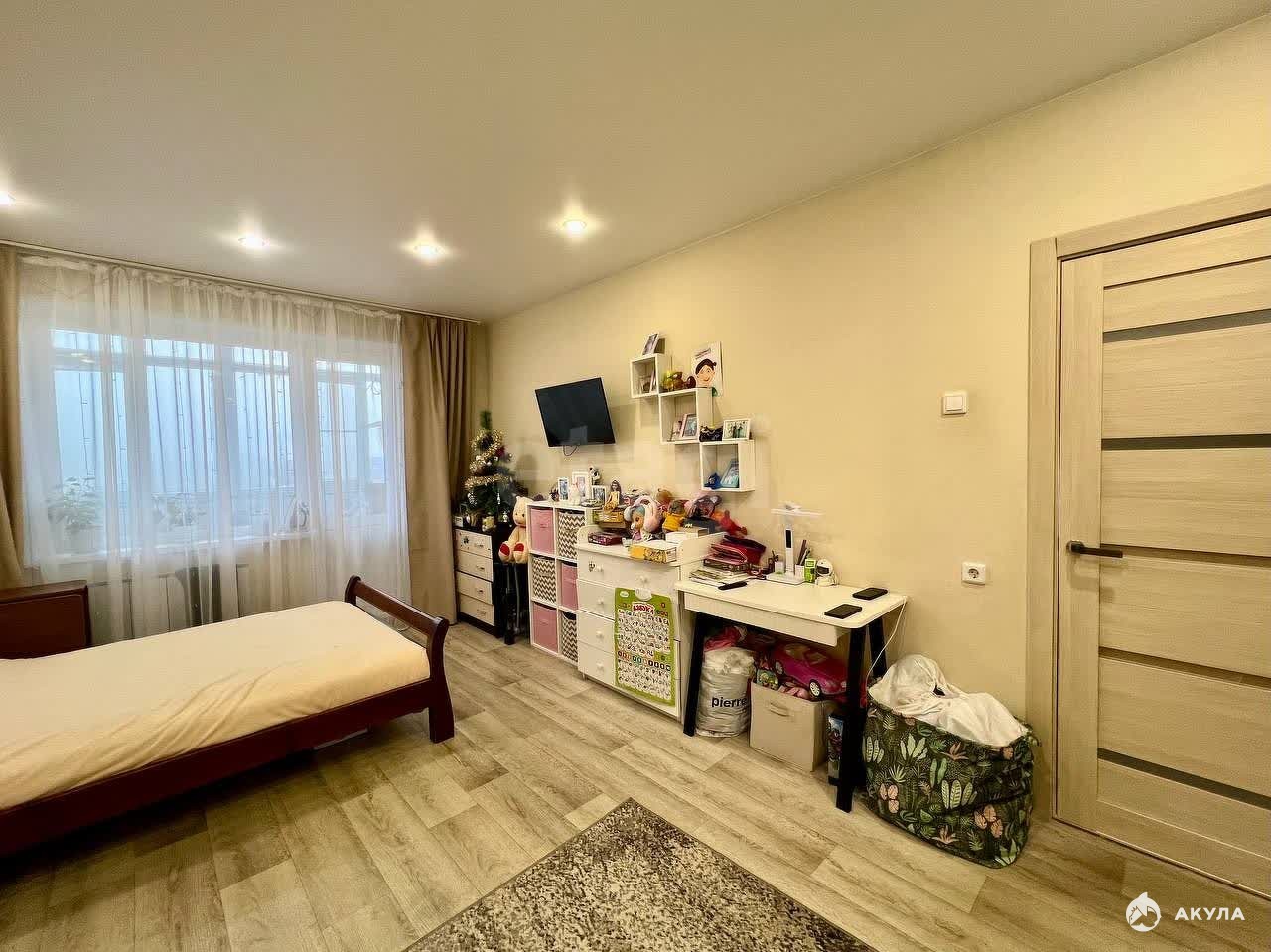 В квартире сделан хороший и качественный косметический ремонт. Установлена входная металлическая дверь. Окна пластиковые. Потолки натяжные с встроенными точечными светильниками. Напольное покрытие — линолеум. Санузел совмещенный, выложен плиткой. Установлены счетчики на г/х воду и газ. Лоджия застеклена пластиковой рамой. Вся мебель на кухне остается новому собственнику.