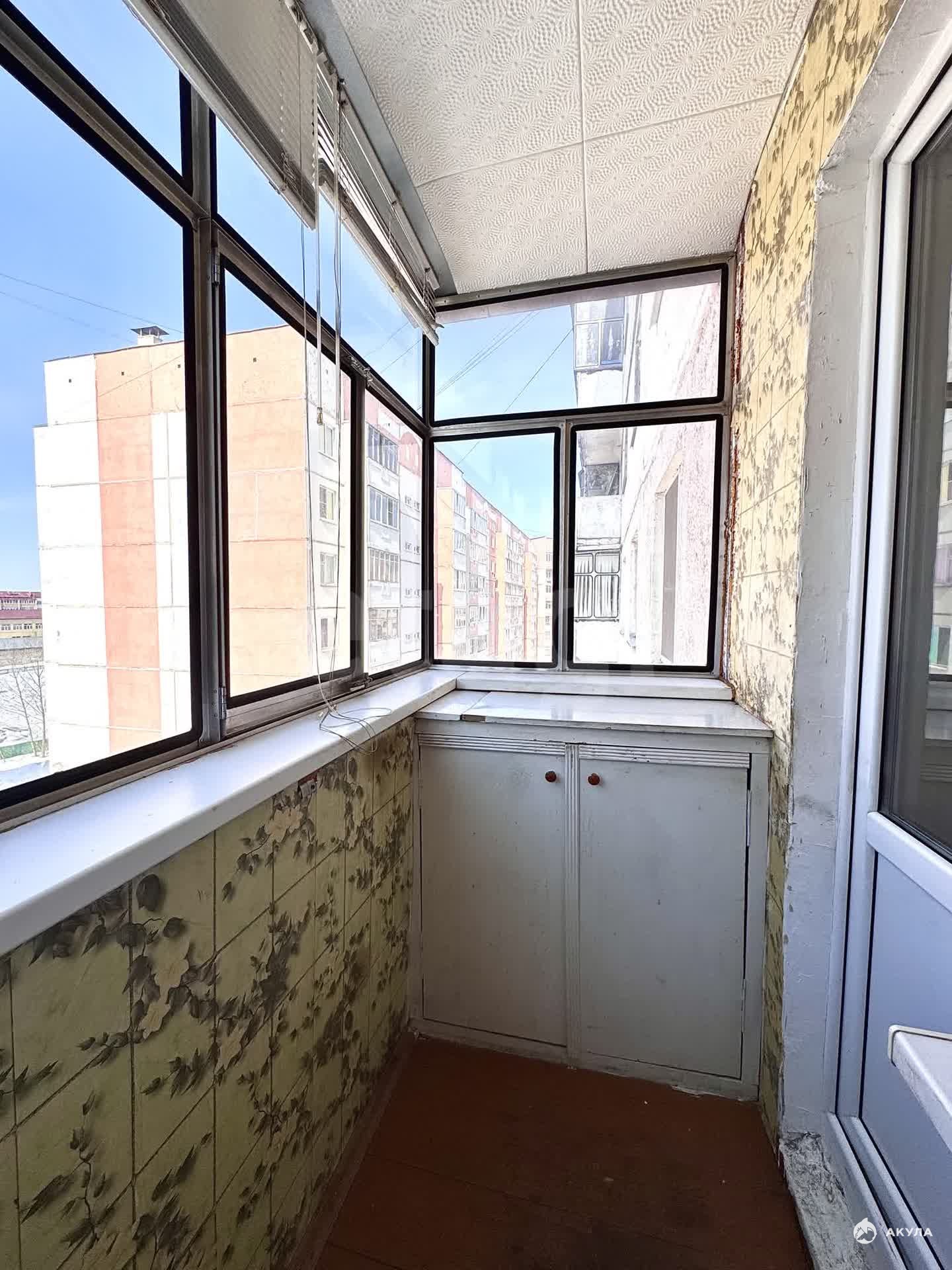 Окна пластиковые. Напольное покрытие — линолеум. Санузел совмещенный, плитка. Из комнаты выход на застекленную лоджию. Трубы водоснабжения пластиковые. Установлены счетчики на газ, г/х воду.