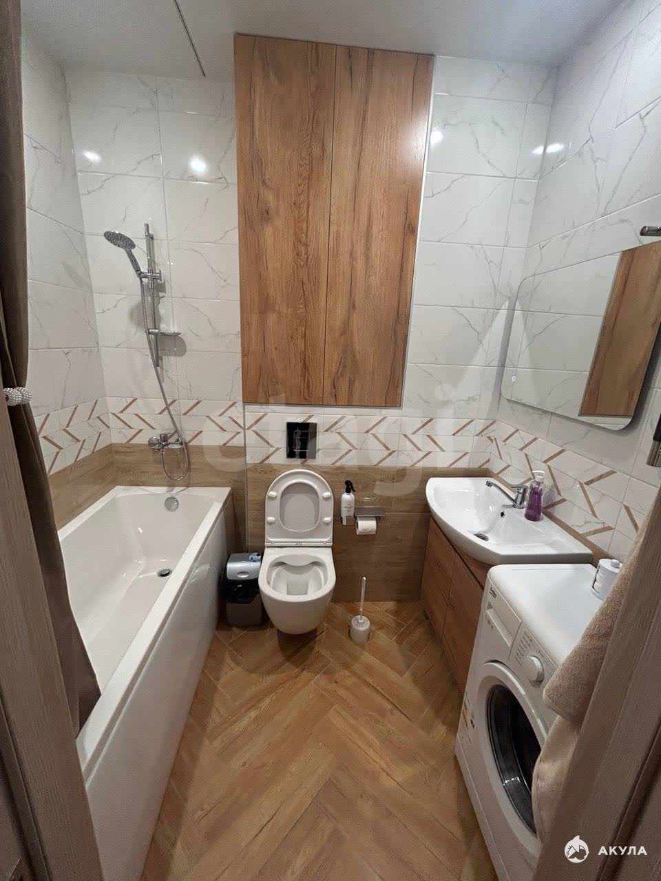 В квартире качественный косметический ремонт. В прихожей, комнате, кухне — линолеум. Санузел совмещенный и отделан керамогранитом. По всей квартире натяжные потолки. Мебель остается новым владельцам. Техника по договоренности.