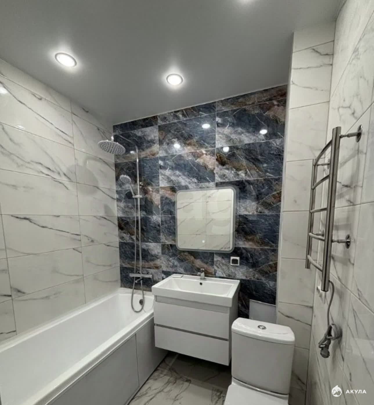 Выполнен современный ремонт, совмещенный санузел. Напольное покрытие — плитка и ламинат. Также имеется балкон.