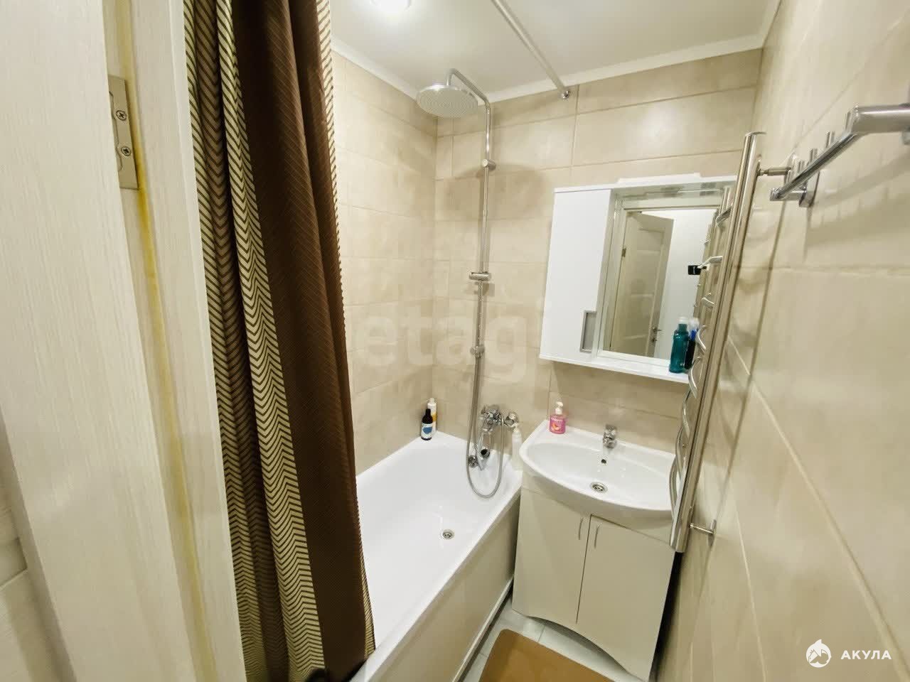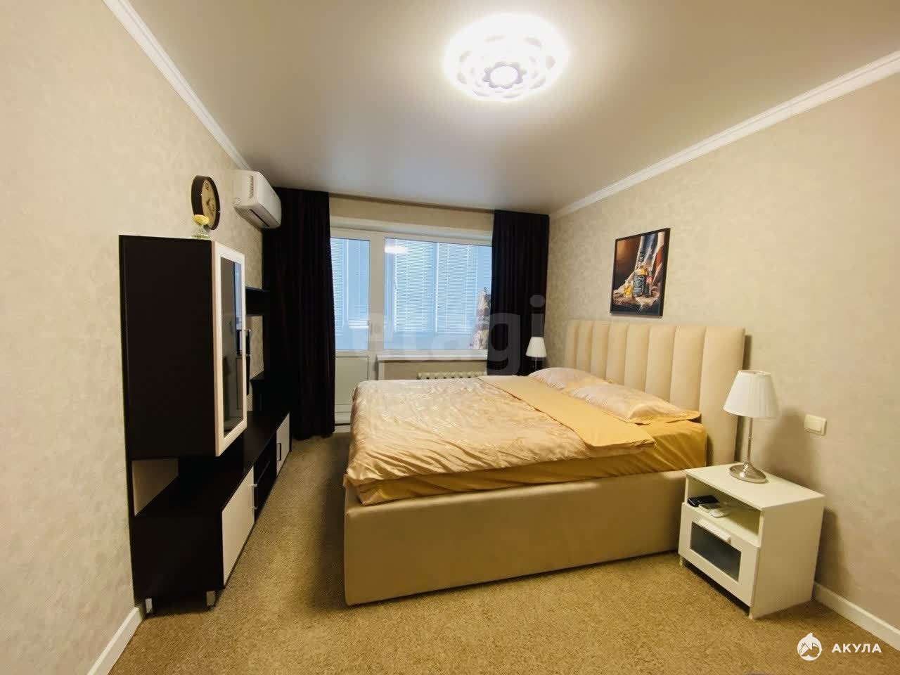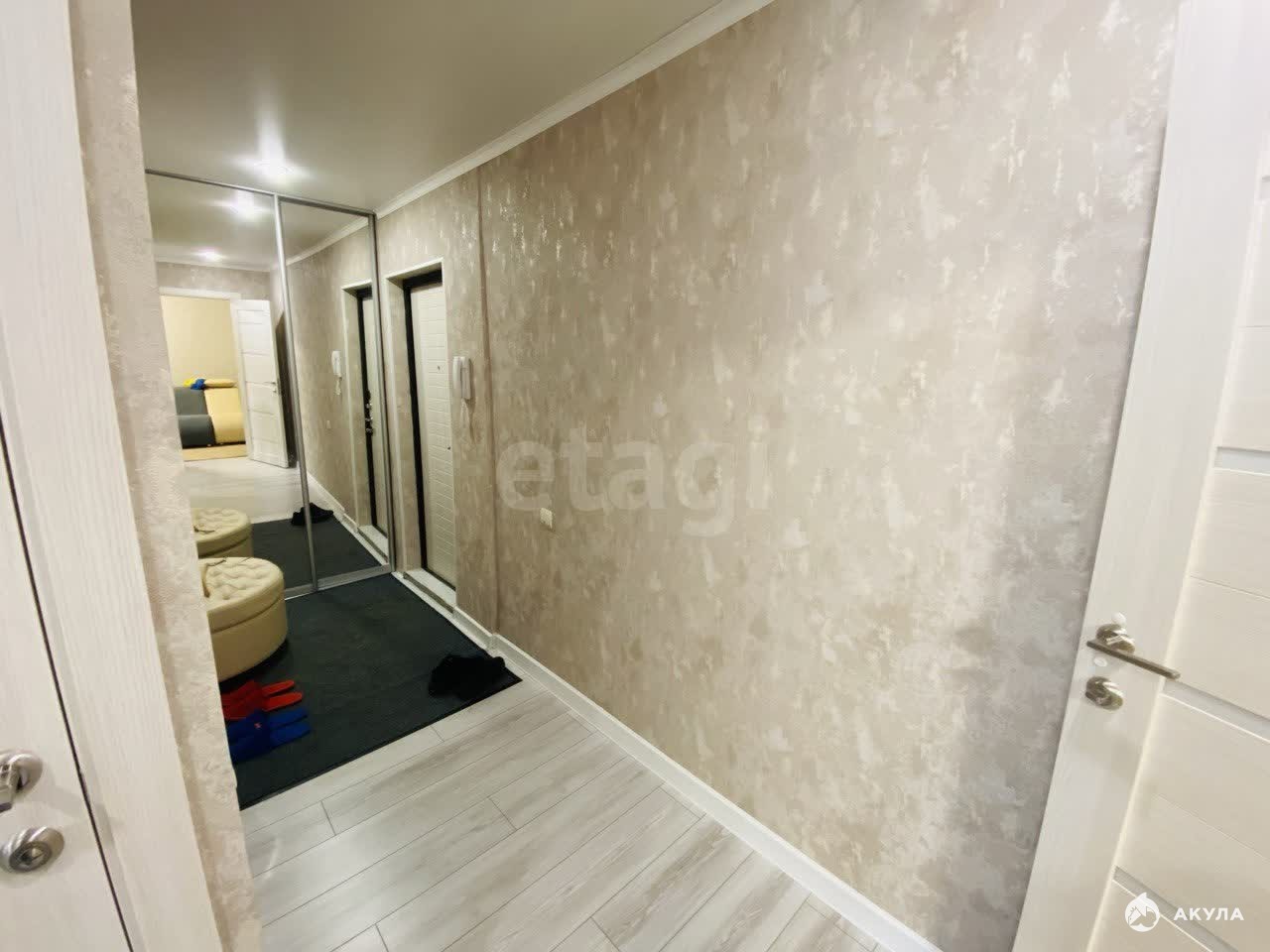 В квартире новый современный ремонт, в котором никто не жил. На полу в кухне и прихожей кафель / теплые полы. В комнате ламинат. Санузел в кафеле. Потолки натяжные. При входе встроенный вместительный шкаф с зеркальными дверьми. Вся техника и мебель остается (кроме холодильника и кровати).