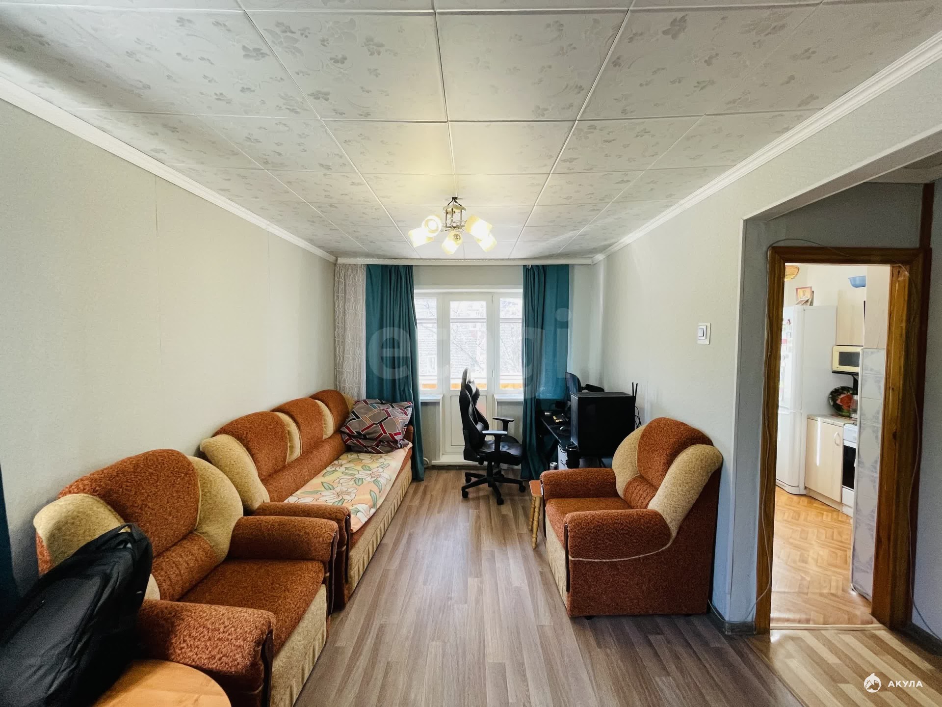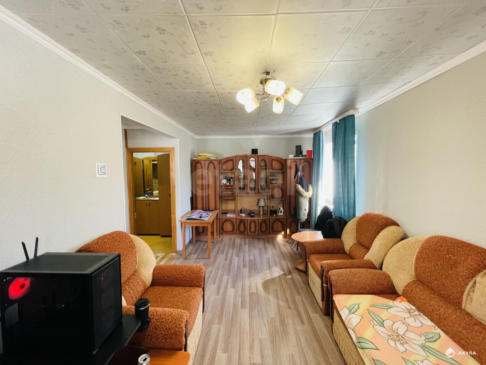 Дом панельный, этаж пятый, квартира угловая с двумя окнами, очень светлая и тёплая. Крыша после кап. ремонта, проблем нет. Просторный балкон, обшит вагонкой. Возможно зонирование, комната большая и просторная.