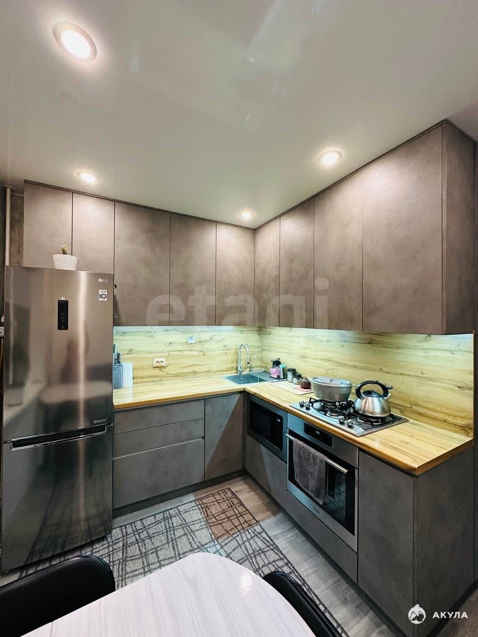 Удачная планировка: средний этаж (5 из 9), не угловая, тамбур на 2 квартиры — минимум соседей. Отделка: натяжные потолки, керамогранит, износостойкий ламинат. Совмещённый санузел отделан кафелем. Отдельная гардеробная, утеплённая застеклённая лоджия с ламинатом. Кондиционер. Отличный кухонный гарнитур.