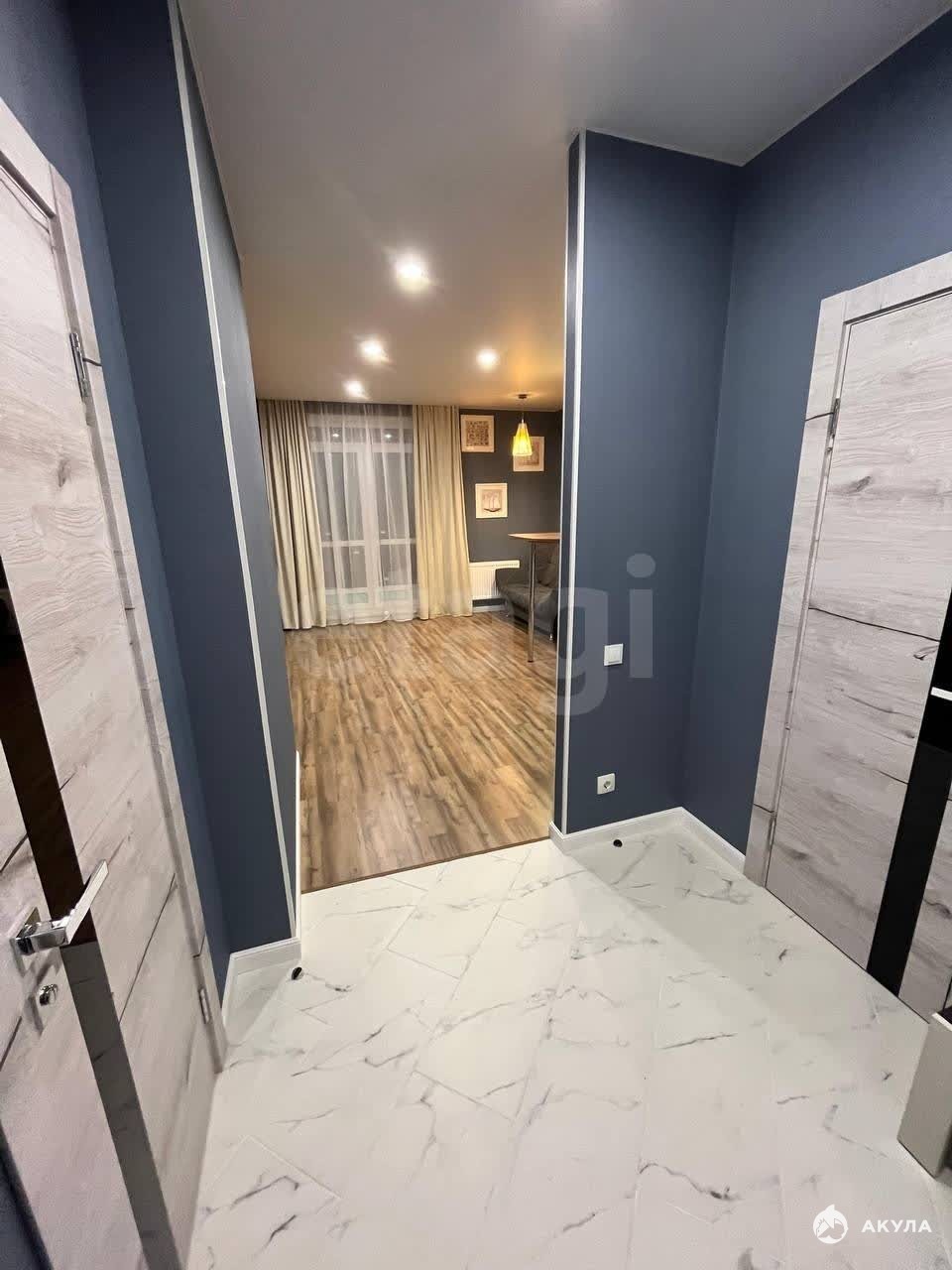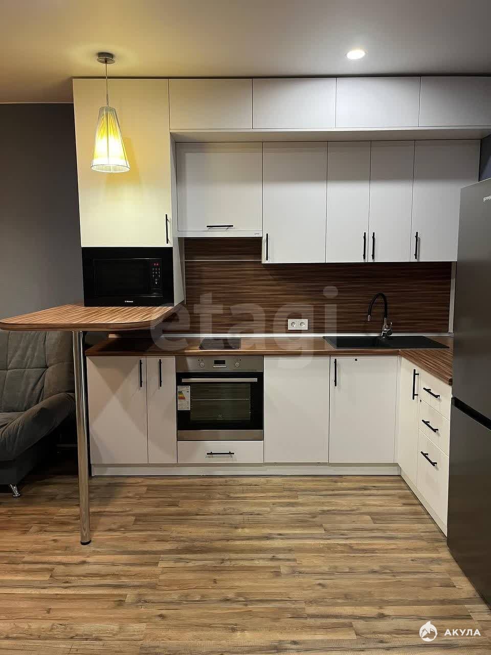 Квартира отличается рациональной планировкой: изолированная жилая комната 16, 3 кв. м и большая кухня-гостиная 18 кв. м, из которой есть выход на балкон. Окна выходят во двор, что обеспечивает тишину и хорошую инсоляцию. Объект полностью готов к проживанию: выполнен качественный современный ремонт с использованием долговечных материалов — натяжные потолки с точечными светильниками, ламинат в жилых зонах и керамогранит в прихожей и санузле.