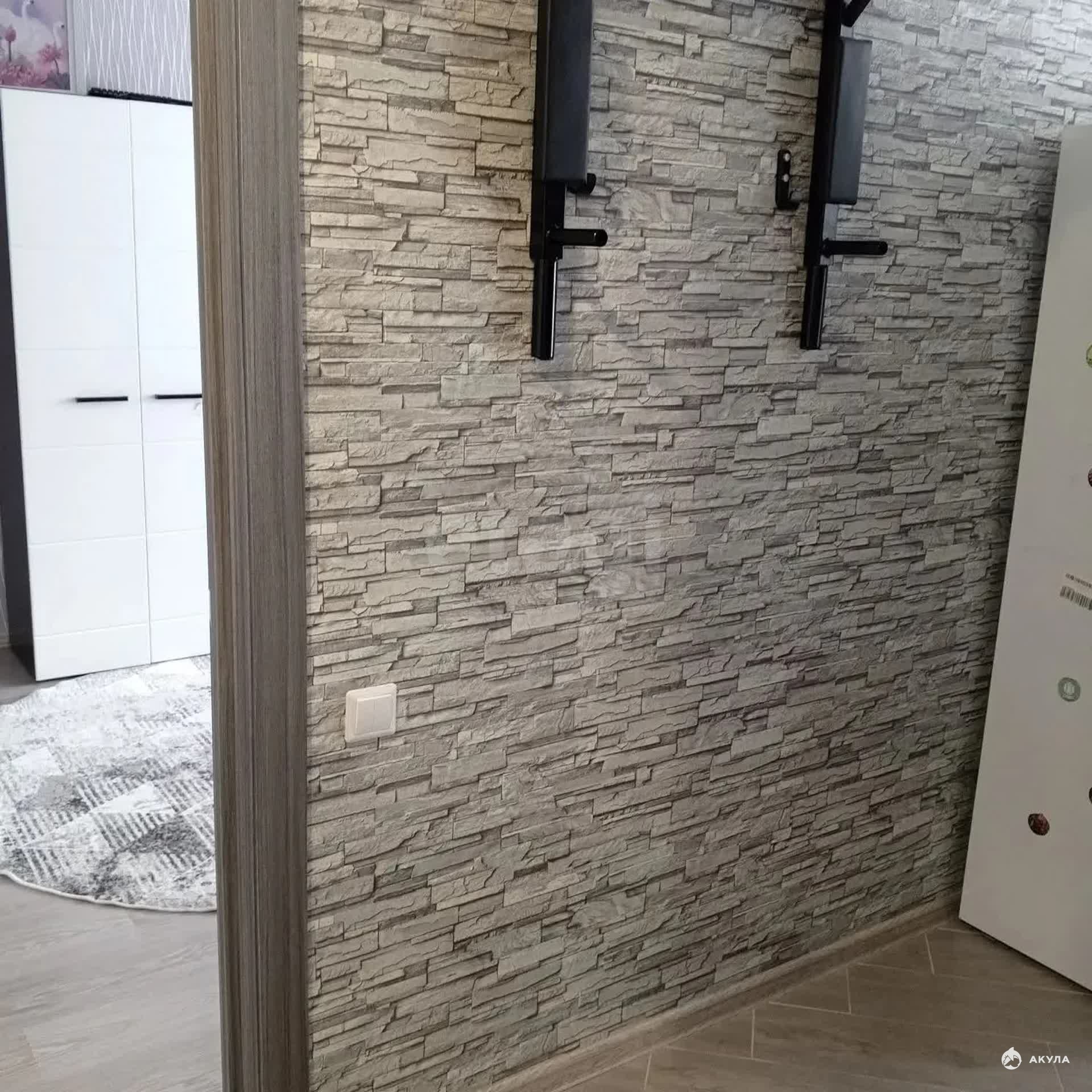 В квартире выполнена чистовая отделка с натяжными потолками, ламинатом в комнате и практичной плиткой в зоне прихожей и кухни.