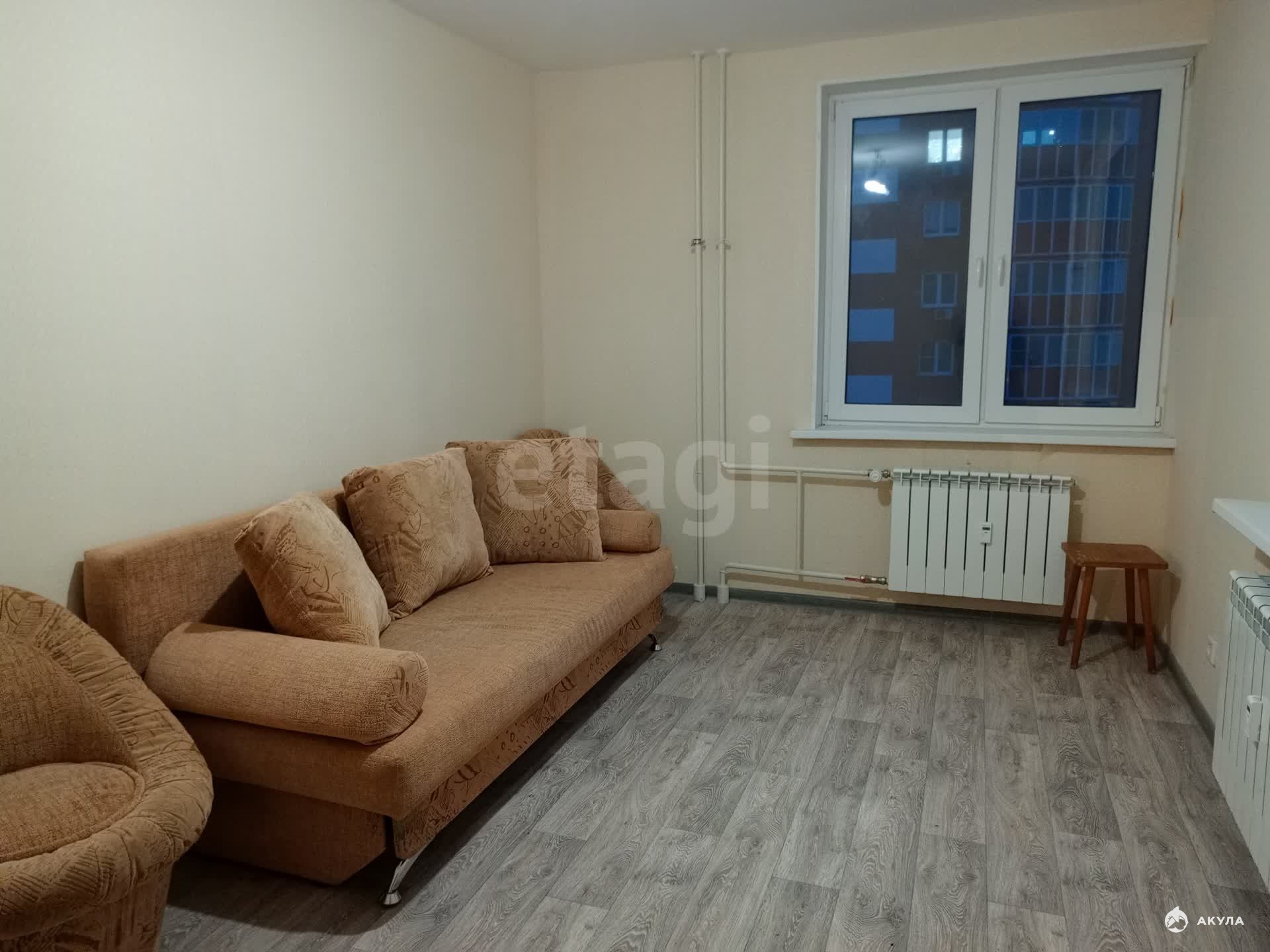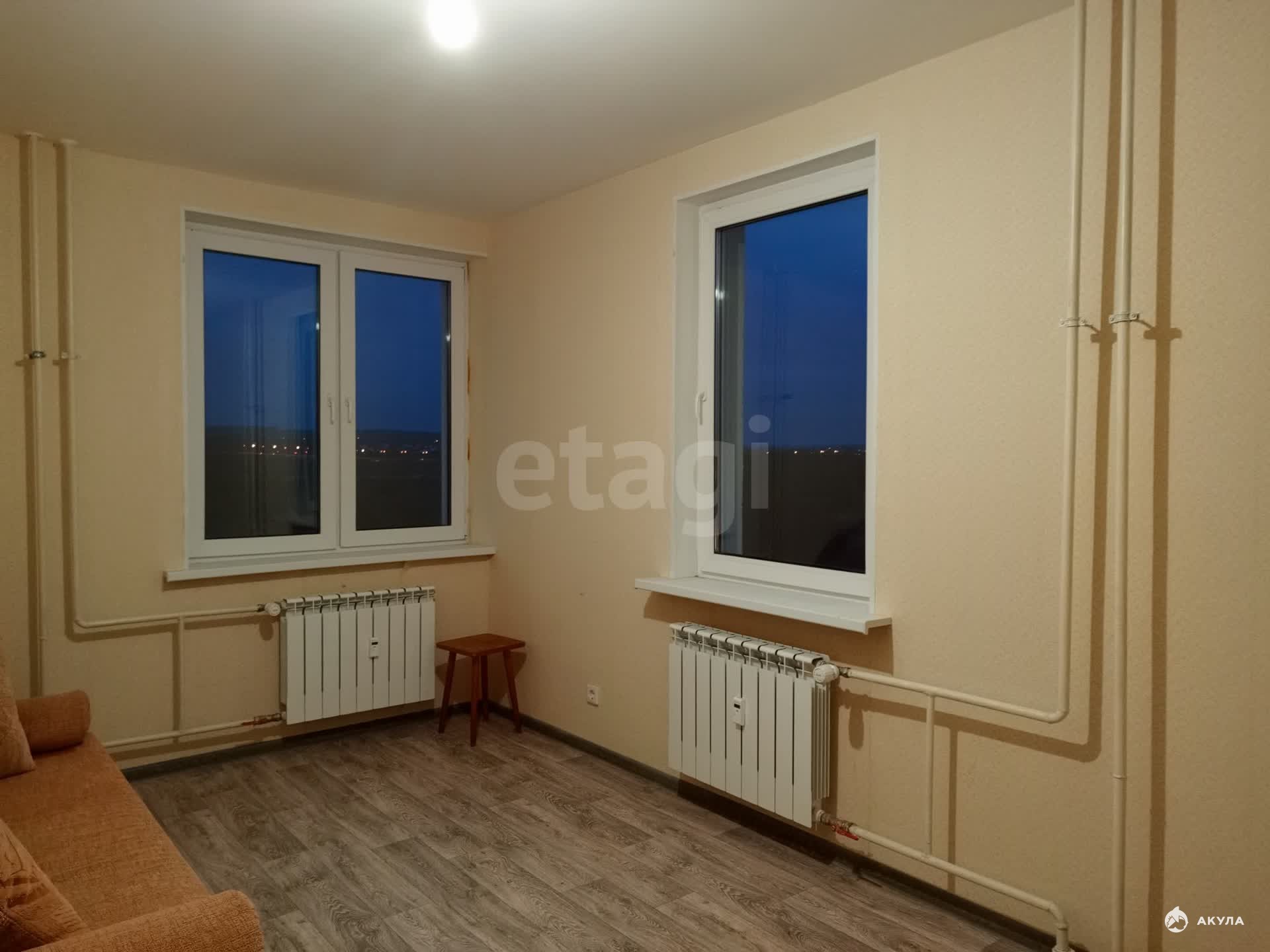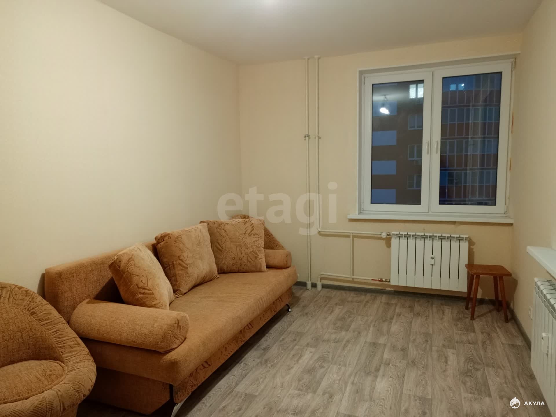 Имеется балкон, застекленный пластиковыми окнами. Кухня 12 кв.м. Санузел совмещен. Ремонт от застройщика. В квартире никто никогда не проживал. На полу застелен линолеум. Сантехника вся новая. На батареях установлены датчики тепла.