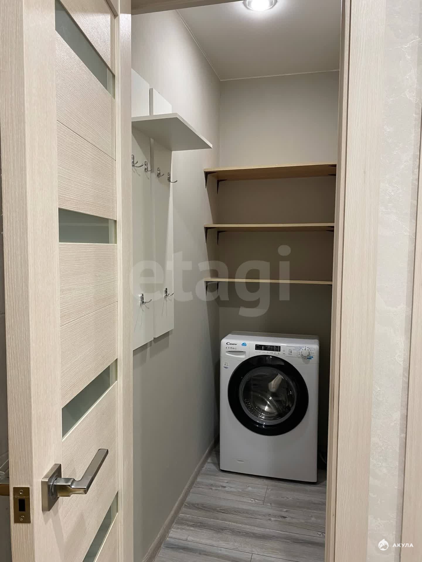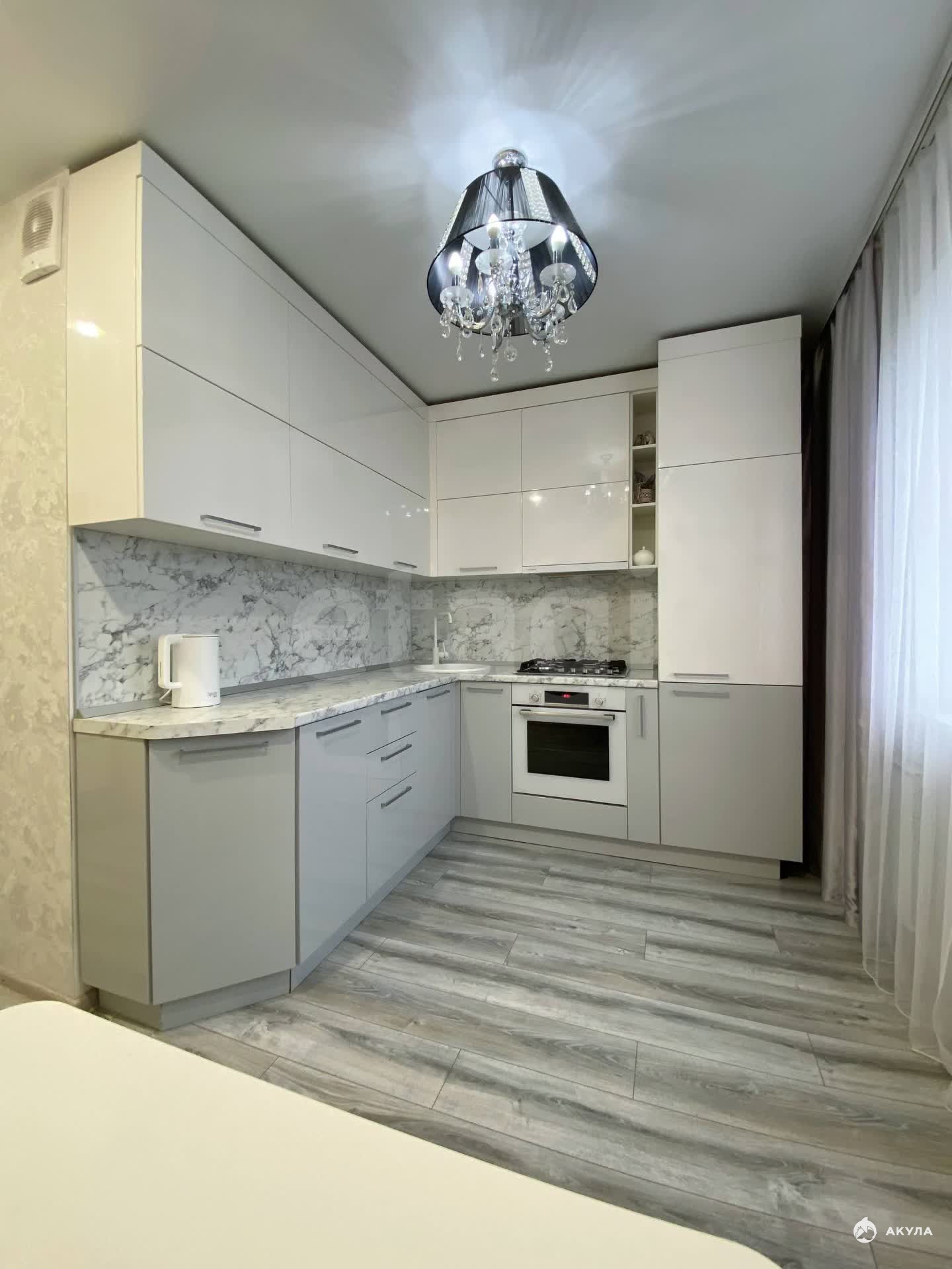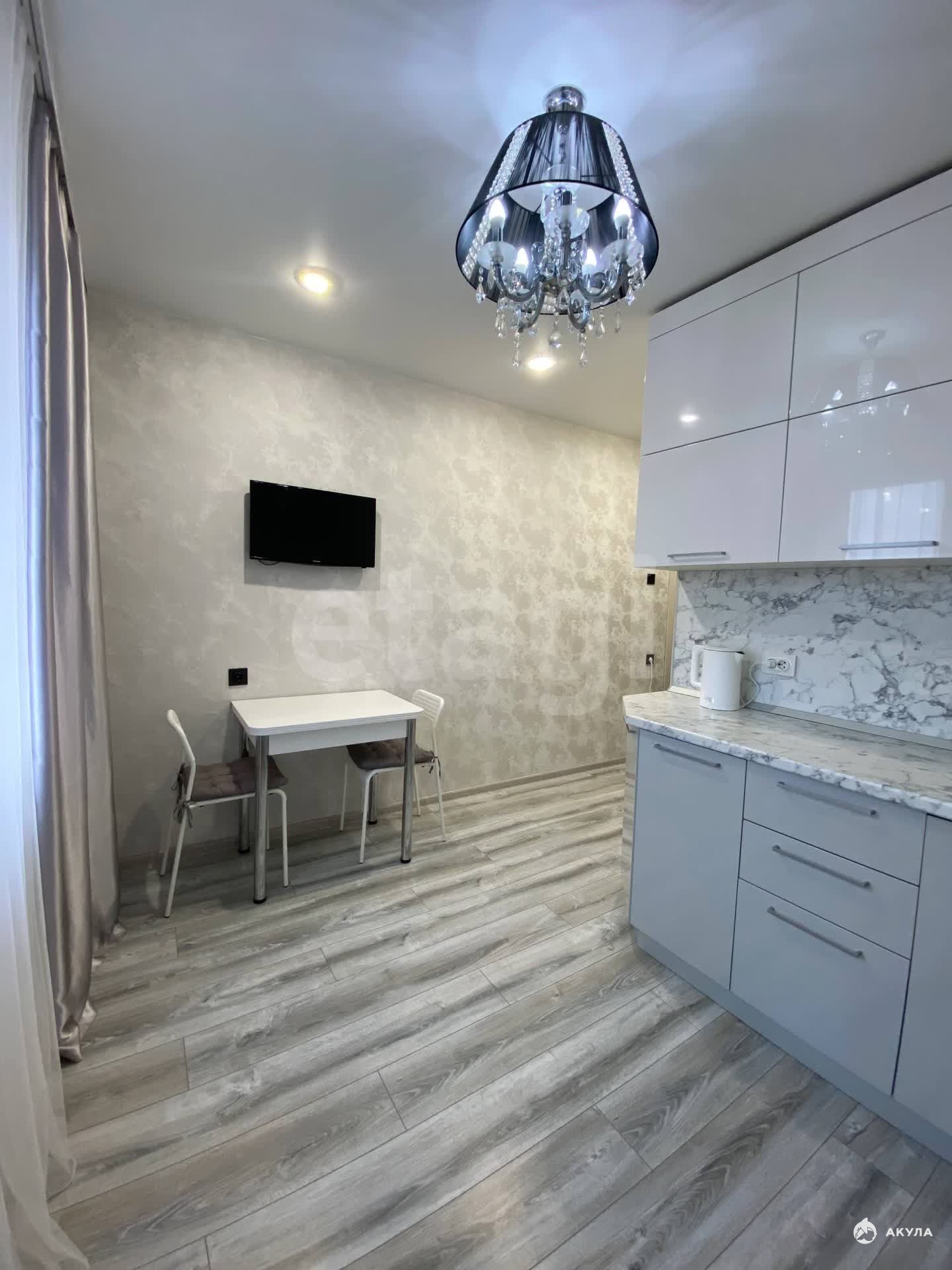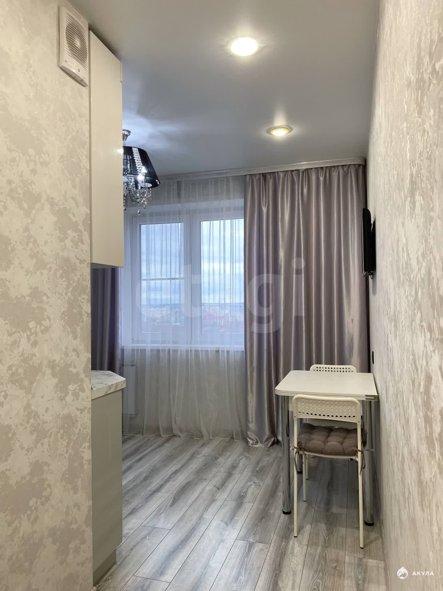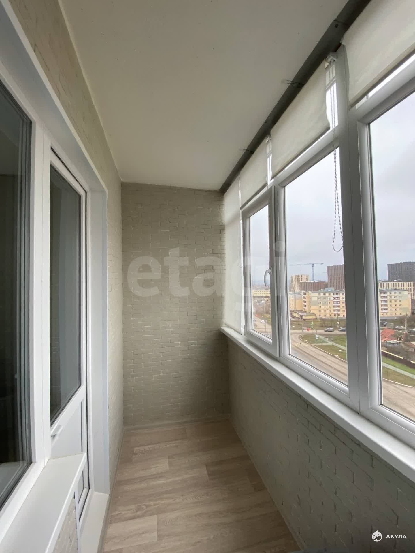 Установлена металлическая входная дверь. Окна пластиковые, на балконе — остекление пластиковой рамой с выходом из комнаты. Потолки натяжные с точечными светильниками. Напольное покрытие — ламинат. Санузел совмещенный. Установлены счетчики на горячую/холодную воду.