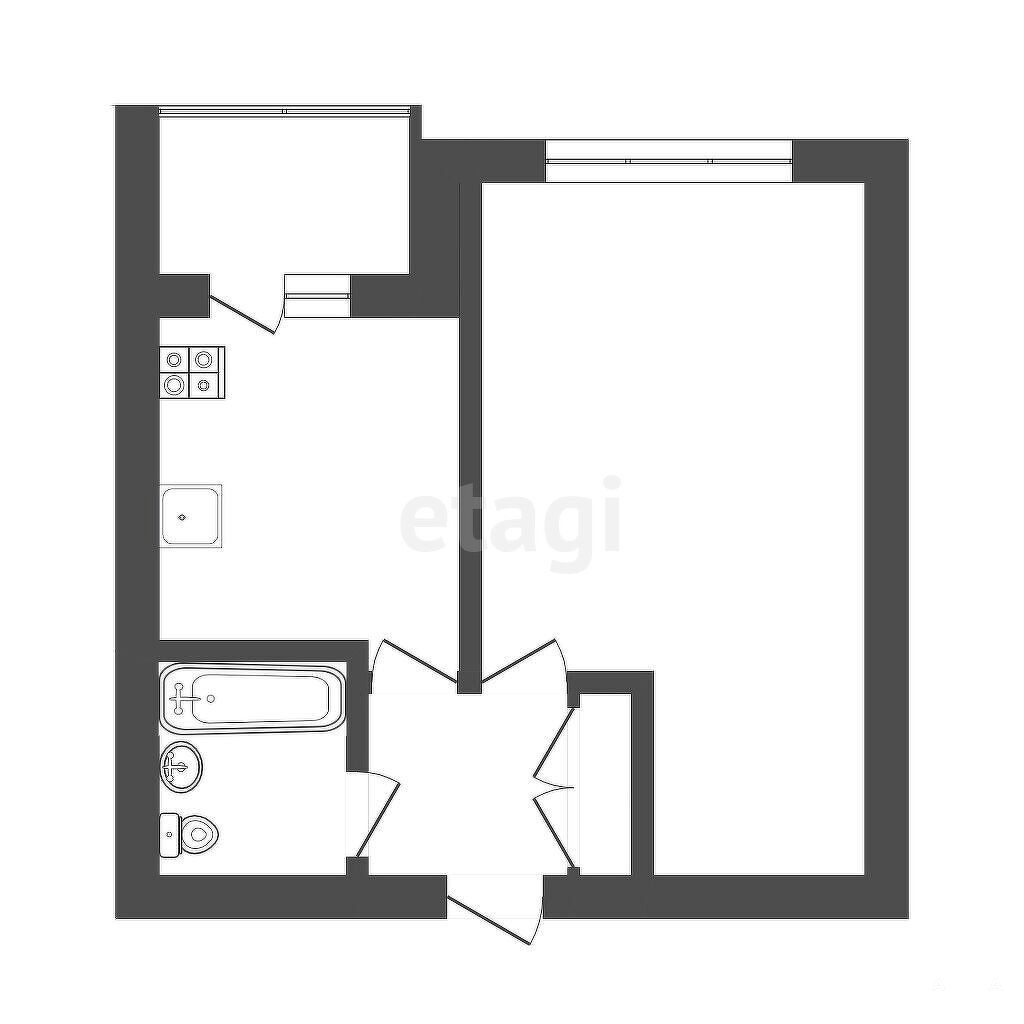 Общая площадь квартиры — 39 кв. м., большая кухня — 9 кв. м., где можно свободно расположить зону для приготовления пищи и гостиную зону. Окна выходят на детскую площадку.