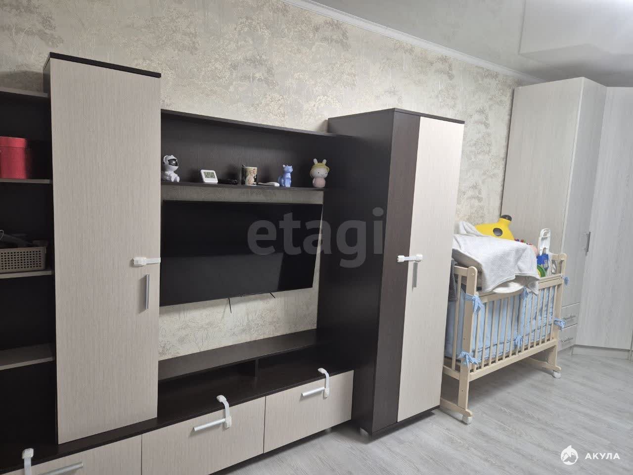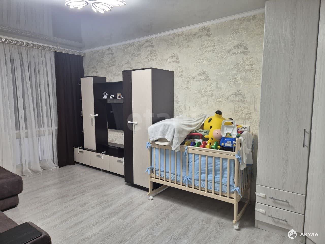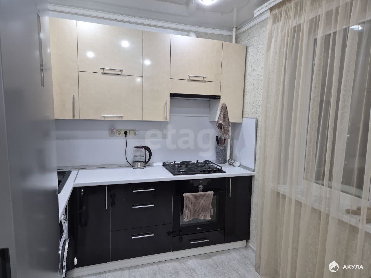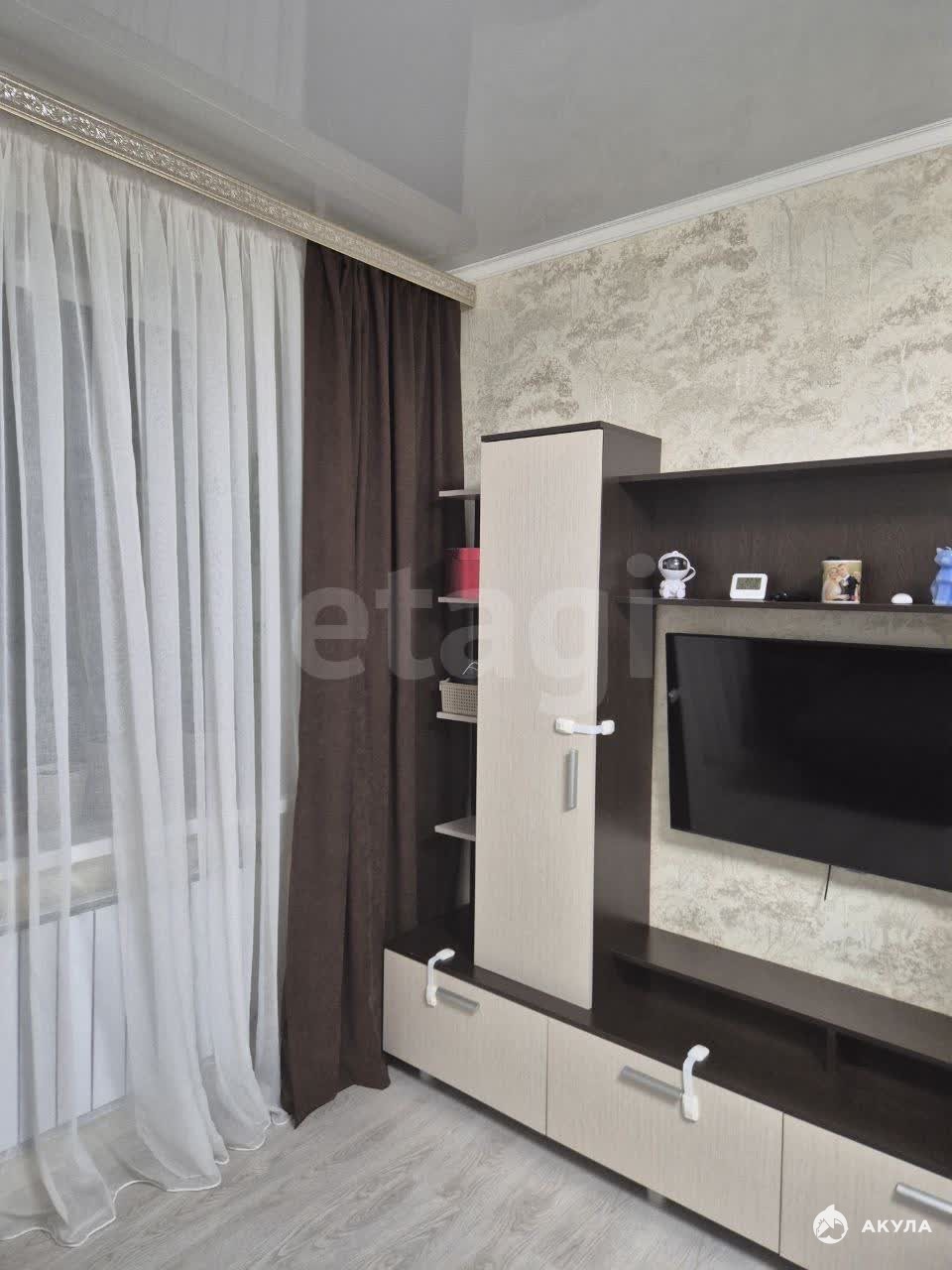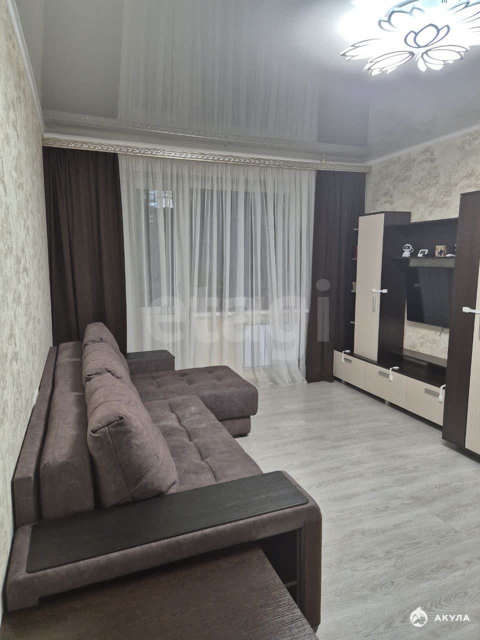 Просторная жилая зона общей площадью 37, 1 кв. м включает функциональную кухню размером 10 квадратных метров. Интерьер квартиры характеризуется качественным косметическим ремонтом: потолки украшены современными натяжными конструкциями, полы покрыты долговечным линолеумом, оконные конструкции выполнены из пластика, обеспечивая комфорт и тепло в любое время года. Совмещенный санузел отделан практичными пластиковыми панелями.