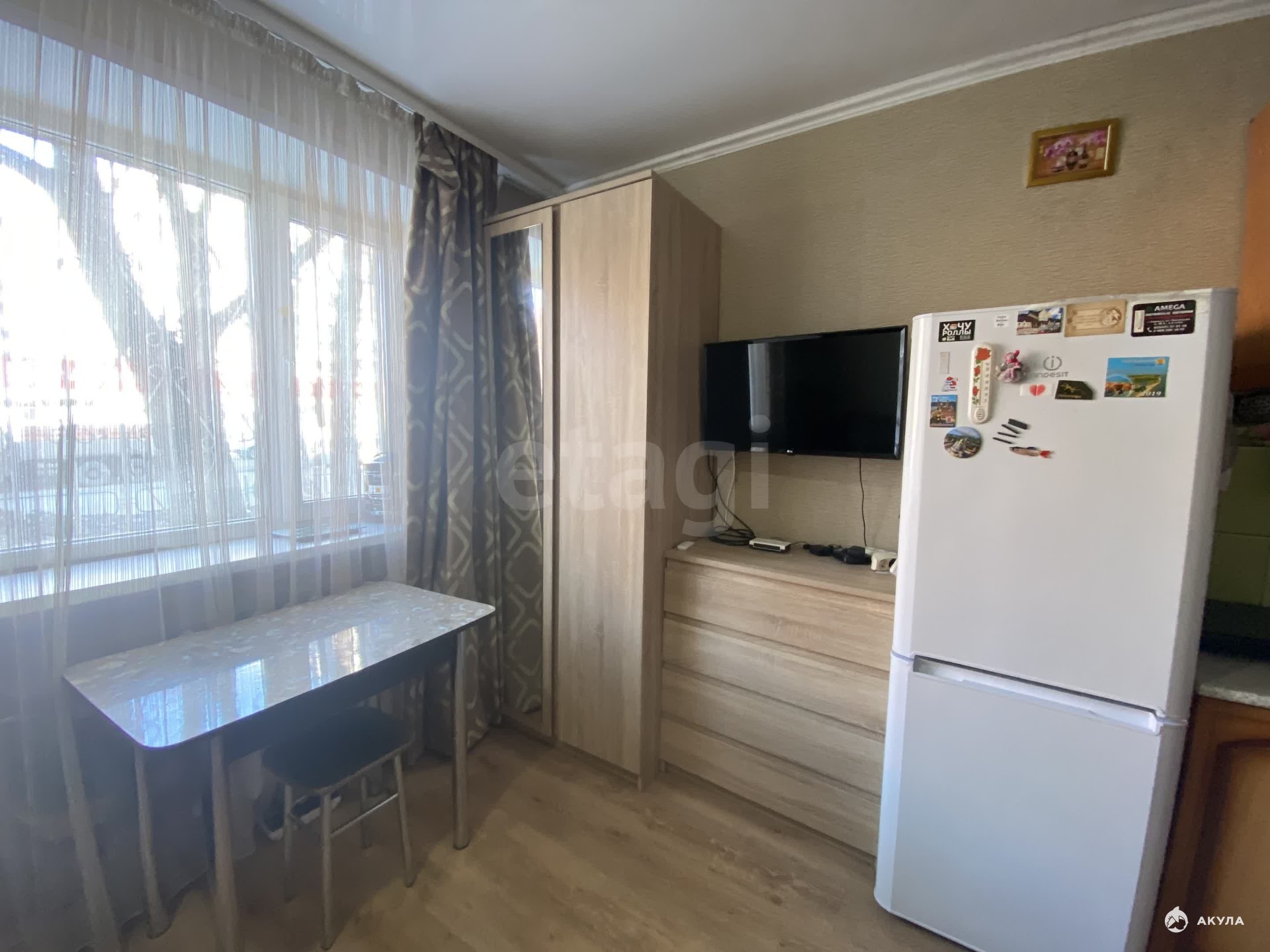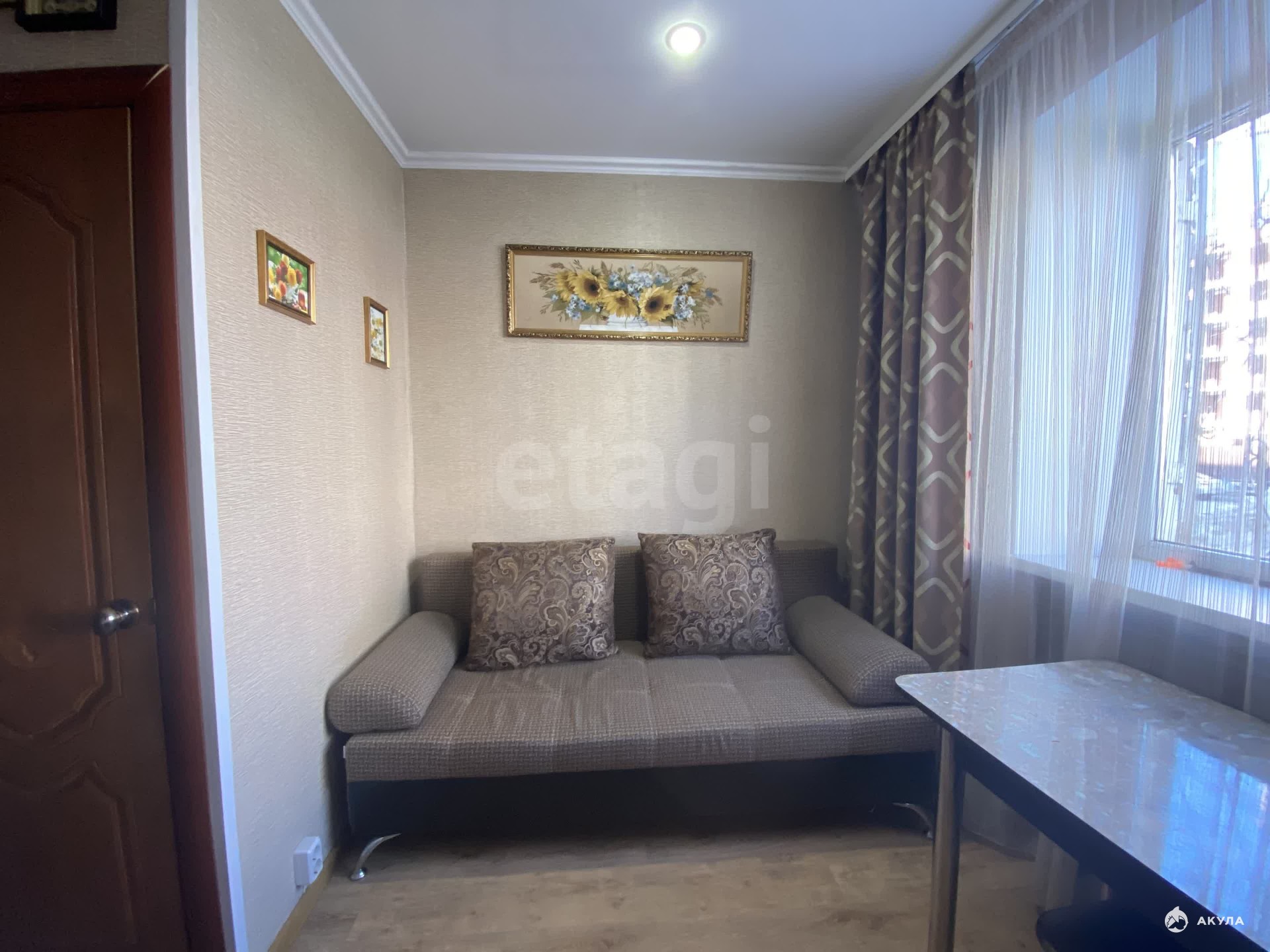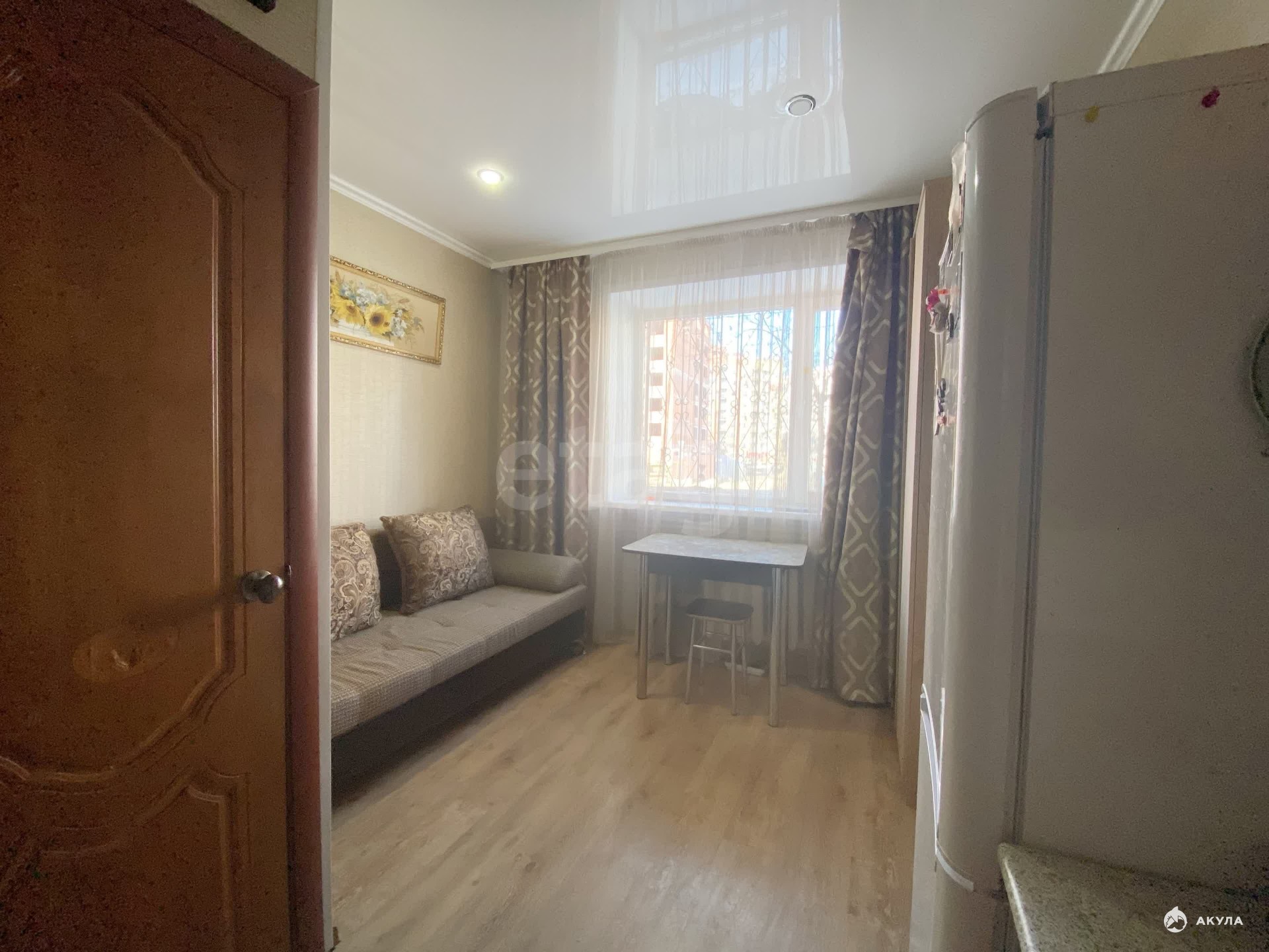 Объект отличается правильной геометрией и хорошим естественным освещением благодаря большому окну со стеклопакетом, который обеспечивает тишину и сохранение тепла. Помещение находится в отличном состоянии после свежего косметического ремонта: на полу уложен ламинат, стены оклеены виниловыми обоями, установлен натяжной потолок со встроенными светильниками.