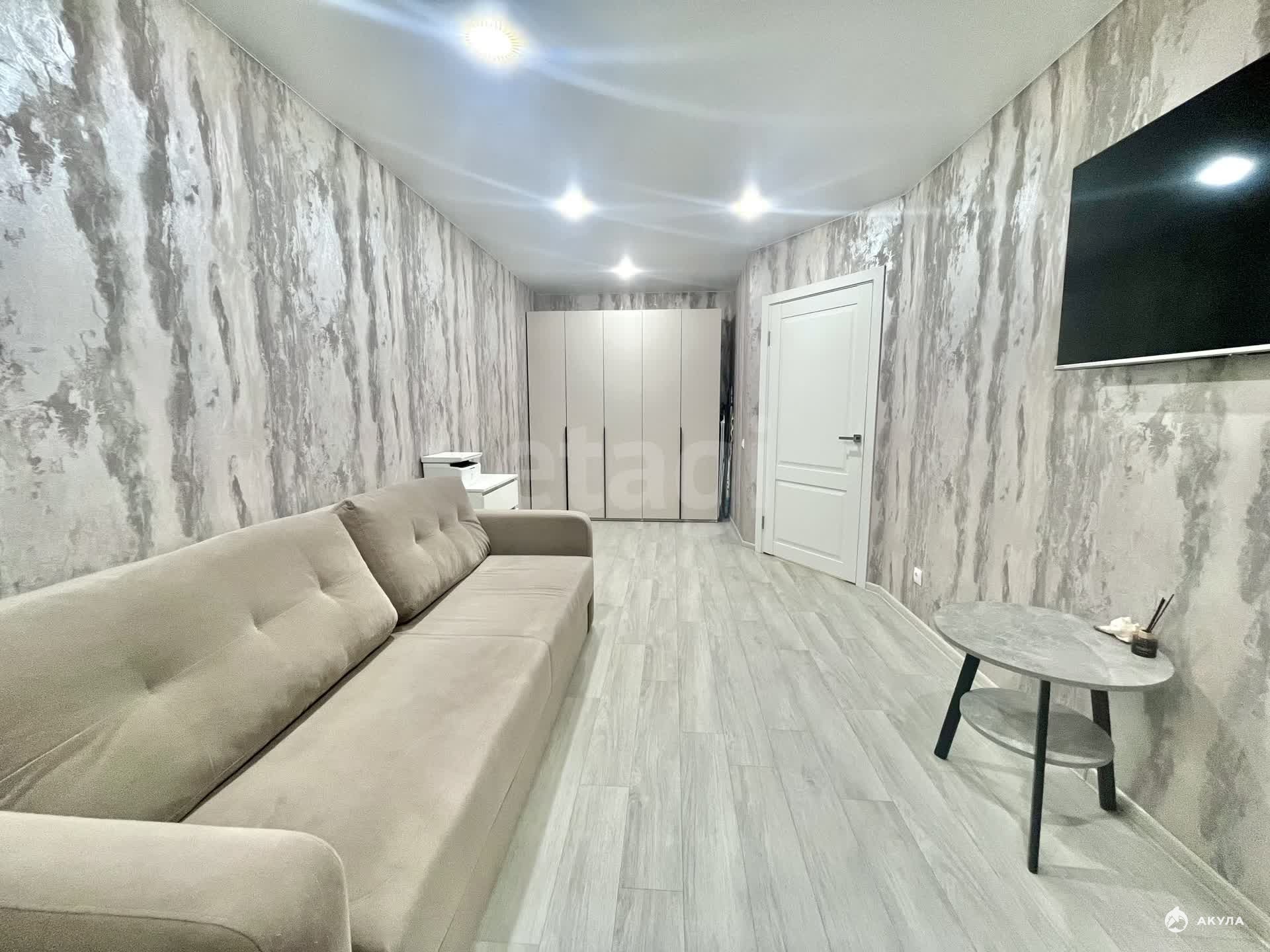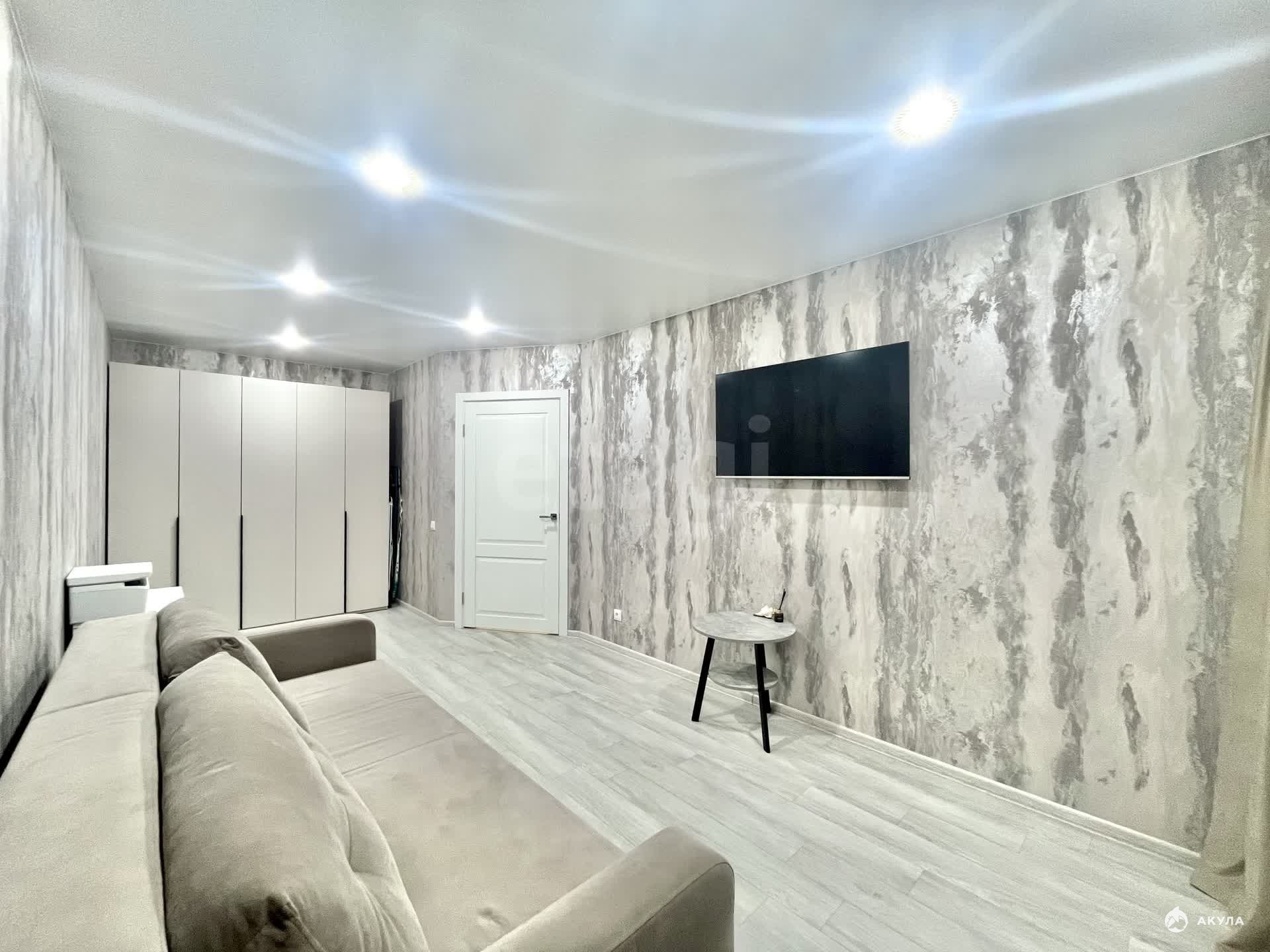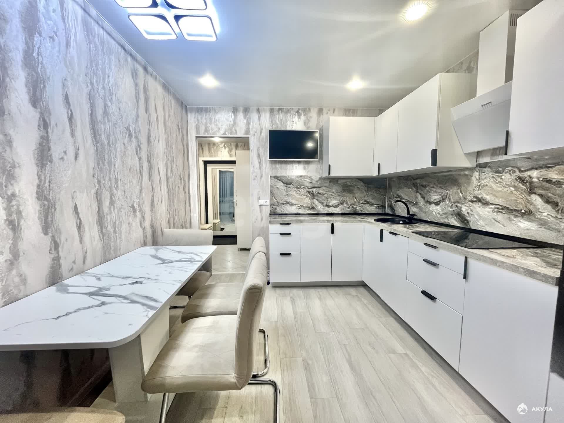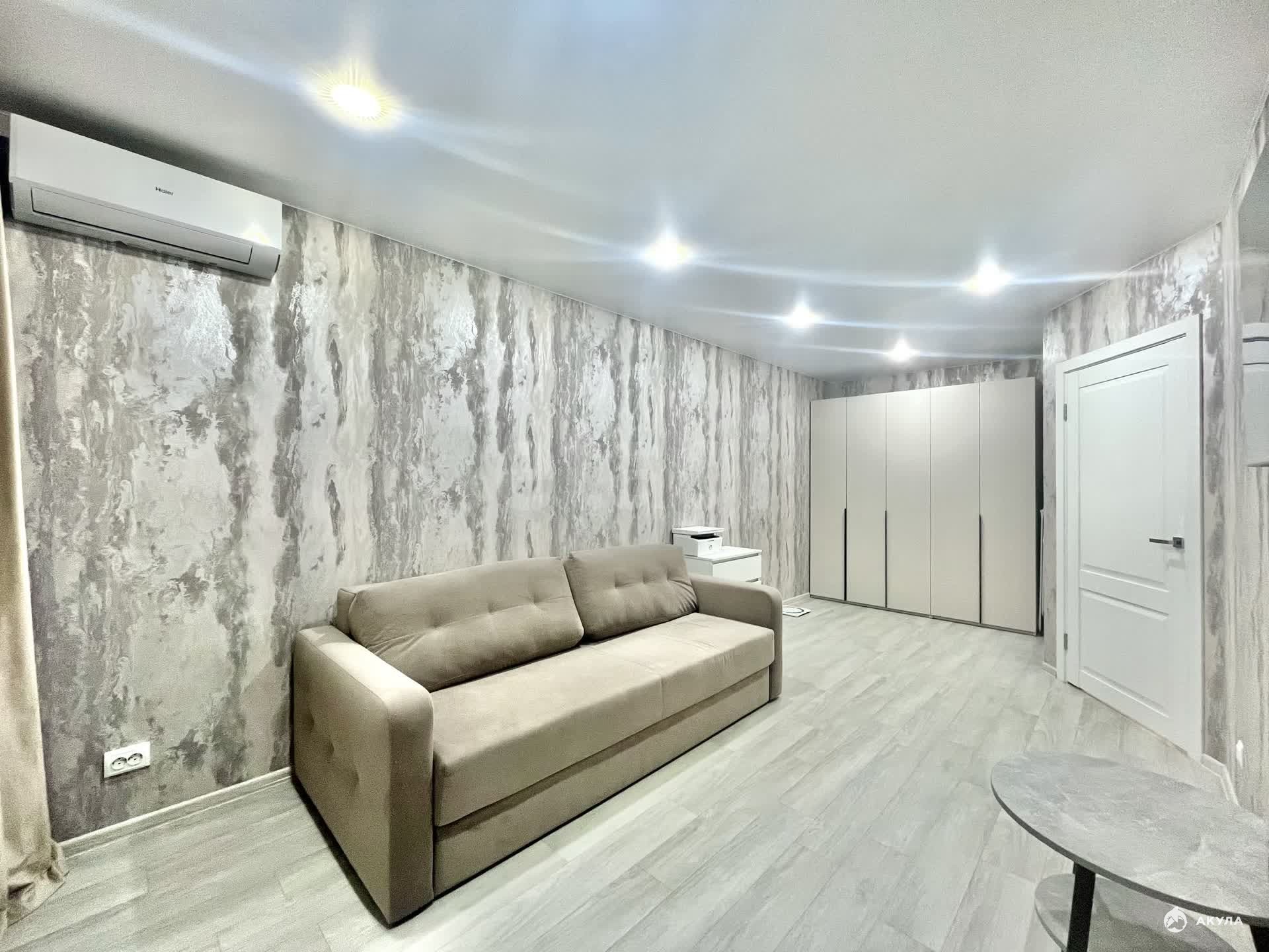 Квартира полностью готова к проживанию: выполнен качественный ремонт в светлых тонах, интерьер оформлен в современном стиле, установлена функциональная кухонная зона с варочной панелью, кондиционер, что создает атмосферу комфорта и уюта.