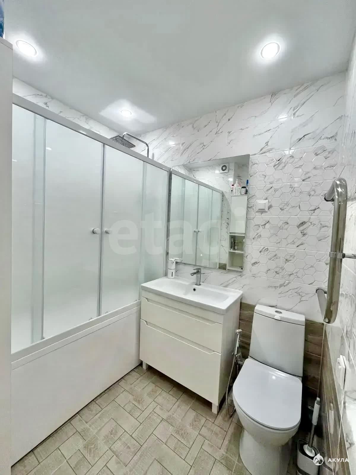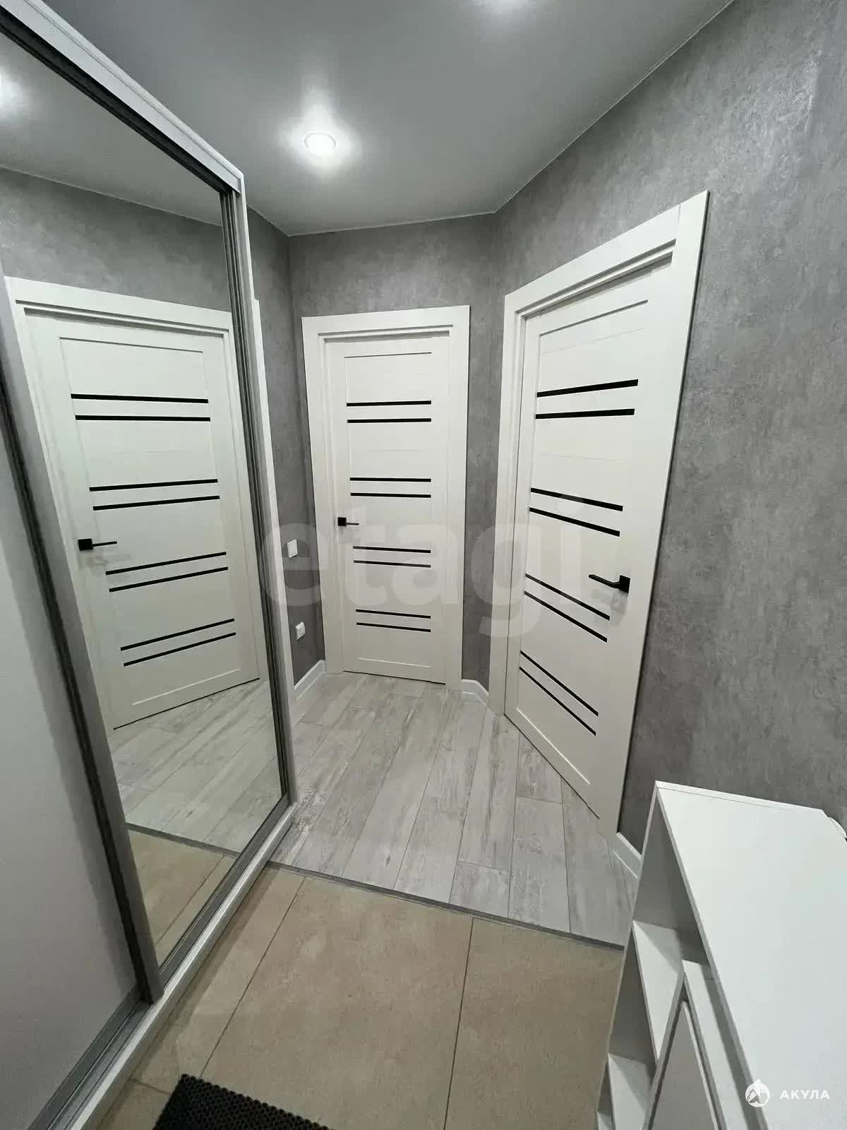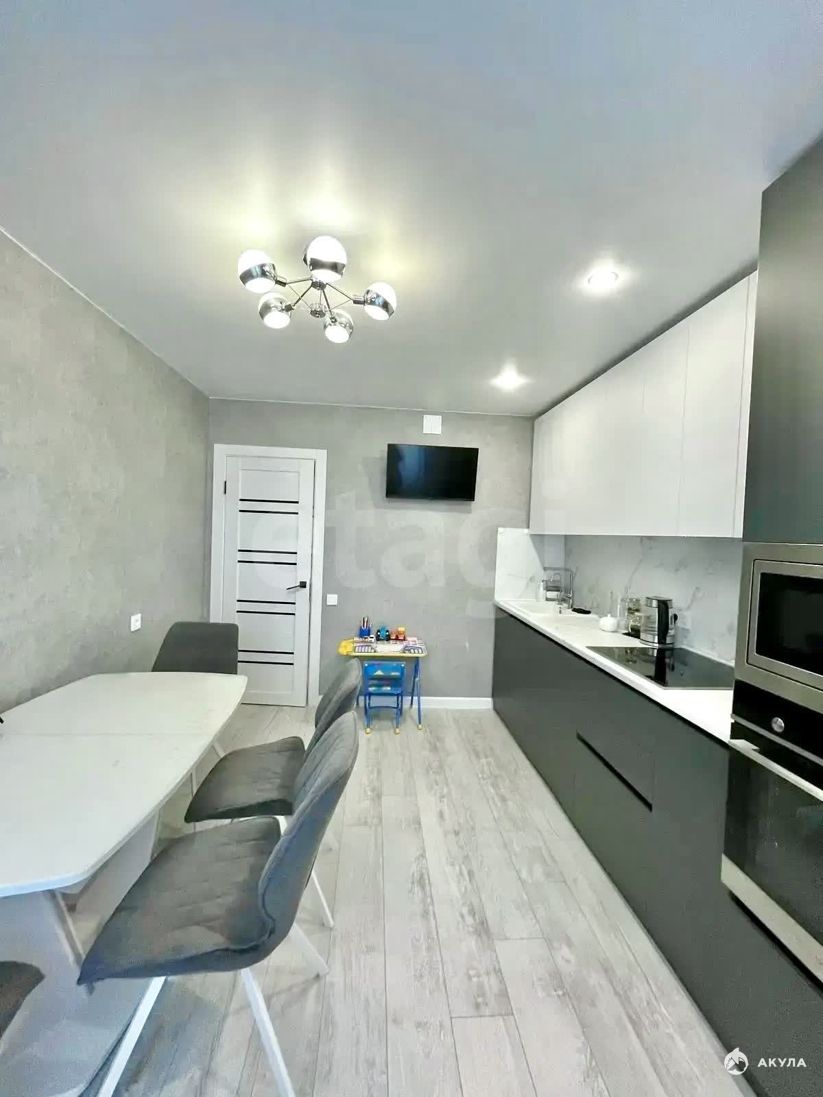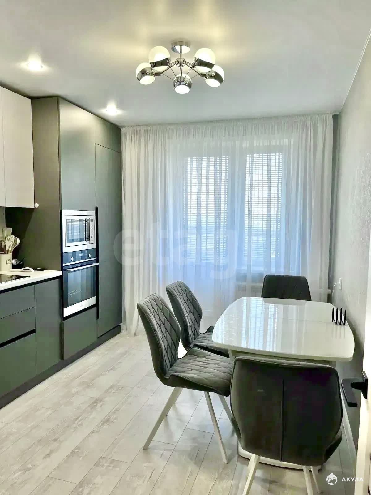 В квартире общей площадью 37, 1 кв. м выполнен качественный ремонт в светлых тонах и в современном стиле. Кухня — 11, 6 кв. м с выходом на балкон, комната — 17, 1 кв. м. По всей квартире установлены пластиковые окна, натяжные потолки, на полу постелен ламинат.