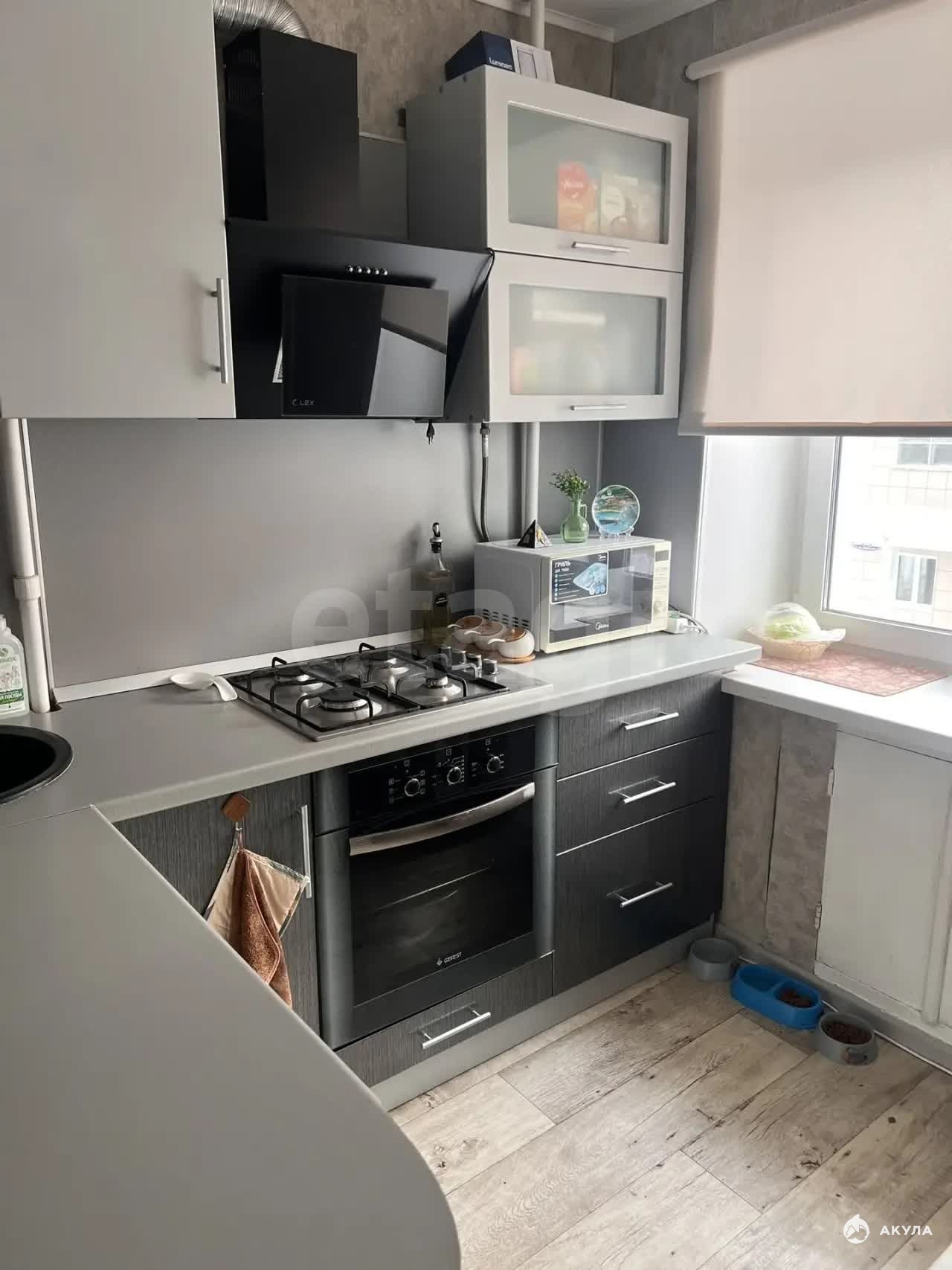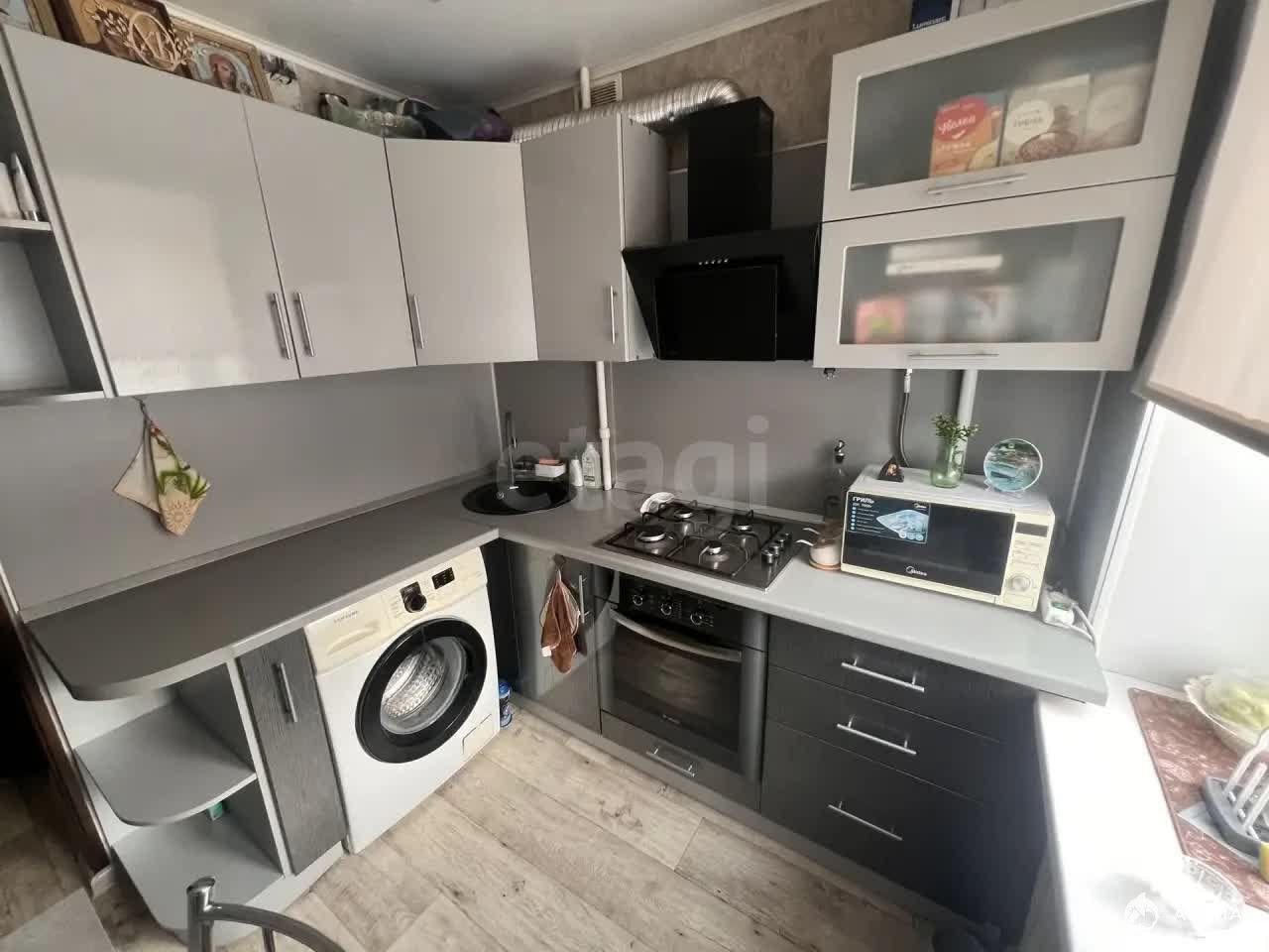 · Кухня: Компактная, 5 м². Остается современный кухонный гарнитур — вы сможете пользоваться им сразу после заселения.