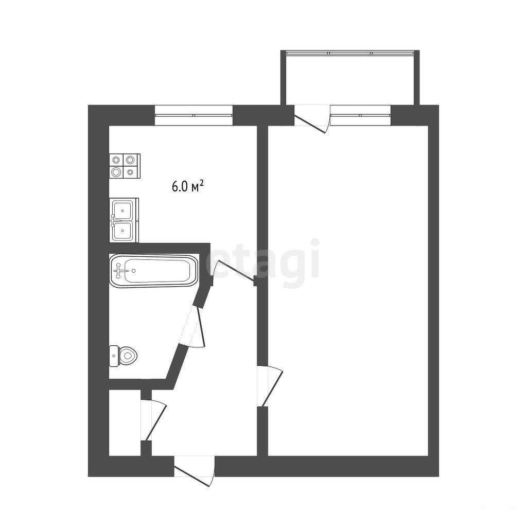 Площадь 30 м2, кухня - 6 м2, без ремонта. Расположена на 3 этаже 5-этажного кирпичного дома 1968г. постройки. В комнате
