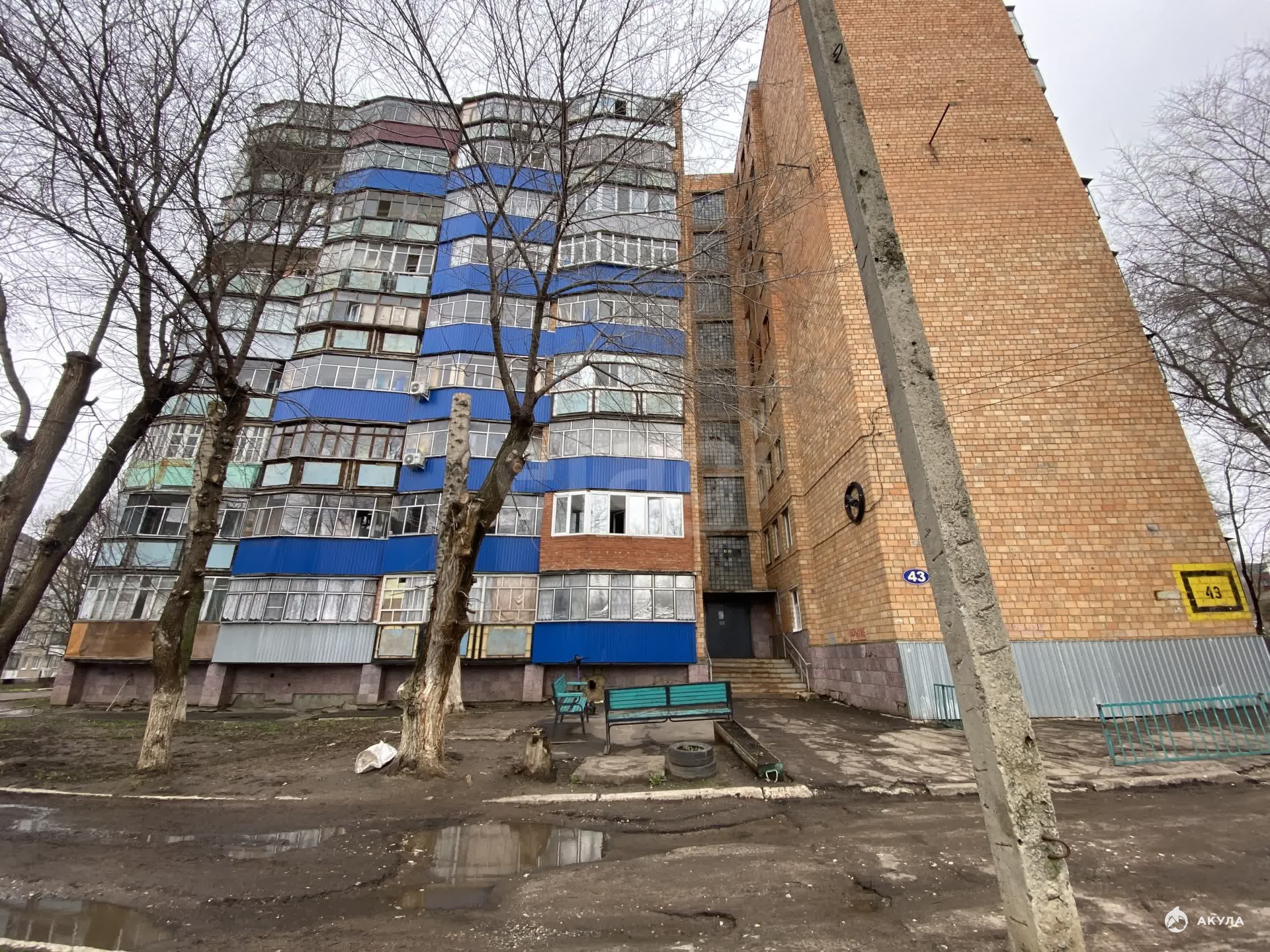 Большой застекленный балкон выходит во двор на южную солнечную сторону.