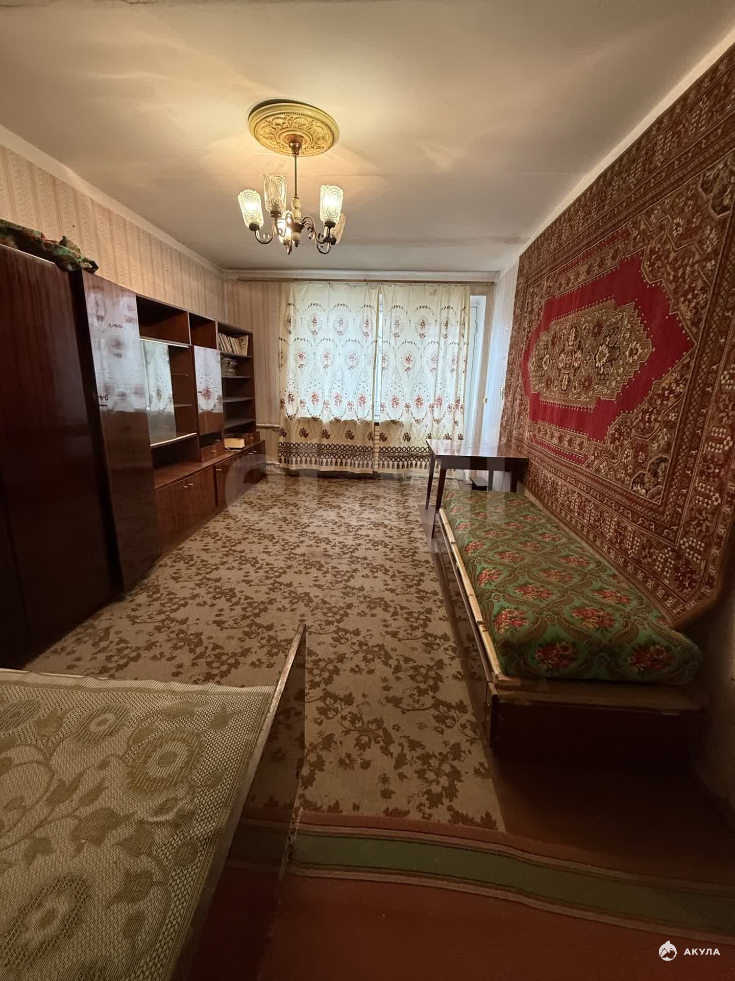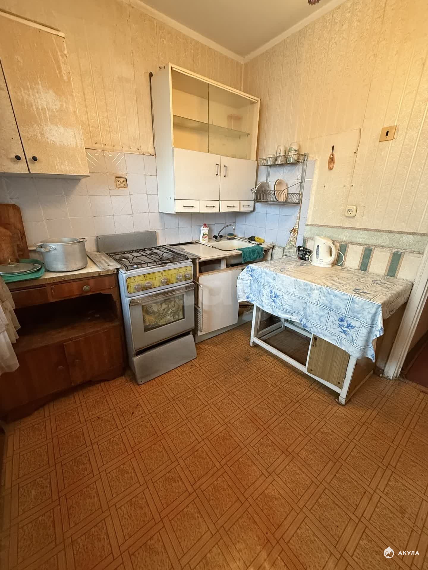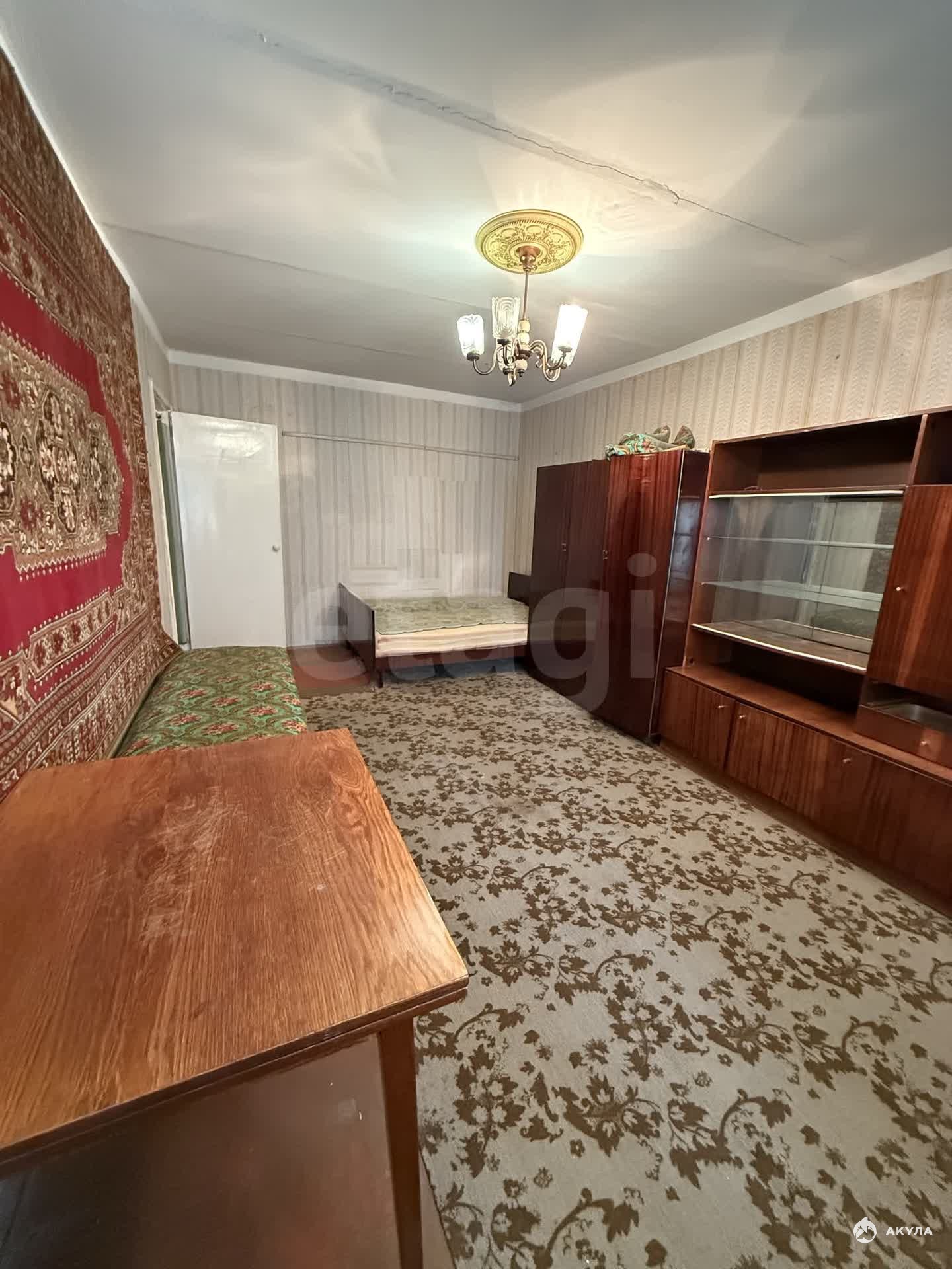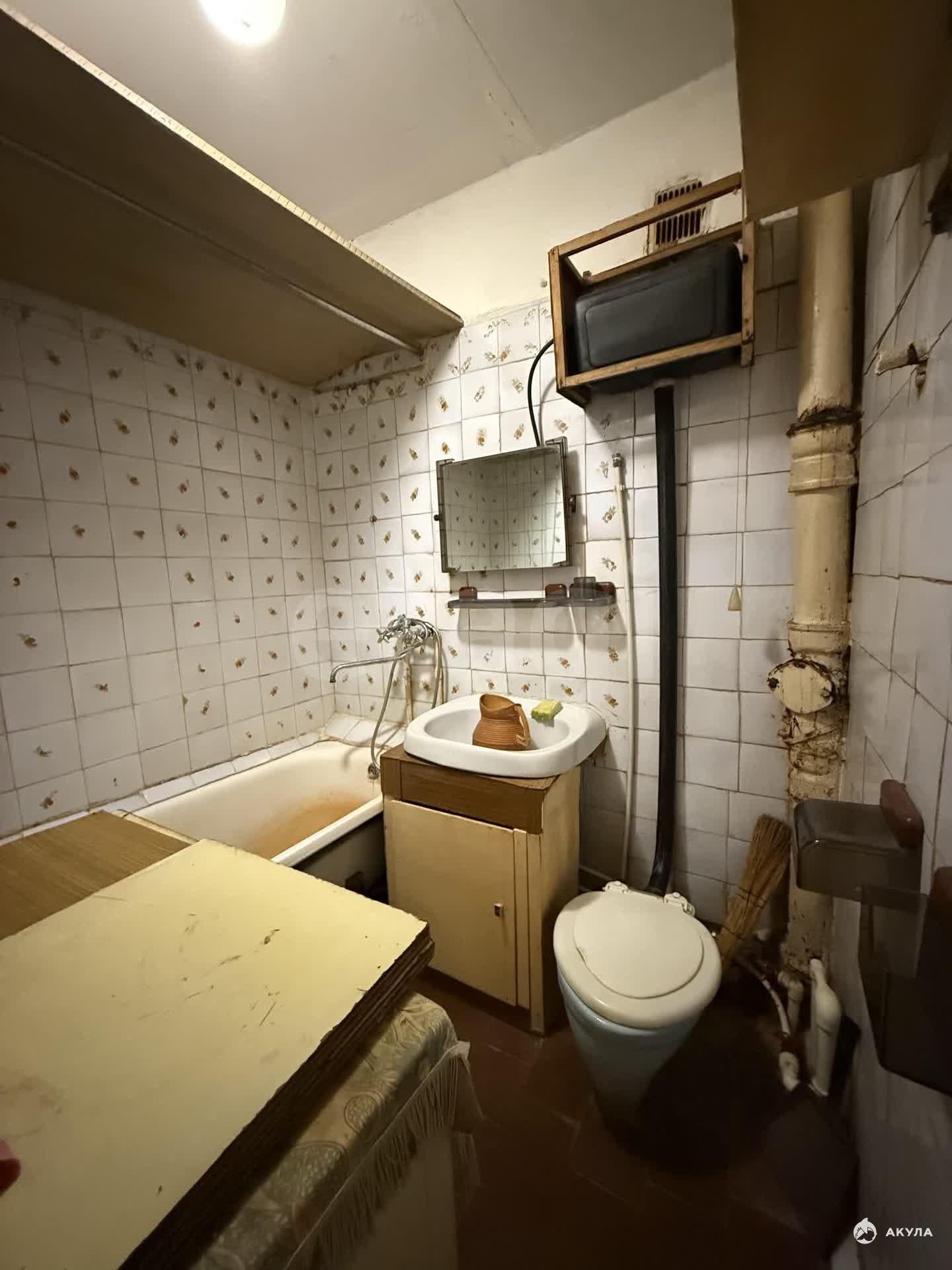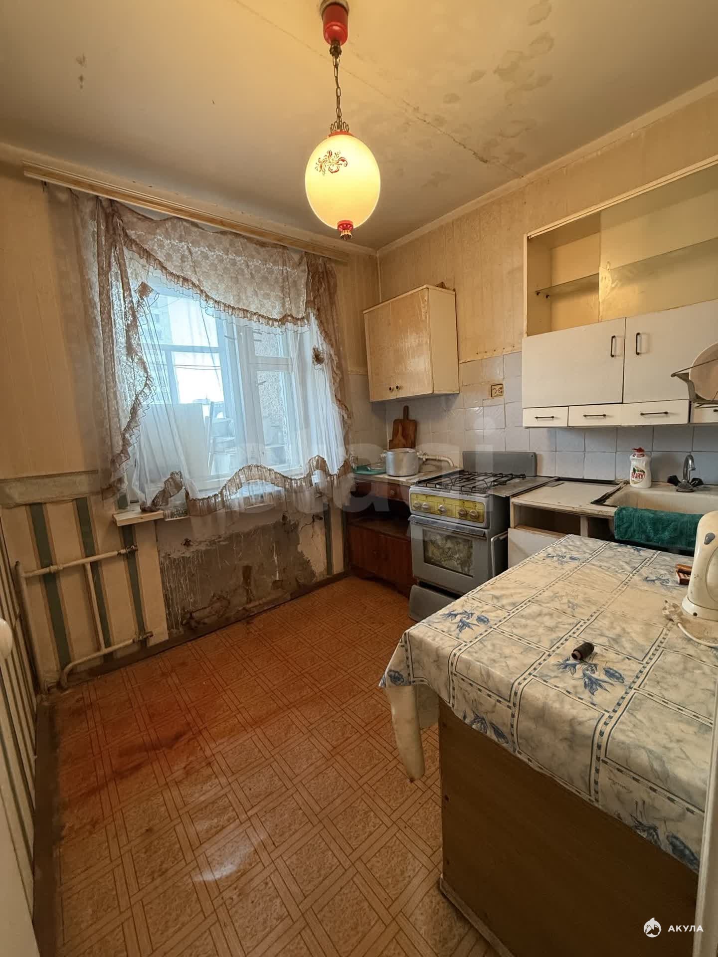 Общая площадь 34, 7 кв. м., находится на 5 этаже 5-этажного кирпичного дома, жилая комната 17 кв. м., кухня 7, 5 кв. м., санузел совмещенный. Балкон застеклен. Состояние под ремонт.