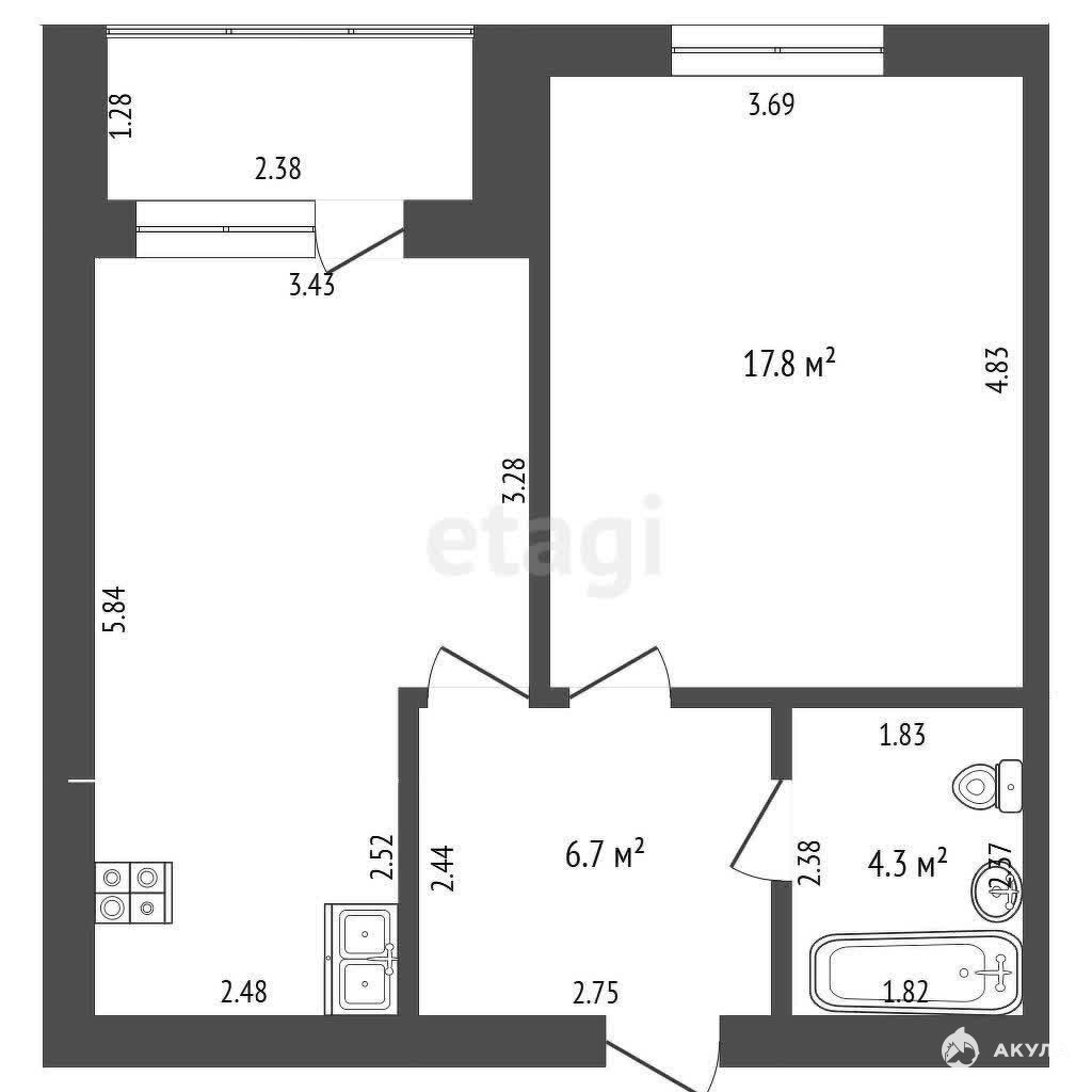 Квартира находится в состоянии черновой отделки с выполненной стяжкой пола, установленными металлопластиковыми окнами, подоконниками и металлической входной дверью.