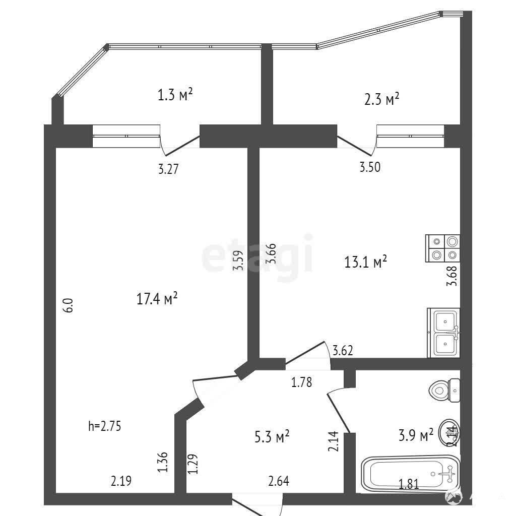 Общая площадь 39, 5 м2.