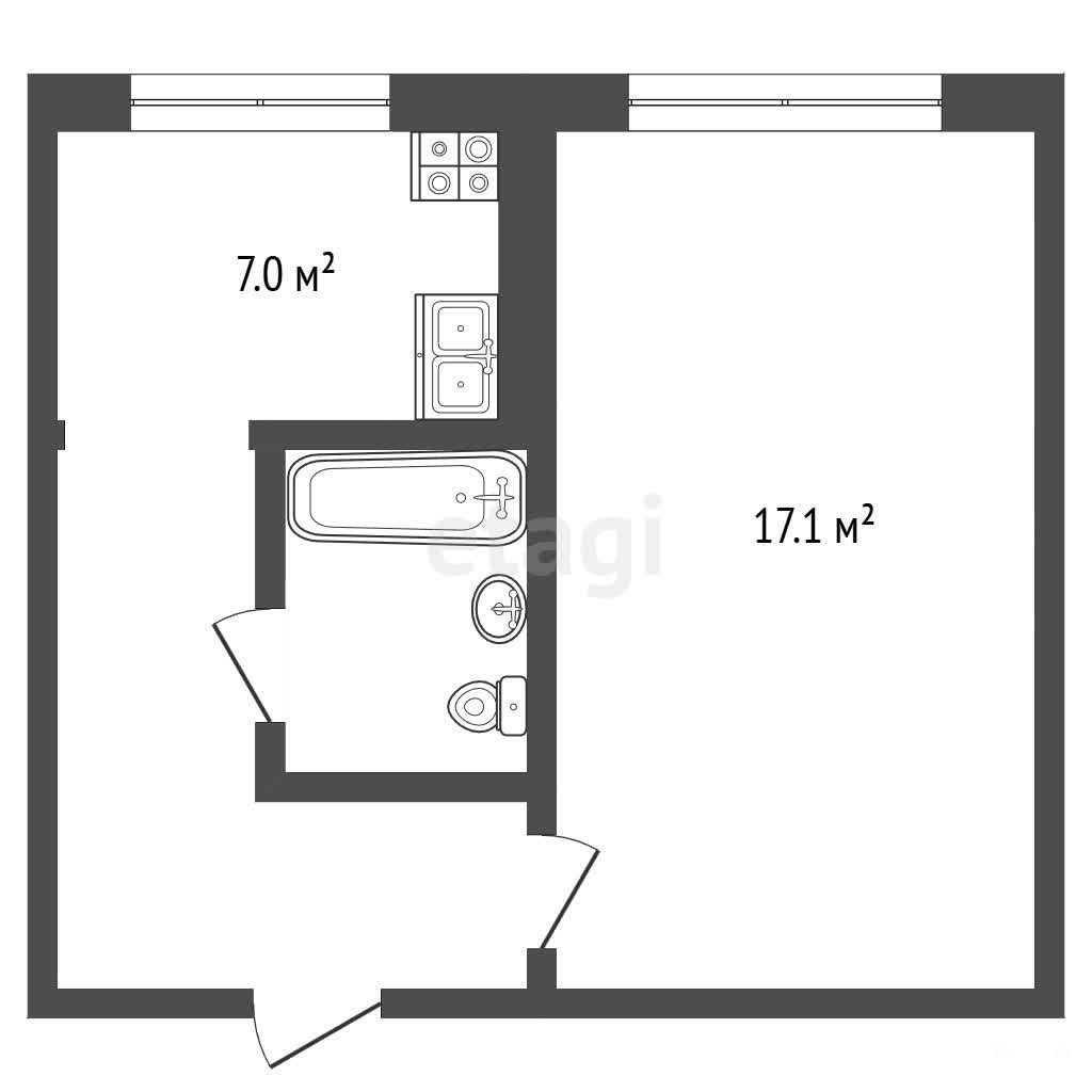 - 17.1 м²
